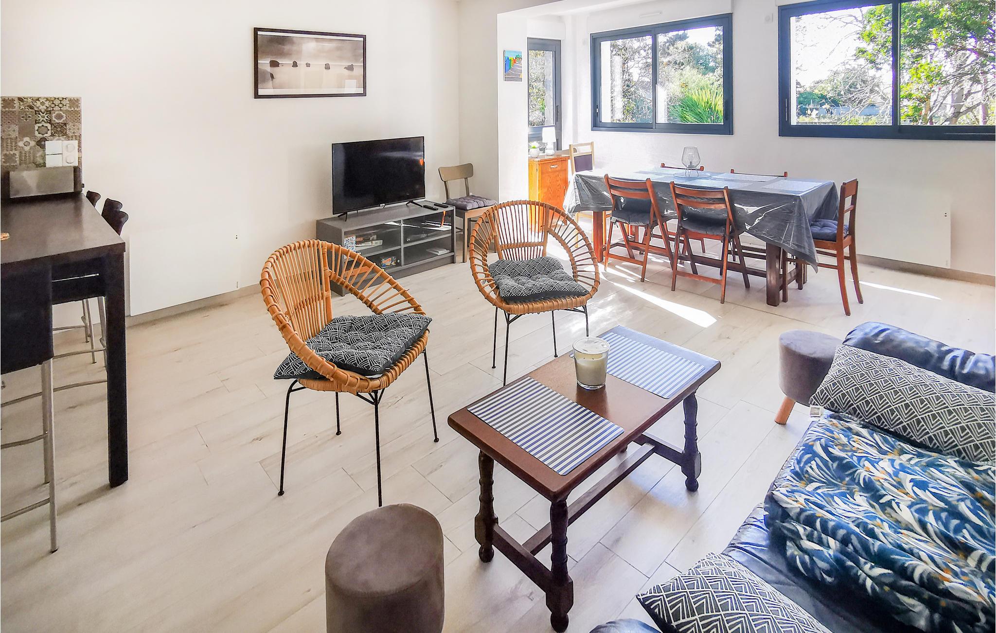 Huset ligger kun 400 m fra stranden, hvor I kan tilbringe afslappede badedage og gå flotte aftenture med maleriske solnedgange. Området byder på mange muligheder for sportsaktiviteter, herunder ridning, vandreture, bowling, mountainbiking, fiskeri og tennis. Du kan også tage på en dagstur til den nærliggende ø Île d'Yeu eller til den nordlige by Nantes, kendt for sin smukke katedral.