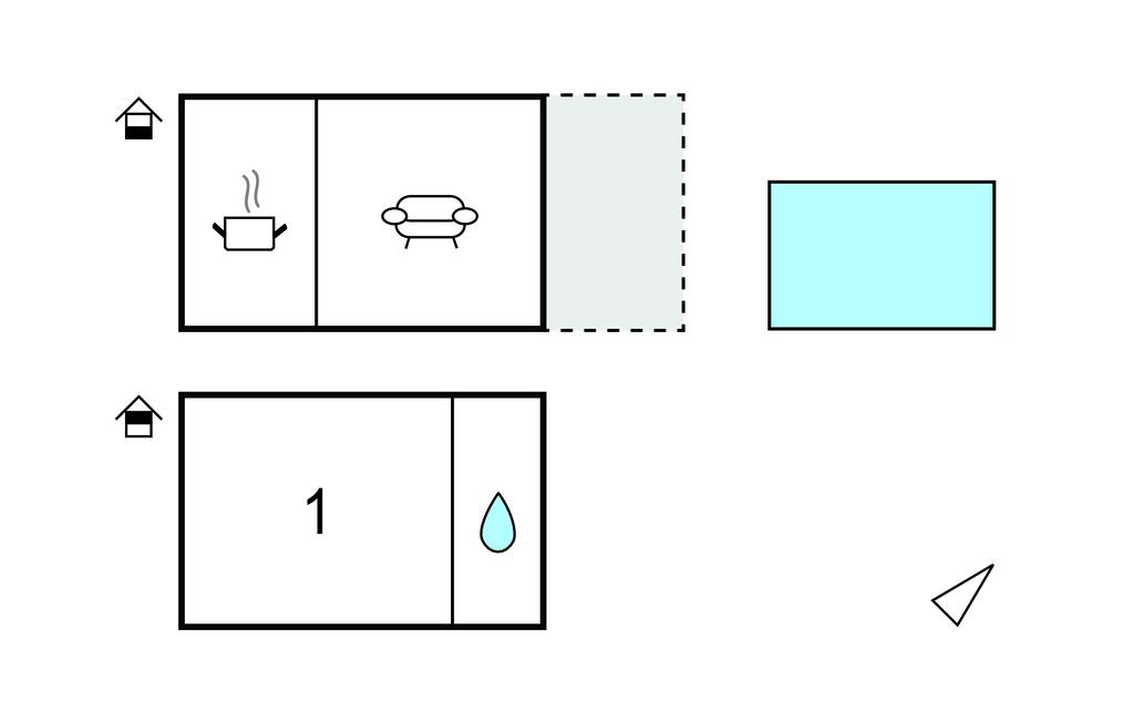 Opholdsstue 14m2 - 1 Soveplads. (Sofa, madras eller lignende).