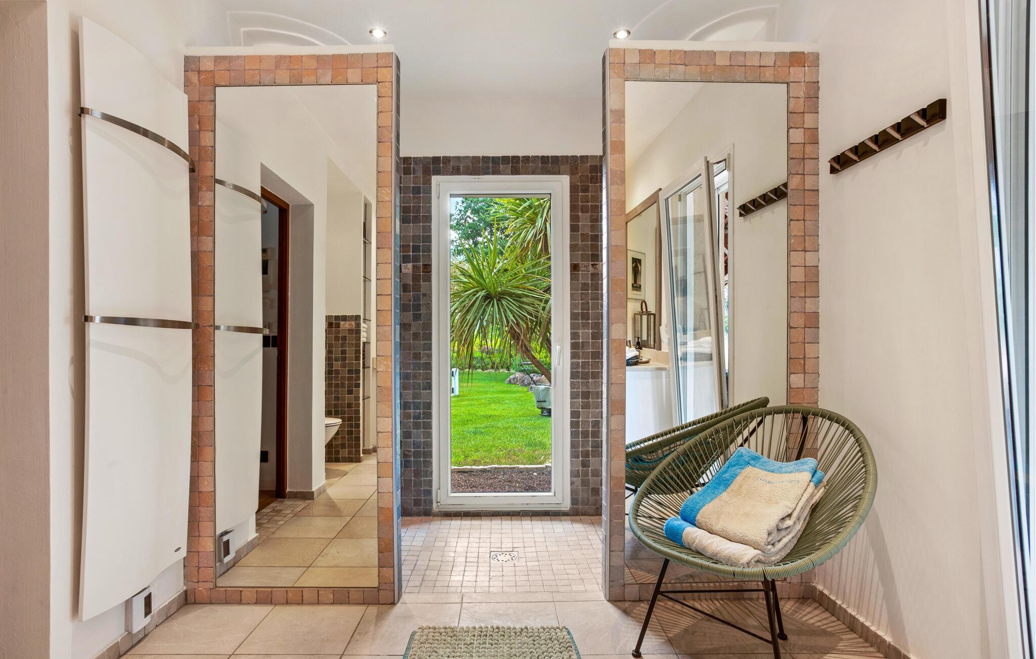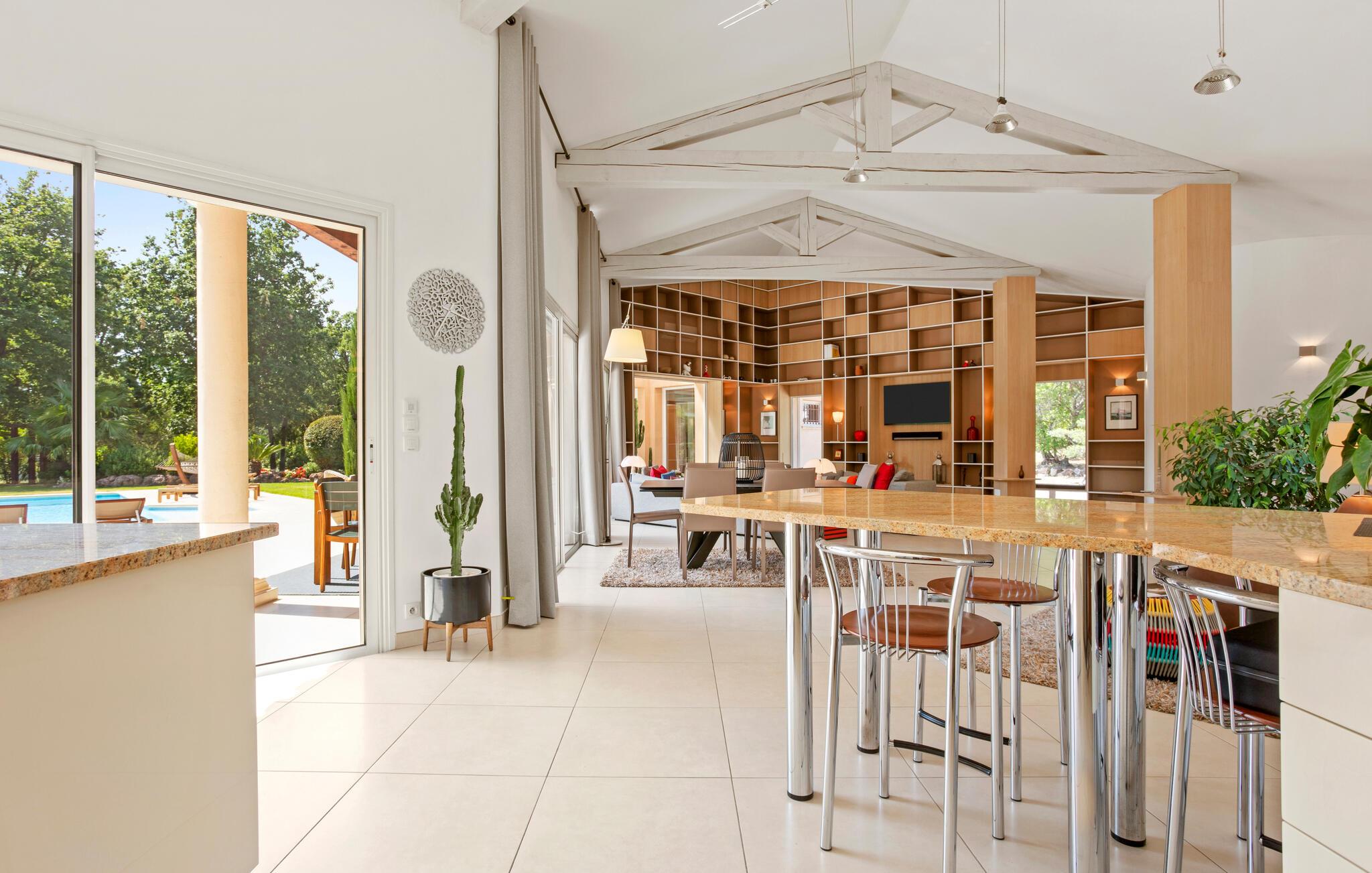 Denne store og eksklusivt udstyrede ejendom ligger omgivet af en smuk park og giver jer fuldt privatliv midt i fortryllende omgivelser. Slap af i den stilfulde opholdsstue, hvor store vinduespartier giver en vidunderlig udsigt til det grønne. Træn i fitnessrummet, slap af i saunaen, og nyd fælles madlavningsaftener og lækre måltider.
