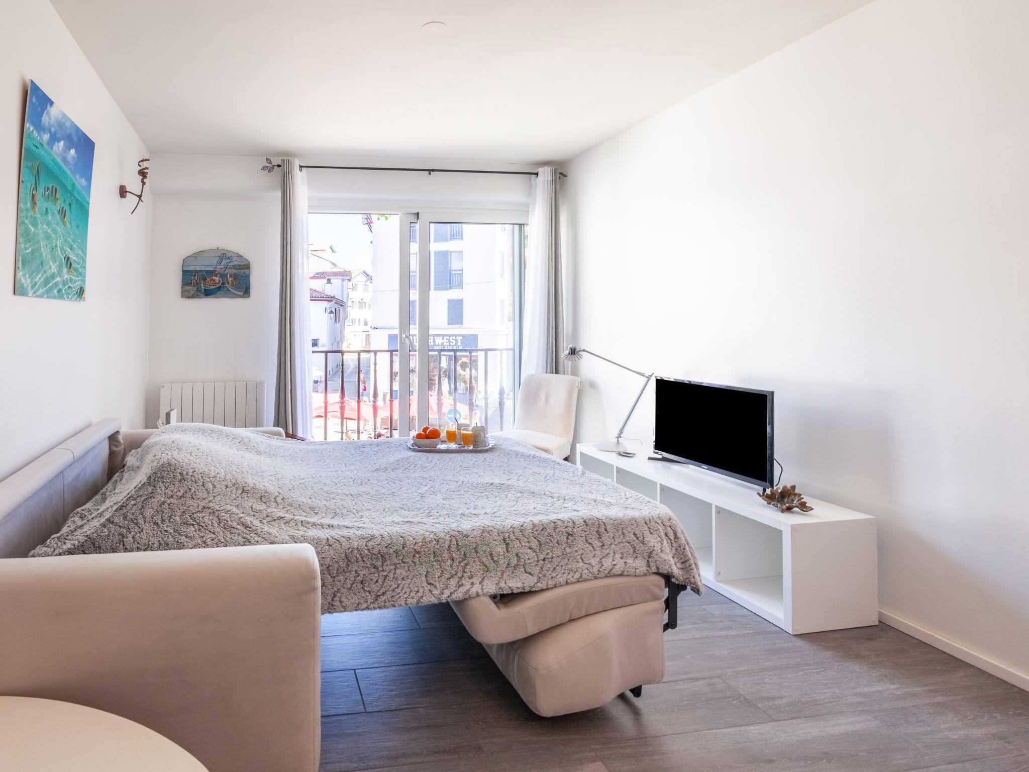 Residence "Résidence de France". In a central, busy position, 200 m from the sea, 200 m from the beach. Shop 50 m, grocery 100 m, shopping centre 1.5 km, restaurant, bakery 50 m, café 100 m, pedestrian zone 50 m, bicycle rental 300 m, 1 minute walk to the centre, bus stop 260 m, railway station 400 m, sandy beach "St Jean de Luz" 200 m, thermal baths "Thalazur" 400 m. Sports harbour 200 m. Nearby attractions: Marché Halles de St Jean de Luz 100 m. The keys‘ handover takes place by the agency Interhome à 16h, à 1 km.