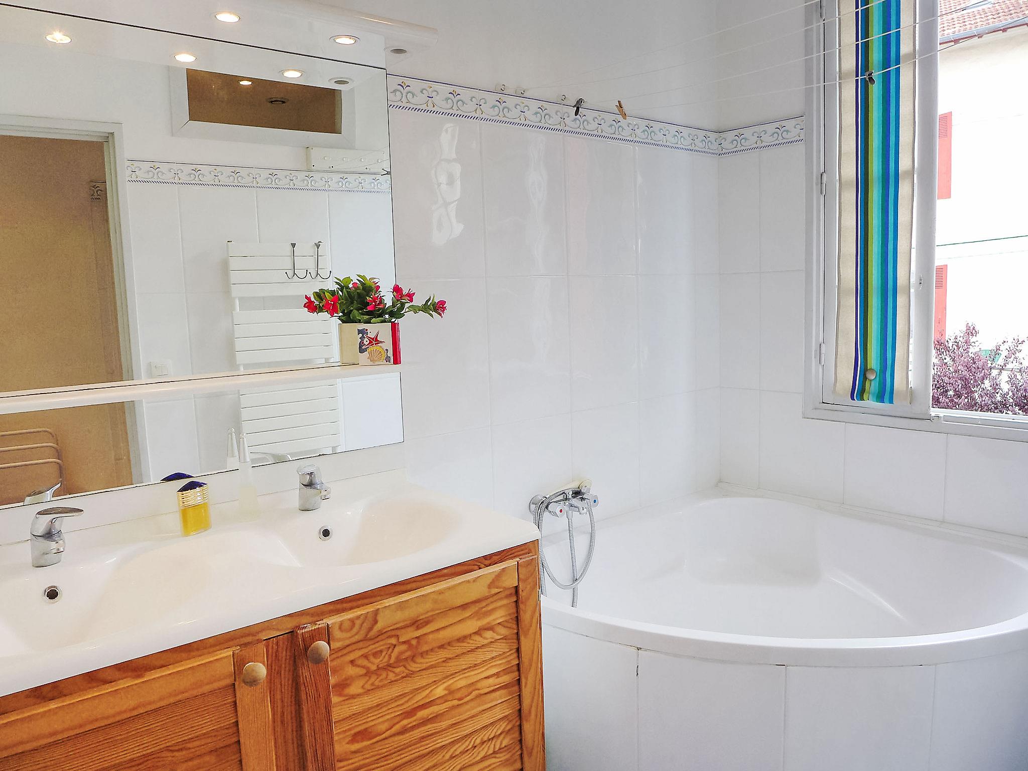Saint Jean de Luz: Residence "Orpia". In the centre of Saint Jean de Luz, 400 m from the sea, 400 m from the beach, on a main road. Shop, restaurant, bakery, café 200 m, bus stop 5 m, sandy beach, outdoor swimming pool 400 m, thermal baths "Hélianthal" 400 m. Sports harbour 400 m, golf course (18 hole) 2 km. Nearby attractions: Marché de St Jean de Luz 400 m, Jardin public avec jeux pour enfants 600 m. Please note: no lift. The keys‘ handover takes place by the agency Interhome à 16h.