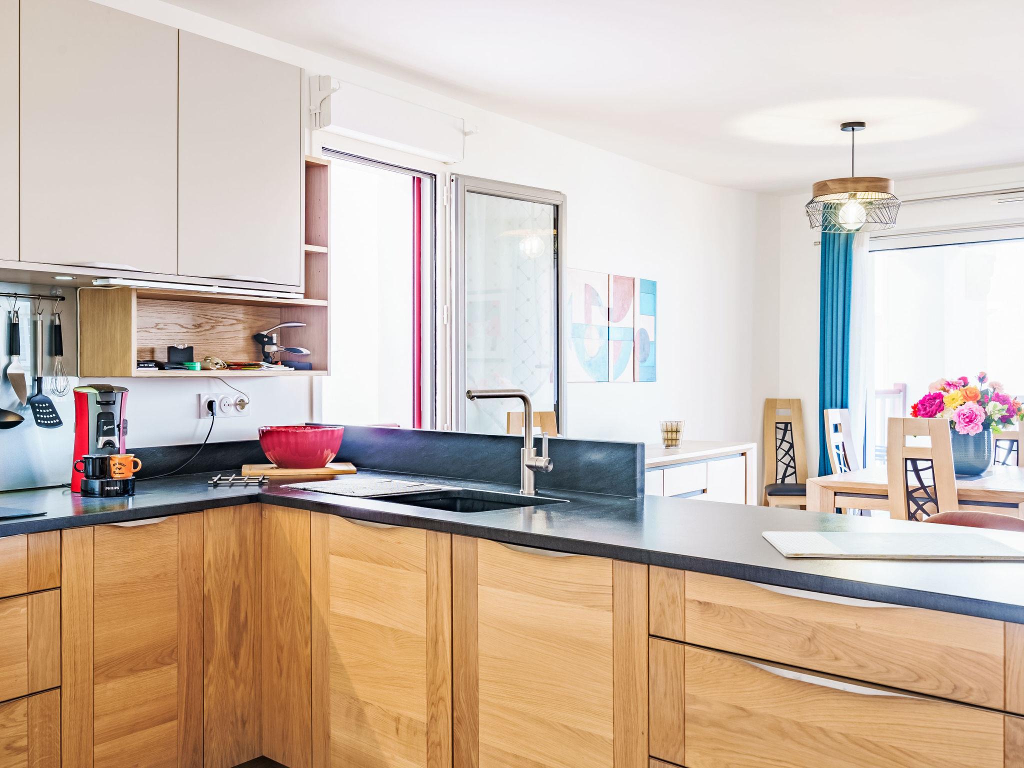 "Bikaleak", 3-room apartment 93 m2 on 1st floor. Beautiful and modern furnishings: living/dining room with TV (flat screen). Exit to the terrace. 1 room with 1 french bed (140 cm, length 190 cm), shower. 1 room with 1 french bed (160 cm, length 200 cm), shower/WC. Large, open kitchen (dishwasher, 3 induction hot plates, toaster, kettle, microwave, electric coffee machine). Sep. WC. Large terrace 17 m2. View of the mountains. Facilities: washing machine, dryer, iron, hair dryer. Internet (WiFi, extra). Garage (1 car). Please note: non-smoking house. Smoke alarm. Offer by a private individual according to Art. 155, IV of CGI. 6418900153376