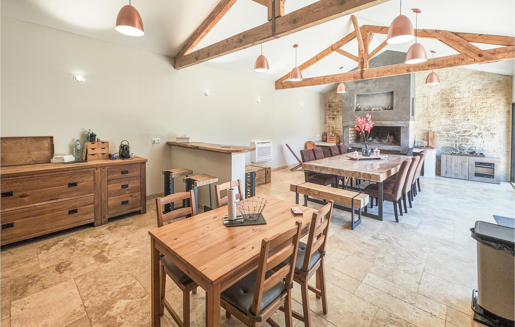 Tag med familien med på ferie i dette smukt møblerede hus. Et særligt højdepunkt er den åbne pejs, som emmer af sjæl og hygge. De fine værelser giver alle mulighed for at trække sig tilbage. I kan nyde jeres tilberedte måltider på den store terrasse og diskutere dagens aktiviteter. Om aftenen er bordtennisbordet et skønt sted til en lille turnering.