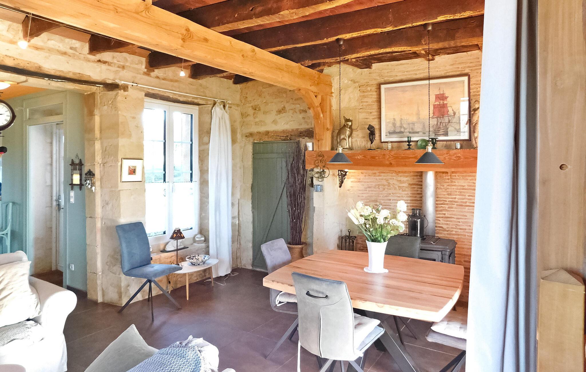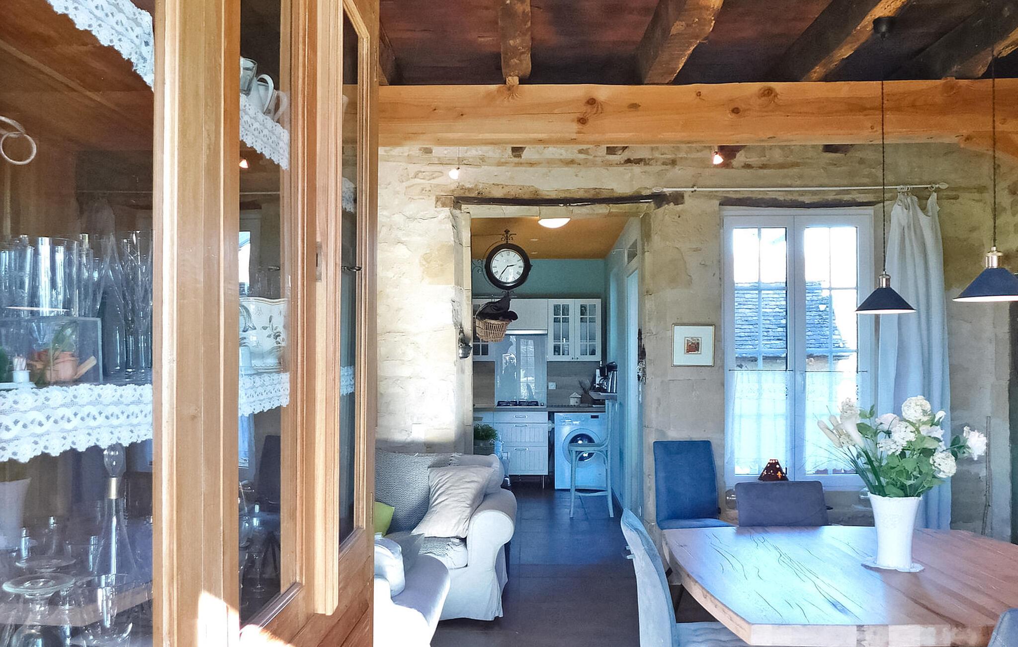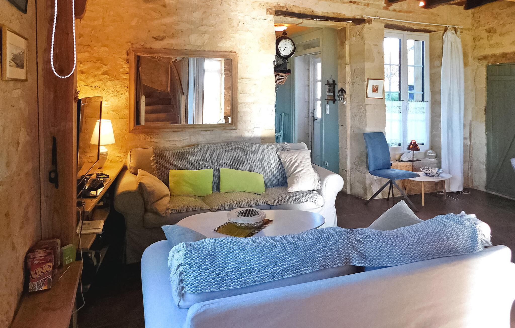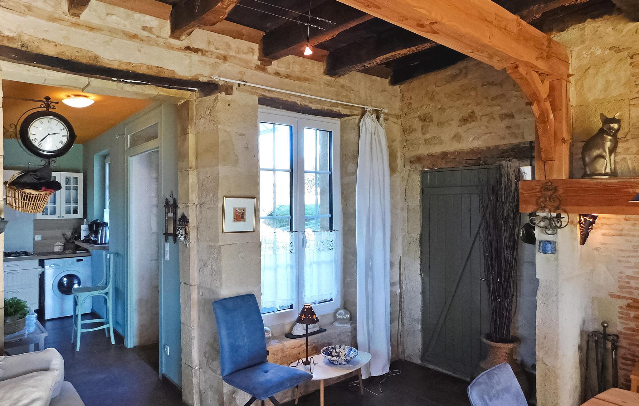 Dette charmerende feriehus, der ligger i en landsby i Périgord mellem Périgueux og Hautefort, har et selvstændigt køkken, en hyggelig opholdsstue med sofaer og en brændeovn samt en spiseplads. De to soveværelser er på første og anden sal. Uderummet omfatter en brolagt terrasse i tilknytning til køkkenet, en anden terrasse under en pergola og et afslapningsområde i skyggen af en palme ud mod frugtplantagen. Den private swimmingpool, med trækanter, måler 8m x 4m og er indhegnet i henhold til CE-standarder. Huset ligger i Magnac - Saint-Jory-Lasbloux, en landsby beliggende i den grønne Périgord ikke langt fra turistmæssige og historiske steder at besøge. Nærmeste butikker ca. 3 km væk. Gåture på stedet: sløjfen af miner og stenbrud samt sløjfen af vand og den fortryllede skov (gåture, ridning, cykelstier). I området vil du opdage: Saint Jean de Cole og dens middelalderlige landsby og hydrologiske ruter, hulerne i Vilars, Château de Puyguylhem; den besøgelige smedje Savignac Ledrier og dens private slot; Corgnac skinnecyklen. Landmandsmarkeder: torsdag i Excideuil, lørdag i Thiviers, onsdag i Périgueux.