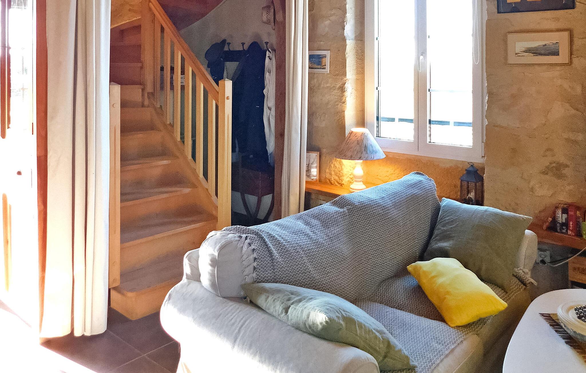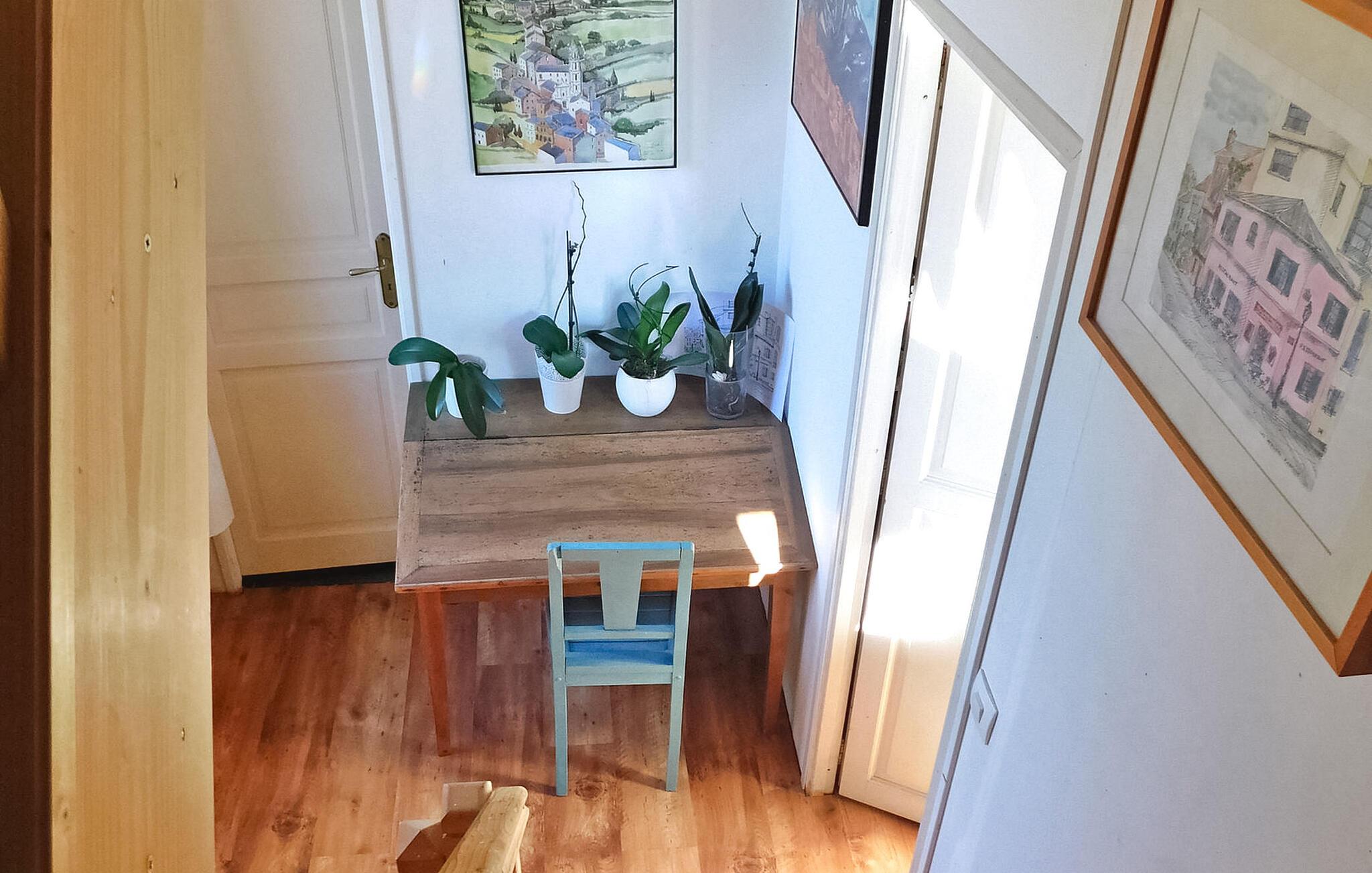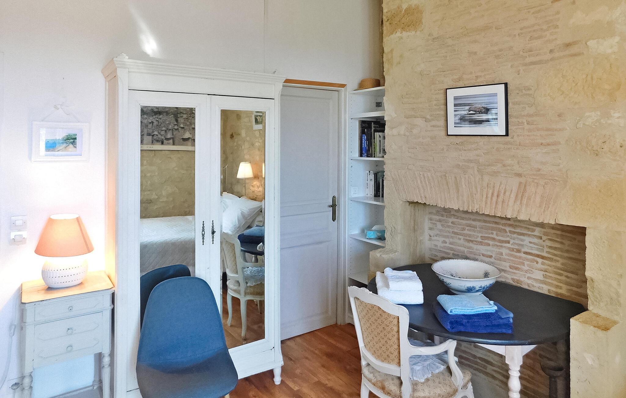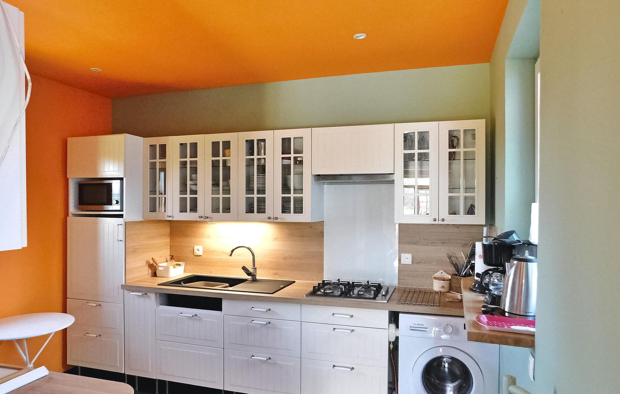 Dette charmerende feriehus, der ligger i en landsby i Périgord mellem Périgueux og Hautefort, har et selvstændigt køkken, en hyggelig opholdsstue med sofaer og en brændeovn samt en spiseplads. De to soveværelser er på første og anden sal. Uderummet omfatter en brolagt terrasse i tilknytning til køkkenet, en anden terrasse under en pergola og et afslapningsområde i skyggen af en palme ud mod frugtplantagen. Den private swimmingpool, med trækanter, måler 8m x 4m og er indhegnet i henhold til CE-standarder. Huset ligger i Magnac - Saint-Jory-Lasbloux, en landsby beliggende i den grønne Périgord ikke langt fra turistmæssige og historiske steder at besøge. Nærmeste butikker ca. 3 km væk. Gåture på stedet: sløjfen af miner og stenbrud samt sløjfen af vand og den fortryllede skov (gåture, ridning, cykelstier). I området vil du opdage: Saint Jean de Cole og dens middelalderlige landsby og hydrologiske ruter, hulerne i Vilars, Château de Puyguylhem; den besøgelige smedje Savignac Ledrier og dens private slot; Corgnac skinnecyklen. Landmandsmarkeder: torsdag i Excideuil, lørdag i Thiviers, onsdag i Périgueux.