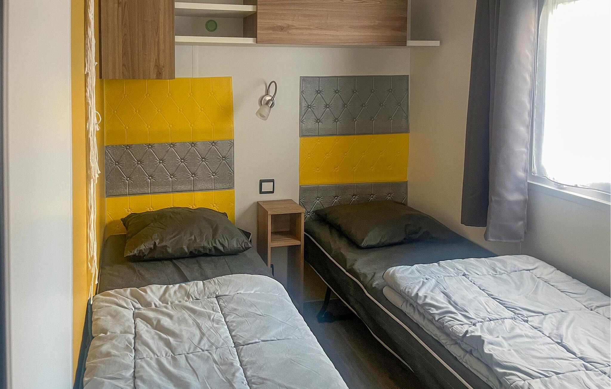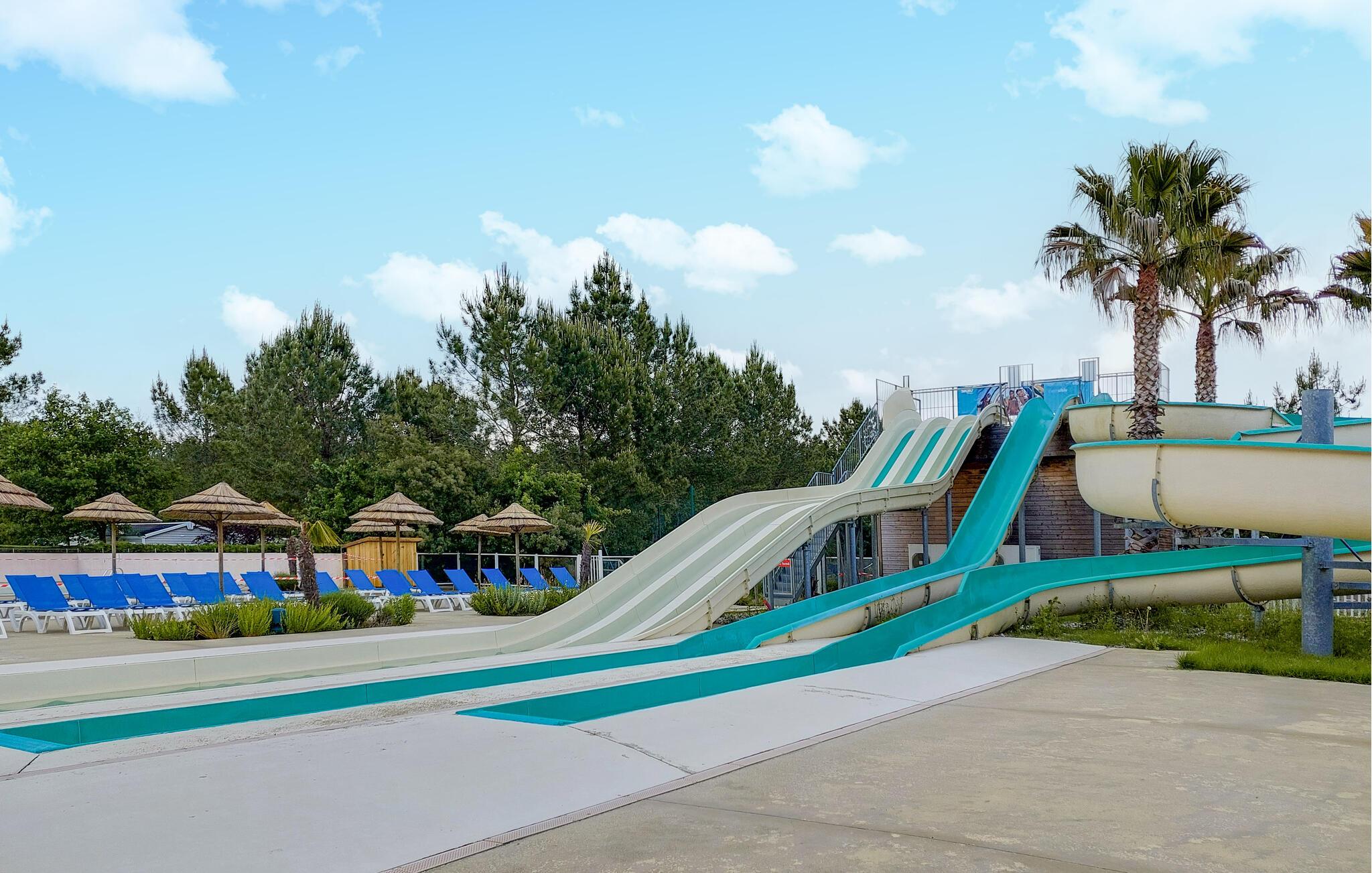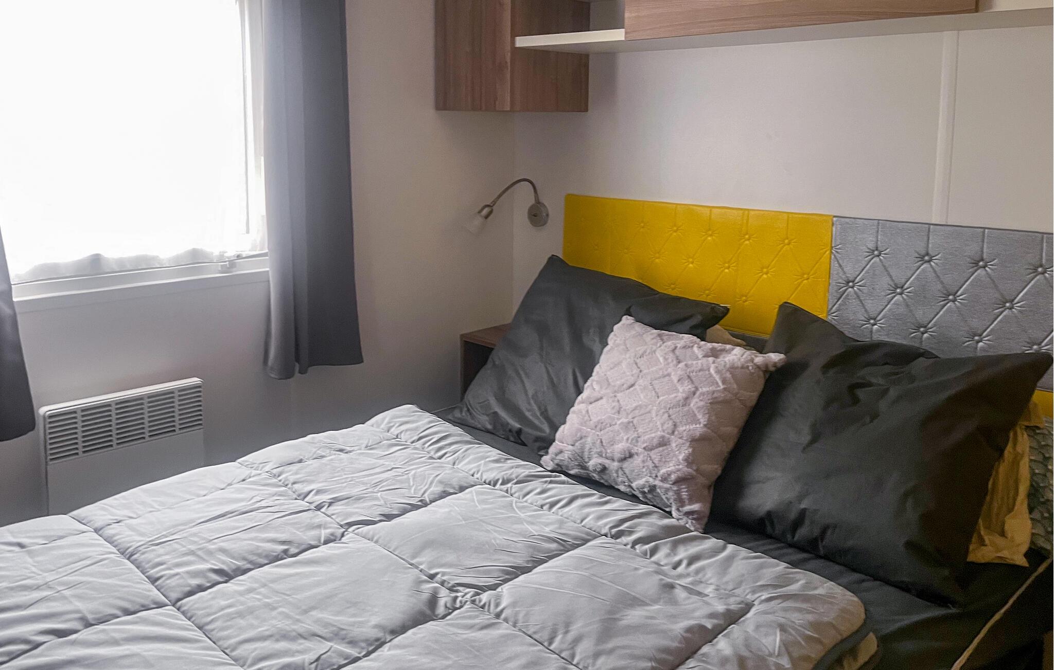 Den overdækkede terrasse er det ideelle sted at begynde dagene med en kop kaffe eller slappe af om aftenen med et glas vin. En plancha lægger op til at tilberede lækre måltider udendørs. I bor på en campingplads, her finder I en restaurant, en bar, en petanquebane, en tennisbane, en købmand og meget mere. Forskellige shows og aktiviteter finder sted hver aften i den store eventhal. Campingpladsen har to opvarmede pools og et vandfaldsområde for børn og voksne.