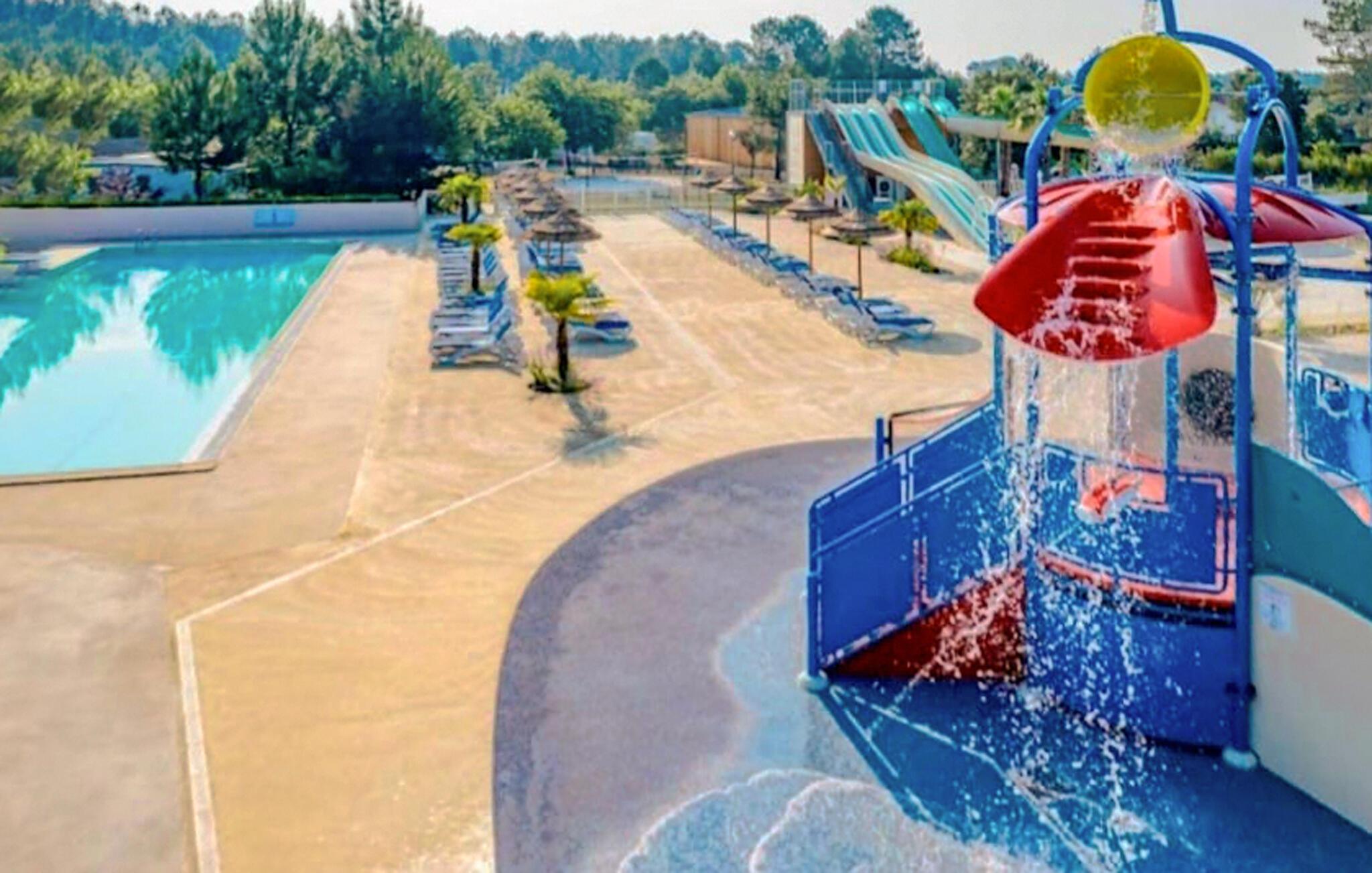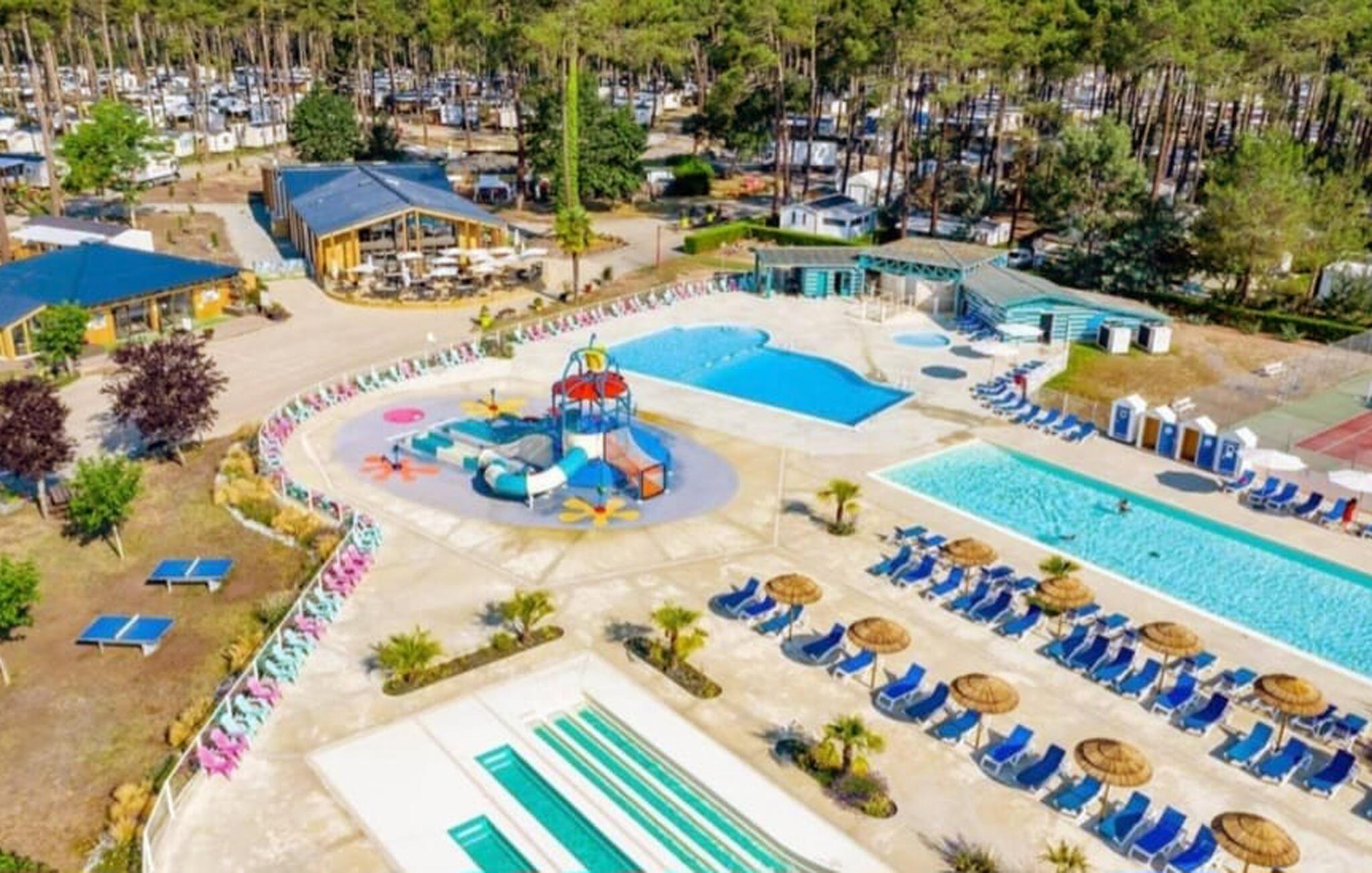 Dra nytte af adgangen til campingpladsens forskellige betalte aktiviteter. Svøm baner i den store pool, nyd rutsjebanerne eller tag med børnene til det farverige vandlegeområde. Den lange sandstrand i Saint-Julien-en-Born og de omkringliggende fyrreskove lægger op til udflugter, cykelture og gåture.