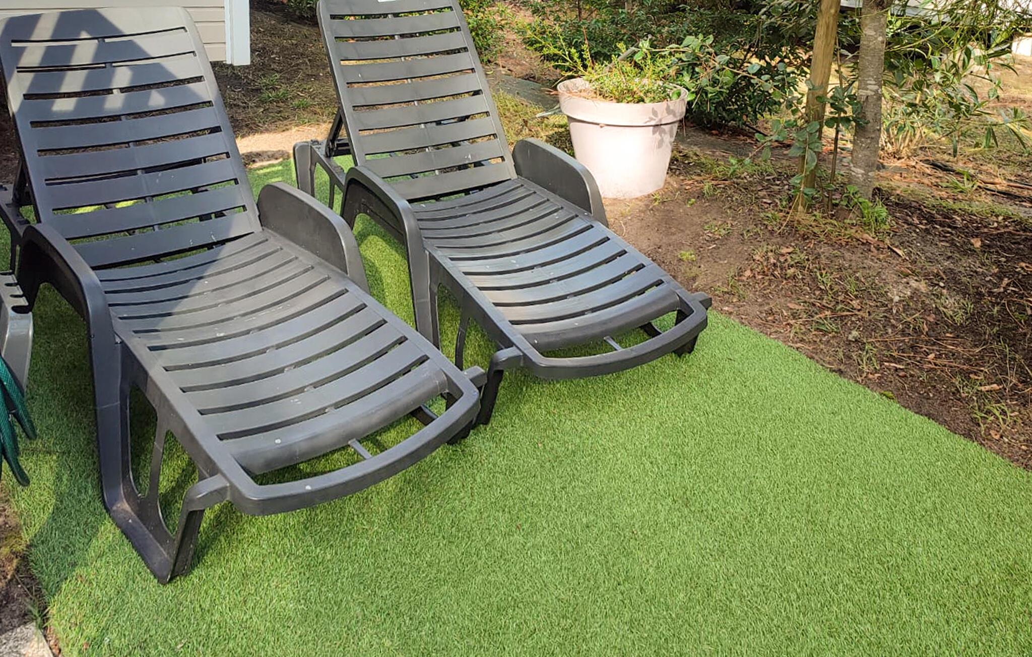Slap af på den overdækkede træterrasse eller sæt jer på liggestolene i den lille have med middelhavsplanter. Grill jeres måltider på grillen og afslut dagen i det hyggelige siddeområde. Området omkring byder på privatliv og behagelig skygge under høje træer.