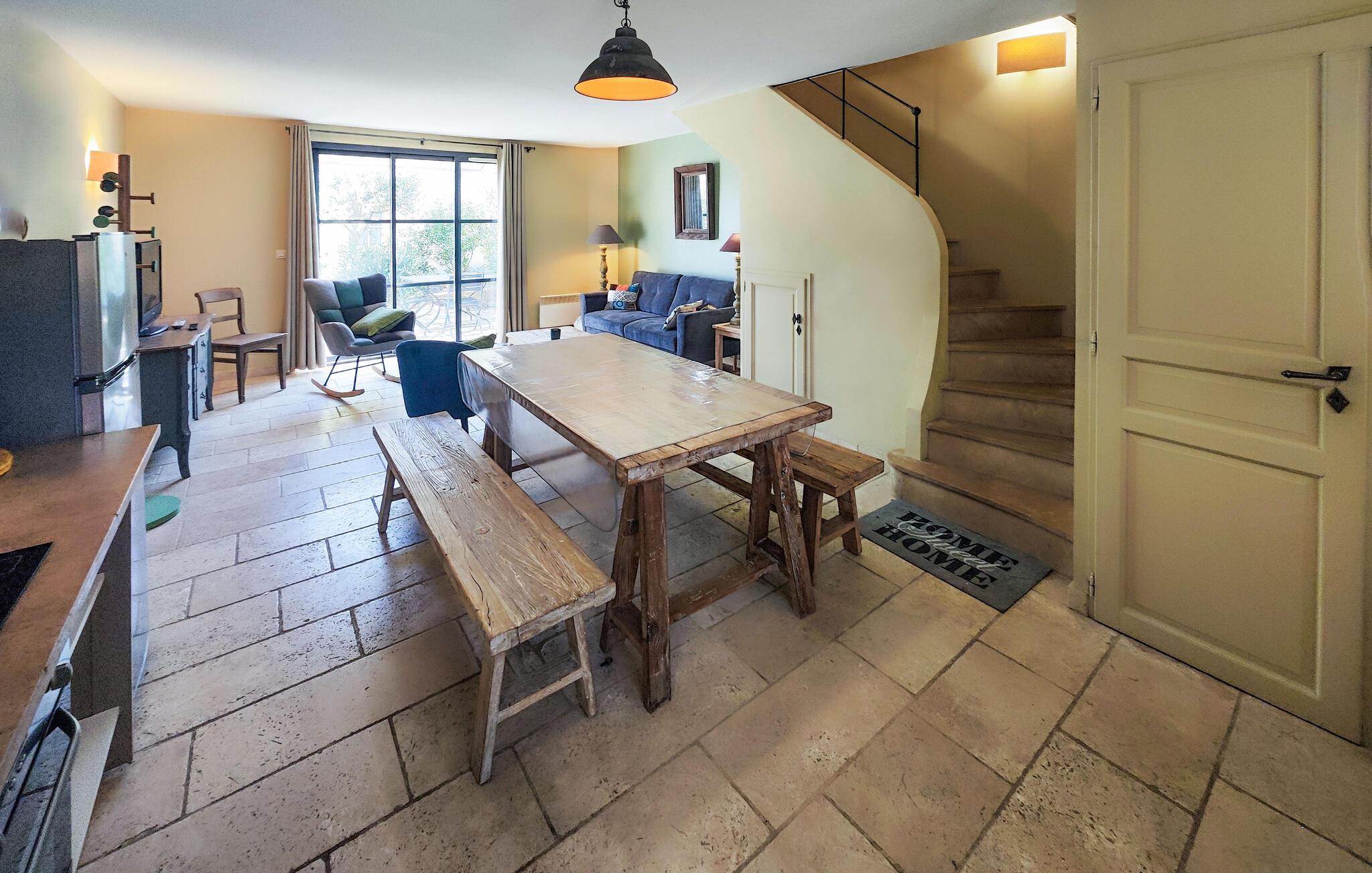 Der venter jer en både afvekslende og afslappende ferie i dette flotte hus, som egner sig perfekt til et ophold med den lille familie. Indretningen fremtræder elegant og stilrent i varme farveskalaer, og husets hjerte er det åbne opholdsrum i stueetagen, hvor der venter jer mange timers hygge. Gør madlavningen til et fornøjeligt fælles projekt og nyd måltiderne ved det rustikke spisebord, inden I runder aftenen af med brætspil eller en god film i den behagelige sofa. Soveværelserne er indbydende og komfortable, og når I står op, kan I starte dagen med en lækker morgenmad på terrassen. Find sol, skygge og læ efter behov og slå mave, inden I begiver jer på udflugt.
