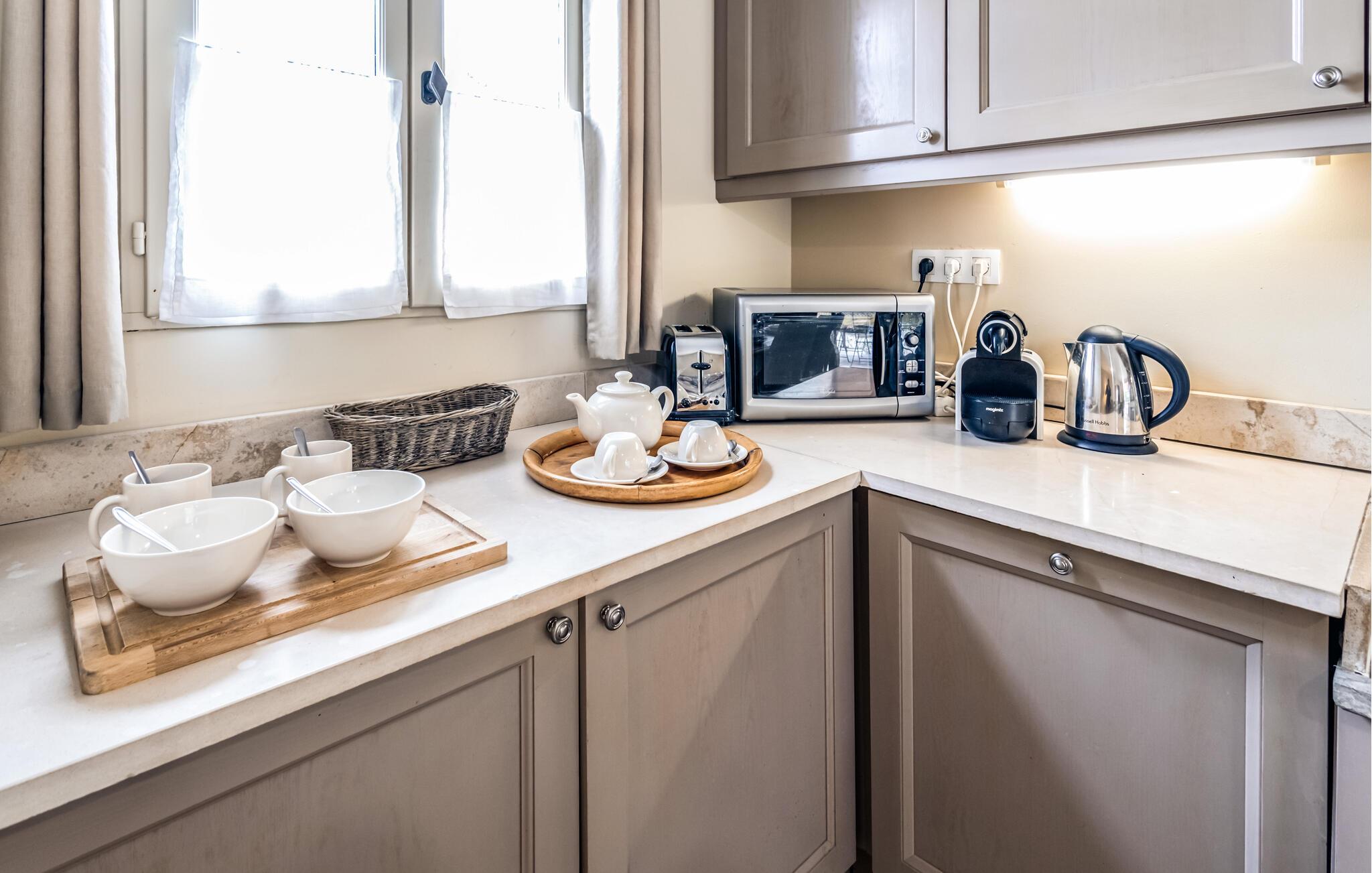 Der venter jer en både afvekslende og afslappende ferie i dette flotte hus, som egner sig perfekt til et ophold med den lille familie. Indretningen fremtræder elegant og stilrent i varme farveskalaer, og husets hjerte er det åbne opholdsrum i stueetagen, hvor der venter jer mange timers hygge. Gør madlavningen til et fornøjeligt fælles projekt og nyd måltiderne ved det rustikke spisebord, inden I runder aftenen af med brætspil eller en god film i den behagelige sofa. Soveværelserne er indbydende og komfortable, og når I står op, kan I starte dagen med en lækker morgenmad på terrassen. Find sol, skygge og læ efter behov og slå mave, inden I begiver jer på udflugt.