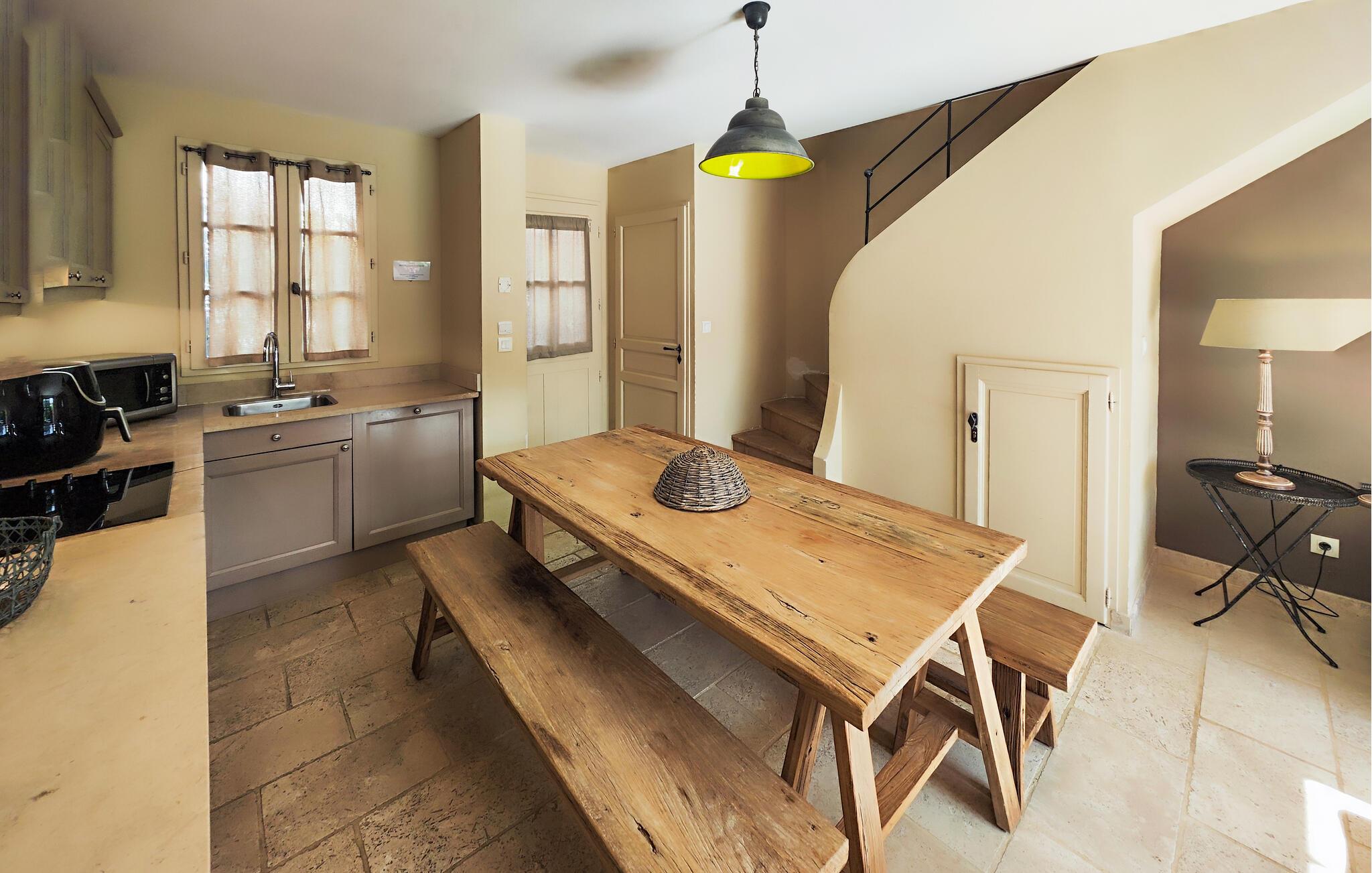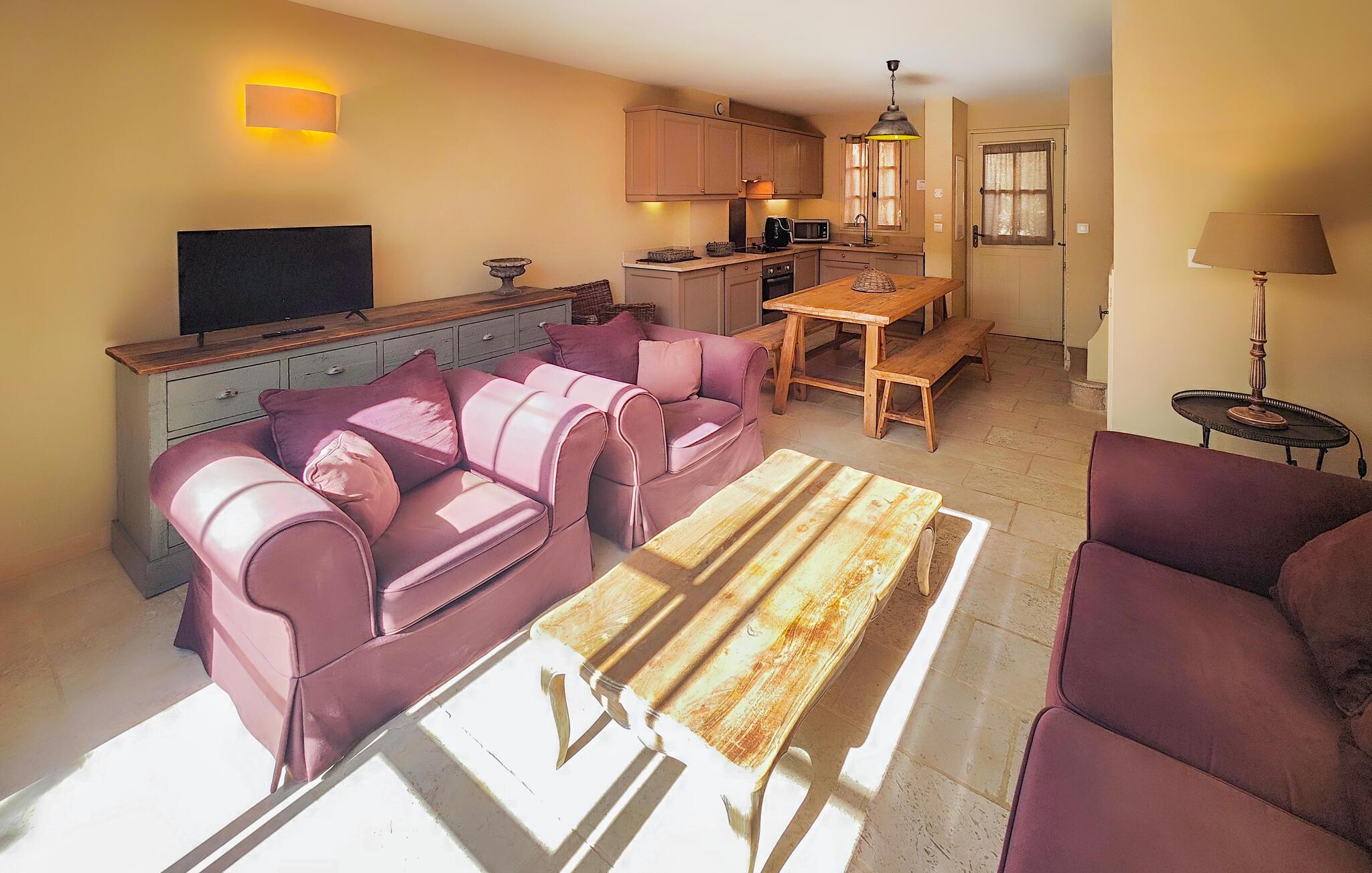 Der venter jer en både afvekslende og afslappende ferie i dette flotte hus, som egner sig perfekt til et ophold med den lille familie. Indretningen fremtræder elegant og stilrent i varme farveskalaer, og husets hjerte er det åbne opholdsrum i stueetagen, hvor der venter jer mange timers hygge. Gør madlavningen til et fornøjeligt fælles projekt og nyd måltiderne ved det rustikke spisebord, inden I runder aftenen af med brætspil eller en god film i den behagelige sofa. Soveværelserne er indbydende og komfortable, og når I står op, kan I starte dagen med en lækker morgenmad på terrassen. Find sol, skygge og læ efter behov og slå mave, inden I begiver jer på udflugt.