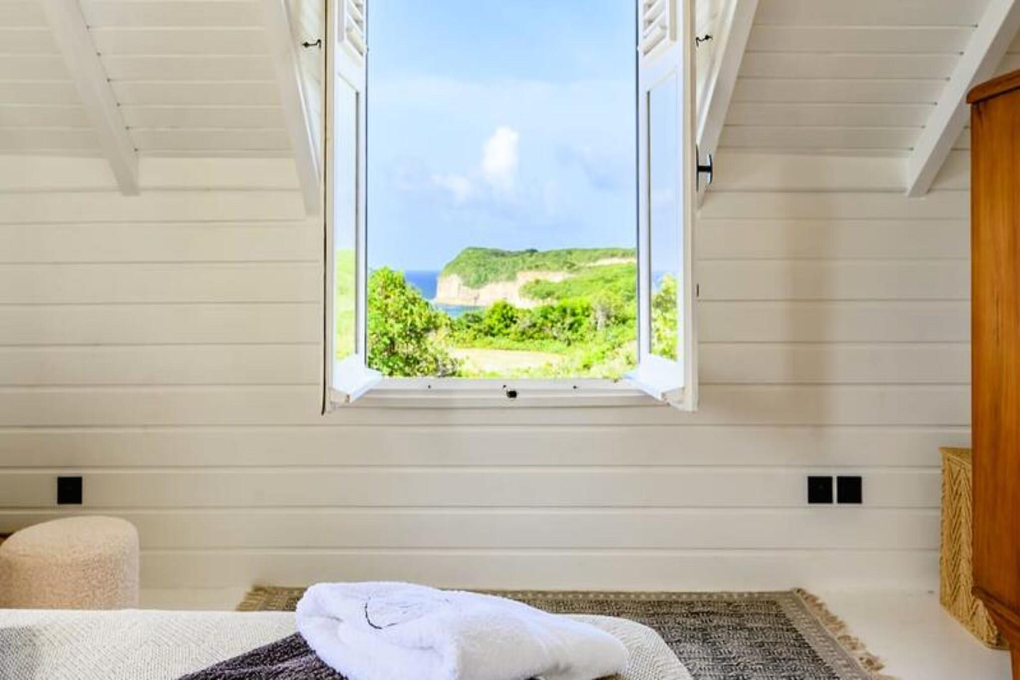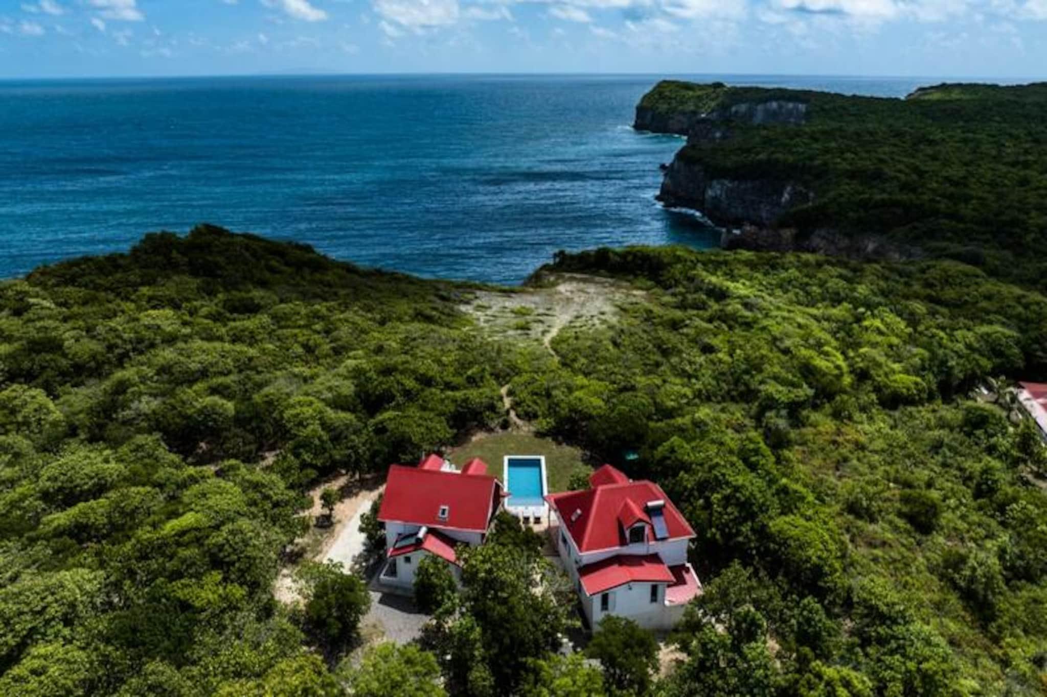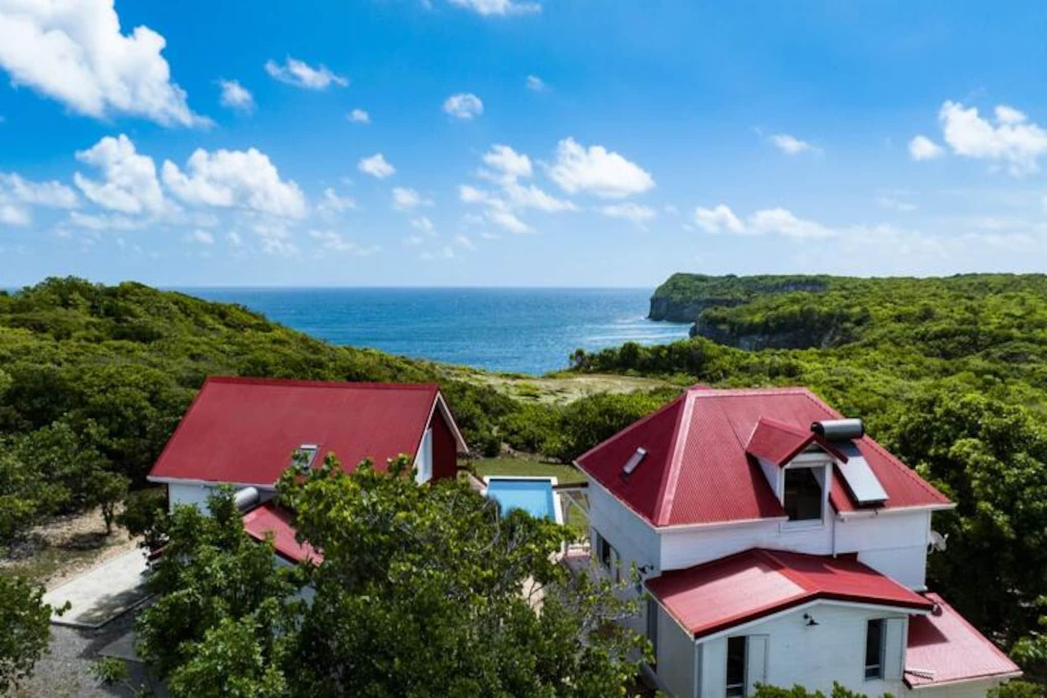 Denne fantastiske villa på øen Marie-Galante, der ligger på kanten af ??en dramatisk klippe, tilbyder en fredfyldt oase med en betagende udsigt over det turkisblå hav. Omgivet af frodige vinplantager ved havet er dette tilflugtssted en oase af ro og autenticitet, perfekt til dem, der søger en fredelig ferie under den caribiske sol. Fra det øjeblik solen står op, vil villaens panoramaudsigt betage dig og skabe en magisk baggrund for dit ophold. Villaen er designet til at rumme op til otte gæster og har fire soveværelser med aircondition, der alle er omhyggeligt møbleret for at sikre afslappende nætter. Den kreolske arkitektur blander charme og moderne komfort med et fuldt udstyret køkken, der åbner ud til en rummelig terrasse, ideel til fælles måltider og sammenkomster. Udenfor inviterer den private pool dig til at slappe af, mens du nyder den uhindrede havudsigt, og petanquebanen tilføjer et strejf af sjov for familie og venner. Hver eneste detalje er blevet tænkt over, fra poolhåndklæder til højhastigheds-fiberinternet, hvilket sikrer en problemfri og luksuriøs oplevelse. Villaens beliggenhed er lige så fortryllende. Kun en kort køretur væk finder du de idylliske strande Saint-Louis og Anse de Mays, perfekte til svømning og snorkling. Udforsk øens rige kulturarv med besøg på de historiske vindmøller og det berømte Bielle-destilleri, eller tag på naturskønne vandreture for at beundre Gueule Grand-Gouffre. Uanset om du jagter spektakulære solnedgange, dyrker vandsport eller blot nyder den fredelige atmosfære, tilbyder denne villa den perfekte balance mellem afslapning og opdagelse. Med eksklusive concierge-tjenester, herunder udflugter, biludlejning og anbefalinger til lokale begivenheder, vil dit ophold blive intet mindre end uforglemmeligt. Lad Marie-Galantes skønhed og komforten i denne villa skabe minder, der vil vare livet ud.