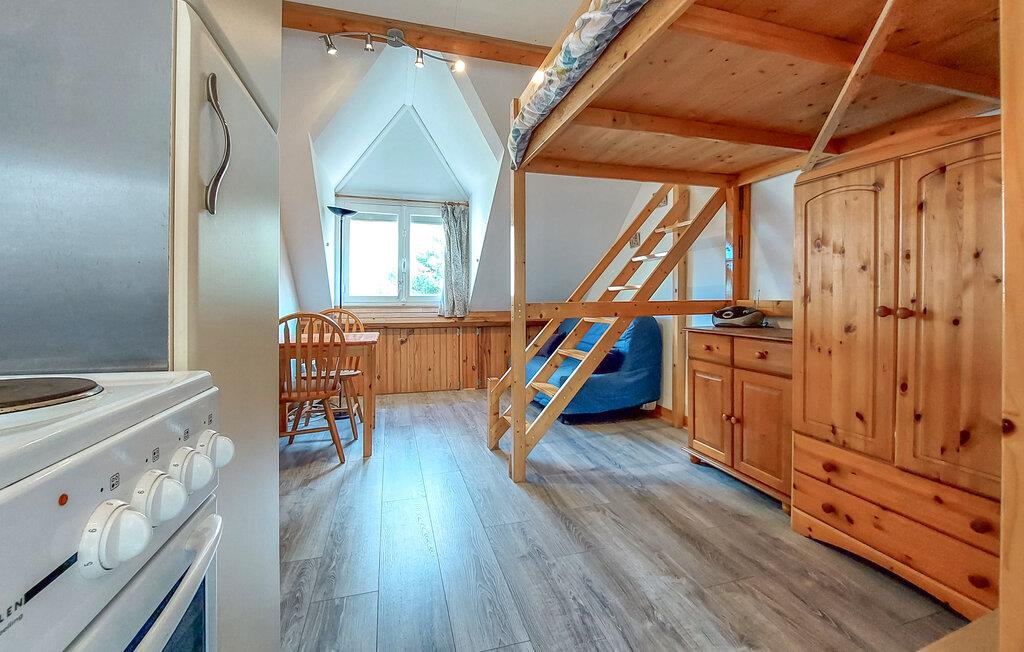 Denne praktiske etværelseslejlighed i Saint-Lunaire tilbyder alt, hvad I skal bruge for en afslappende ferie. Med sin varme træindretning og et smart designet hems-soveområde kombinerer boligen komfort og funktionalitet. Den lyse og indbydende atmosfære gør lejligheden til det perfekte tilflugtssted efter en dag fuld af oplevelser. Nyd jeres måltider ved det lille spisebord eller slap af med en god bog – denne bolig er ideel til en ubekymret ferie.