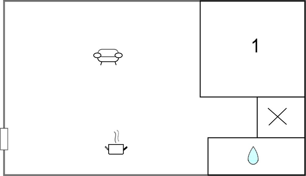 Opholdsstue 12m2 - 2 Sovepladser. (Sofa, madras eller lignende). 1 Soveplads. (Madras).
