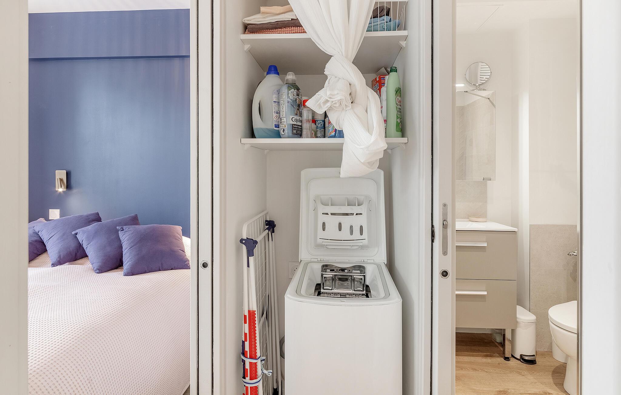 I denne kompakte lejlighed får I alt, I behøver, til en afslappende ferie med den lille familie. Boligen er hyggeligt indrettet med trægulve og vægge i lyse farver, der skaber en rar atmosfære, I kan slappe af i efter en aktiv feriedag. Køkken og stue er i ét rum, så nogen kan hygge sig med madlavningen og samtidig følge med i samtalen i sofaen. Her kan I runde aftenen af med kortspil eller en god film på tv'et, mens I lægger planer for de kommende dage.