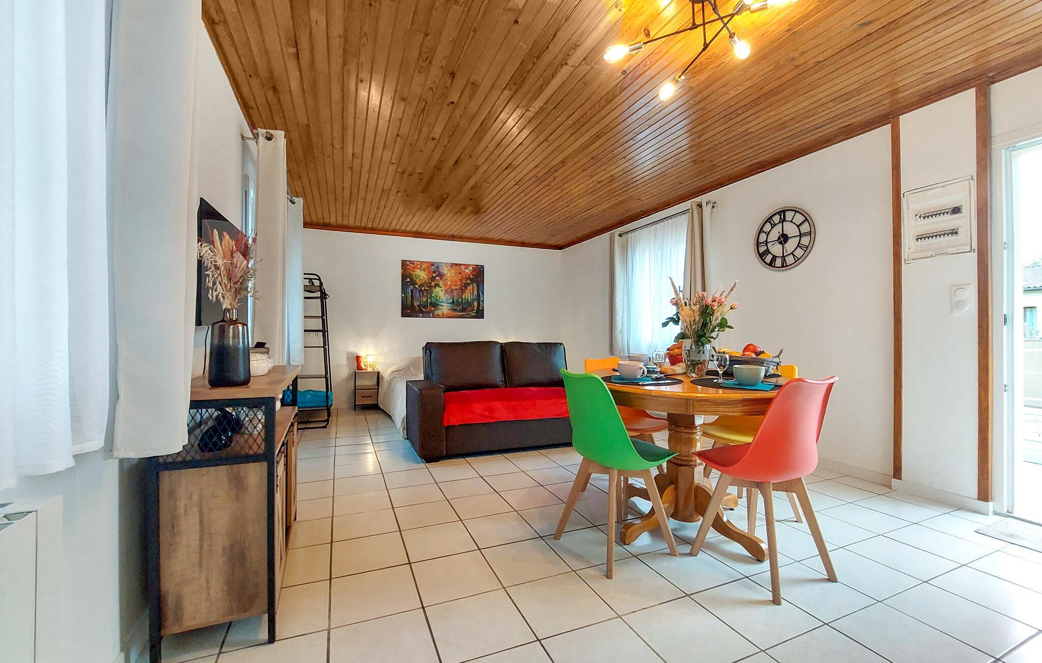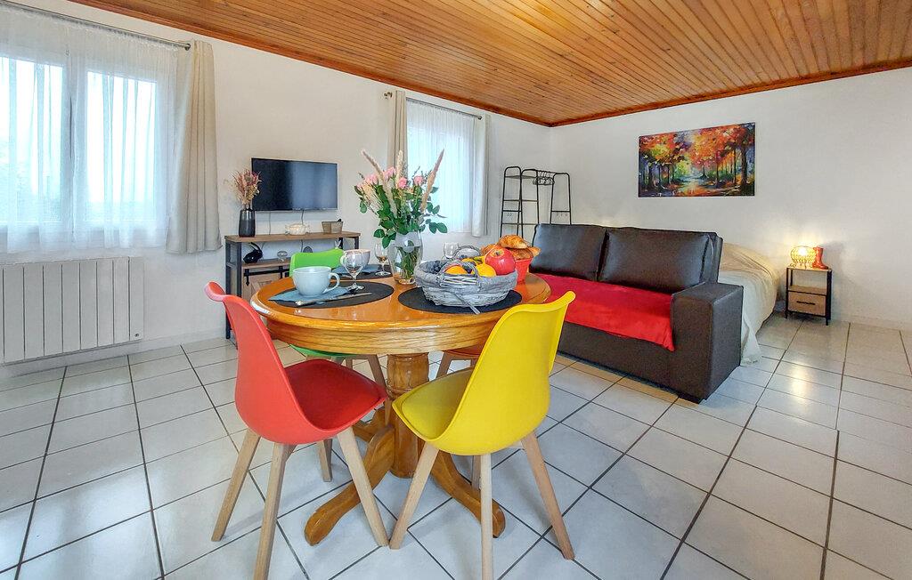 De kompakte ferier tilbyder og afslappet ophold i hjertet af Périgord Noir. Fantastisk komfort i den indendørs, komfortable lounge med sofa og tv. Der er meget af det sammen med den runde bakke, så jeg kan tale om det på den lille, praktiske måde.