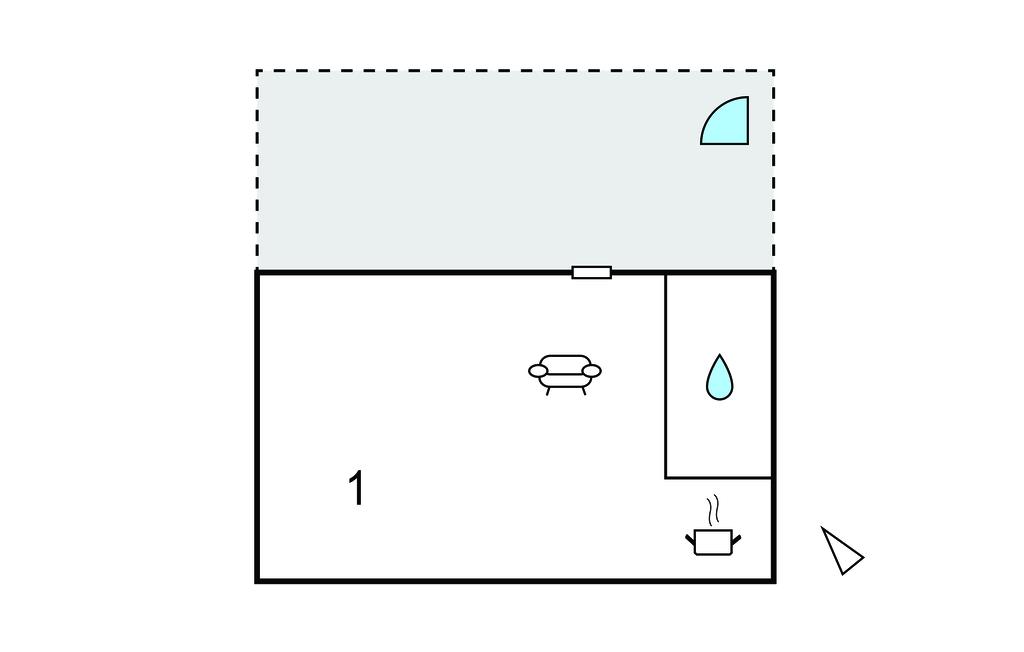 Opholdsstue 17m2 - 2 Sovepladser. (Sofa, madras eller lignende).