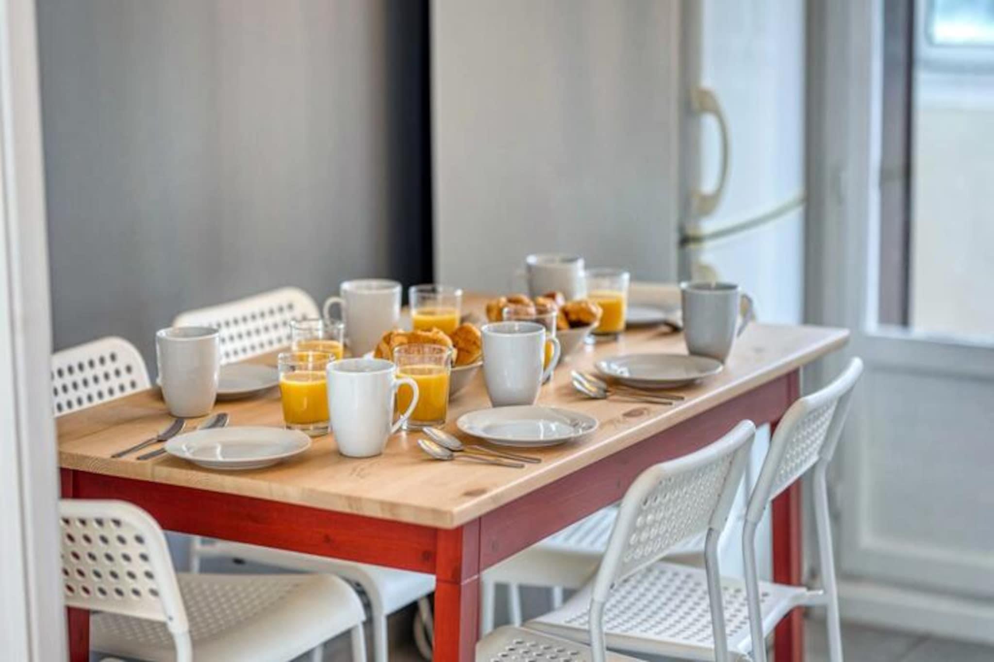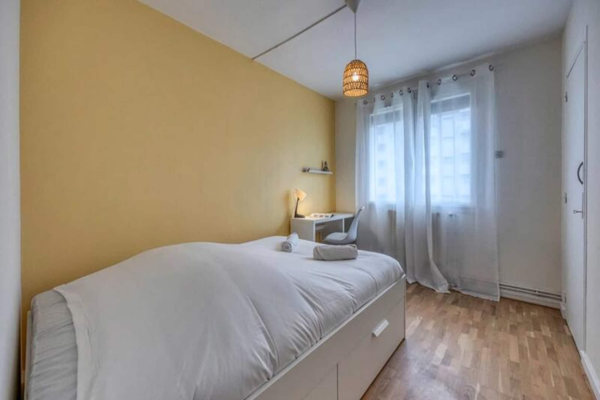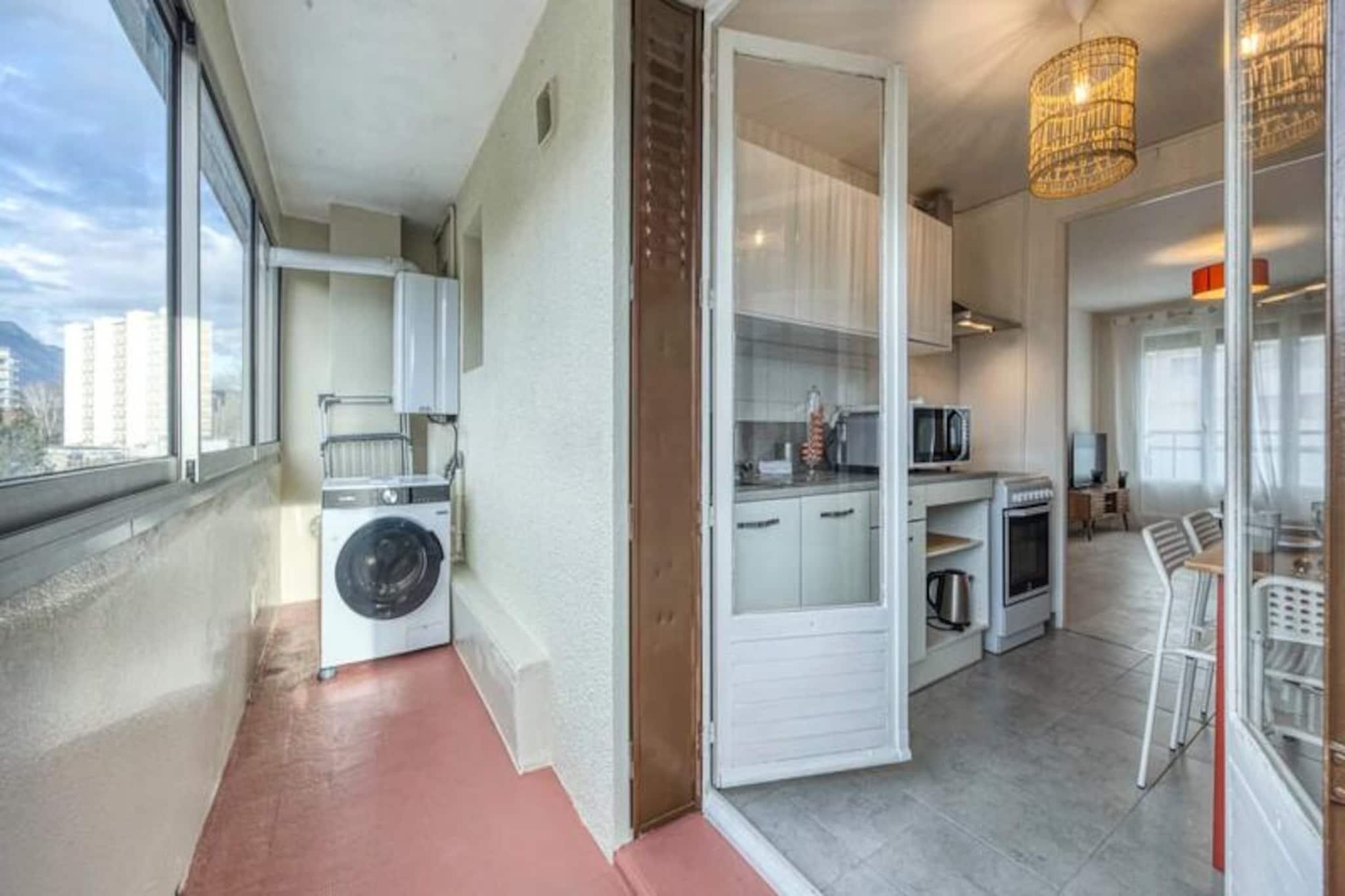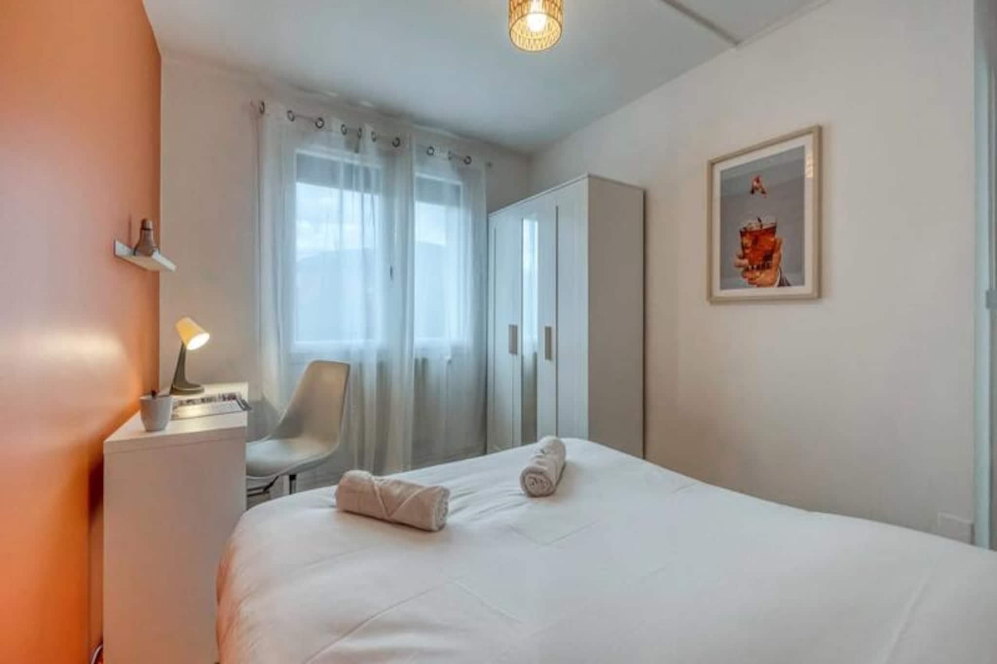 I hjertet af Saint Martin d'Hères, hvor urban komfort møder charmen fra de franske alper, tilbyder denne smukt renoverede 4-værelses lejlighed et indbydende tilflugtssted for op til seks gæster. Uanset om du besøger stedet i forbindelse med forretning eller fritid, kombinerer denne ejendom moderne komfort med et strejf af lokalt præg, hvilket gør den til den perfekte base for dit ophold. Fra det øjeblik du træder ind, vil du føle dig hjemme i de lyse, luftige rum, der er designet til afslapning og forbindelse. Lejligheden har en rummelig stue med et hyggeligt opholdsområde, et tv og Wi-Fi, så du kan holde dig forbundet. Det halvåbne køkken er fuldt udstyret med køleskab, induktionskogeplade, ovn, mikrobølgeovn og kaffemaskine, hvilket sikrer, at du har alt, hvad du behøver for at tilberede lækre måltider. Tre komfortable soveværelser, hver med en dobbeltseng, garderobe, skrivebord og stol, giver afslappende rum til en god nats søvn. Et moderne brusebad og et separat toilet bidrager til bekvemmeligheden, mens loggiaen med en vaskemaskine sikrer et praktisk touch til længere ophold. Gå udenfor, og du vil befinder dig kun få minutter fra offentlige transportforbindelser, herunder C8-bussen, der forbinder dig til universiteter, Echirolles, Eaux Claires og bymidten. Gratis parkering i boligen gør det nemt for dem, der rejser i bil. Udforsk det pulserende lokalområde med dets blanding af kulturelle attraktioner, grønne områder og travle markeder, eller begiv dig længere ud for at opdage de fantastiske landskaber i den omkringliggende region. Uanset om du er her for at udforske byen, nyde de nærliggende bjerge eller blot slappe af i et komfortabelt og veludstyret rum, tilbyder denne lejlighed en ideel blanding af beliggenhed, faciliteter og stil. Book dit ophold i dag, og oplev det bedste af Saint Martin d'Hères.