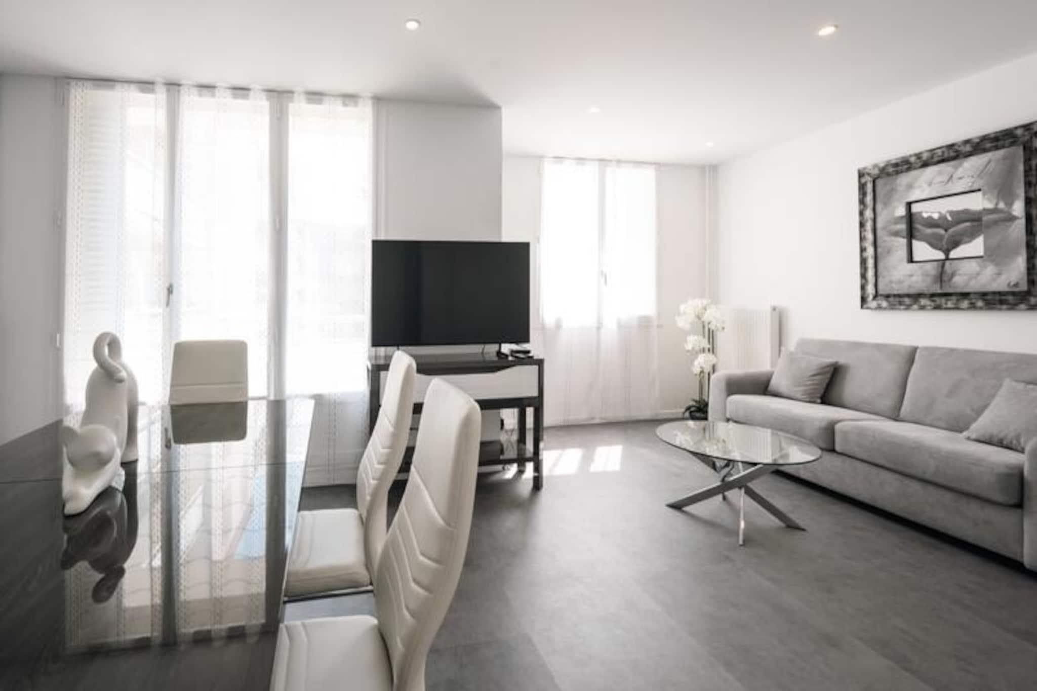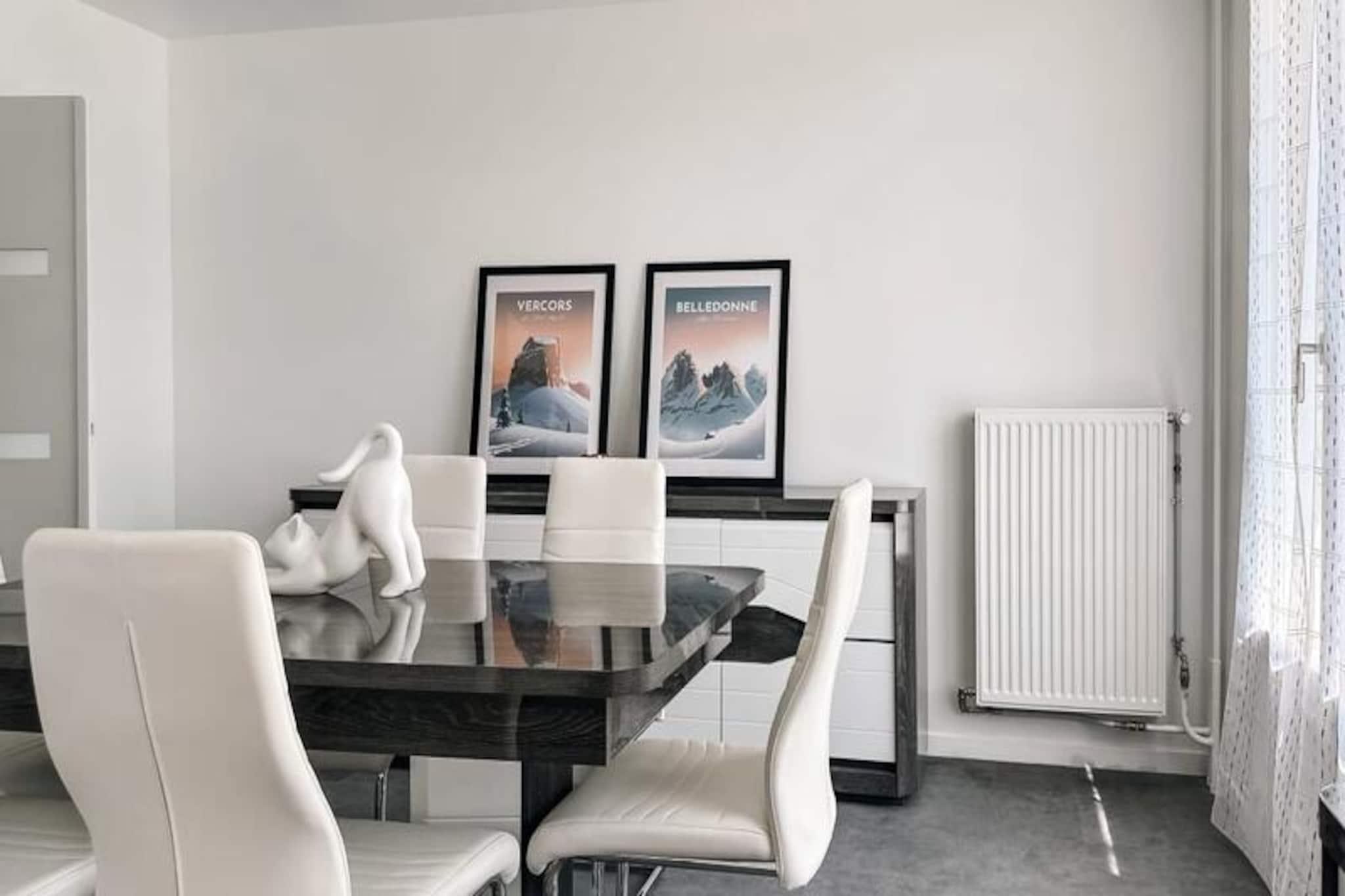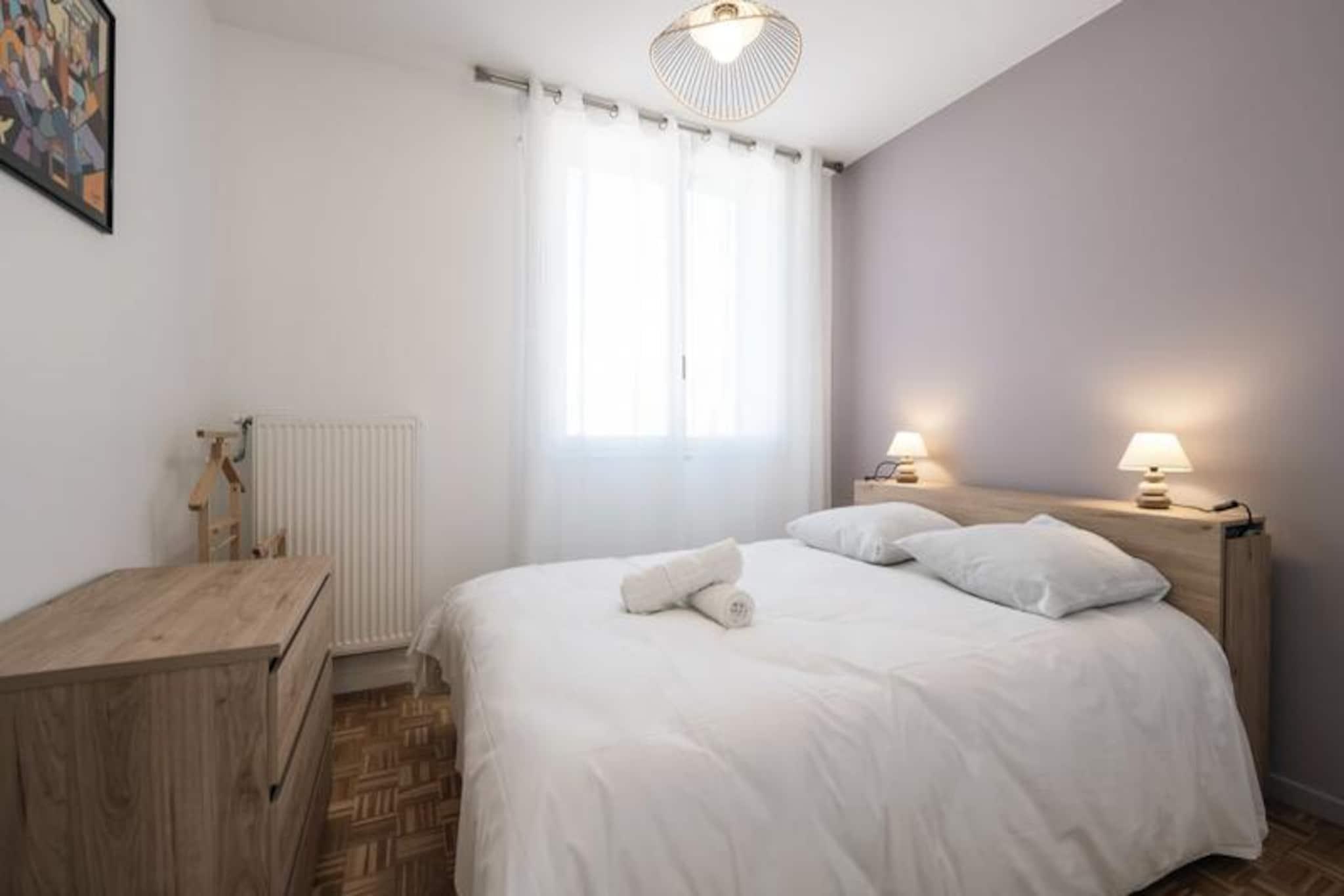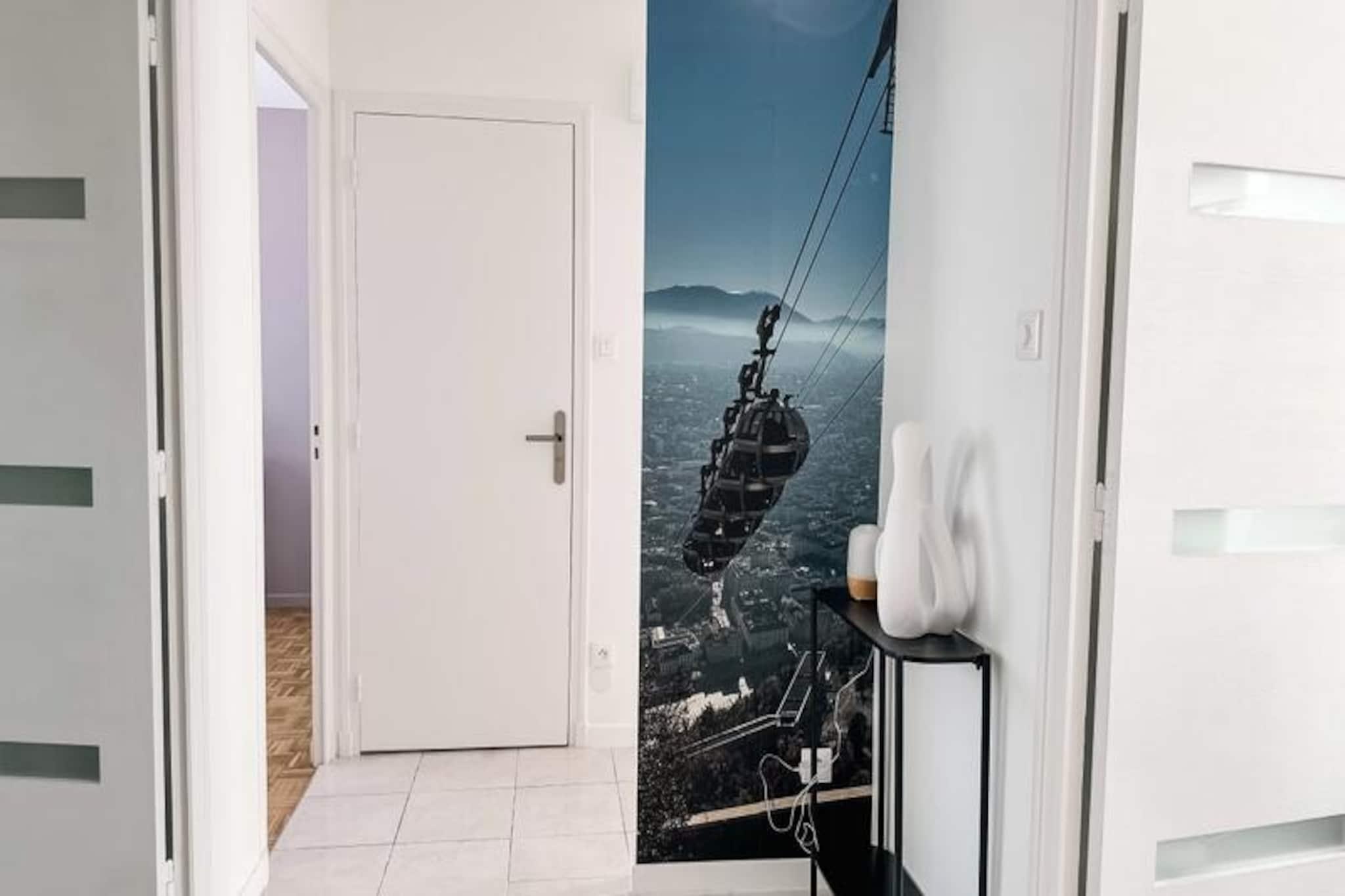 I den pulserende by Grenoble, hvor de majestætiske Alper rejser sig som en betagende baggrund, tilbyder denne rummelige og fuldt udstyrede lejlighed med 2 soveværelser et indbydende tilflugtssted for op til seks gæster. Uanset om du besøger på forretningsrejse eller ferie, kombinerer denne moderne indkvartering komfort og bekvemmelighed i hjertet af det sydøstlige Frankrig. Med sit gennemtænkte design og hyggelige atmosfære er det den perfekte base for at udforske byen og de omkringliggende naturlige vidundere. Træd indenfor for at opdage en lys opholdsstue med en komfortabel sovesofa, et fladskærms-tv og Wi-Fi-adgang, hvilket gør det nemt at slappe af eller holde forbindelsen. Den tilstødende spiseplads åbner ud til en balkon med bord og stole, ideel til at nyde din morgenkaffe eller en aftendrink med udsigt over det livlige kvarter. Det separate køkken er fuldt udstyret med moderne apparater, herunder induktionskogeplade, ovn, mikrobølgeovn, opvaskemaskine og en Nespresso-maskine, hvilket sikrer, at du har alt, hvad du behøver for at tilberede måltider under dit ophold. En loggia med vaskemaskine giver ekstra bekvemmelighed til længere ophold. Lejligheden kan prale af to rolige soveværelser: et med en dobbeltseng og et andet med to enkeltsenge, alle udstyret med bløde dyner og puder. Et elegant badeværelse med bruser og separat toilet fuldender planløsningen. Gæsterne vil sætte pris på det inkluderede sengelinned, håndklæder og en betænksom velkomstpakke, der gør deres ophold endnu mere behageligt. Lejligheden ligger kun få minutter fra busstoppesteder, der forbinder dig til Grenobles vigtigste attraktioner, og tilbyder også gratis gadeparkering (afhængigt af tilgængelighed). Uanset om du er her for at udforske byens rige historie, nyde dens pulserende kulturscene eller vove dig ud i de nærliggende bjerge for at vandre eller stå på ski, er denne lejlighed en ideel base. Book nu for en problemfri og mindeværdig Grenoble-oplevelse.