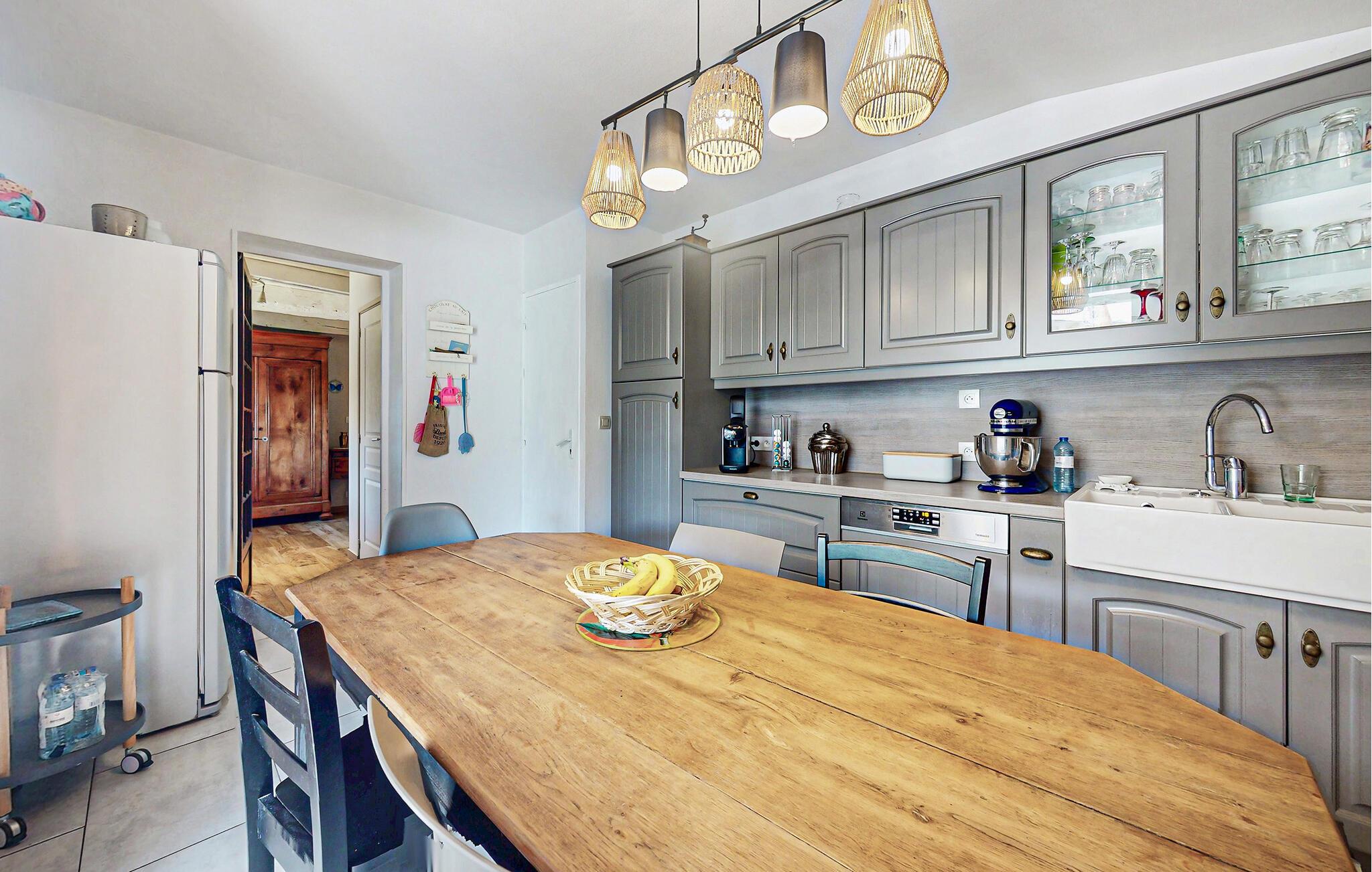 Dette traditionelle stenhus tilbyder ren afslapning omgivet af naturen. Nyd hyggelige timer i opholdsstuen med synlige bjælker, naturstensvægge og komfortable sofaer. Udnyt den stilfulde spisestue med udsigt over de grønne områder eller tilbring hyggelige aftener foran pejsen. Tilbered jeres måltider i det rummelige køkken, og nyd morgenmaden her om morgenen.