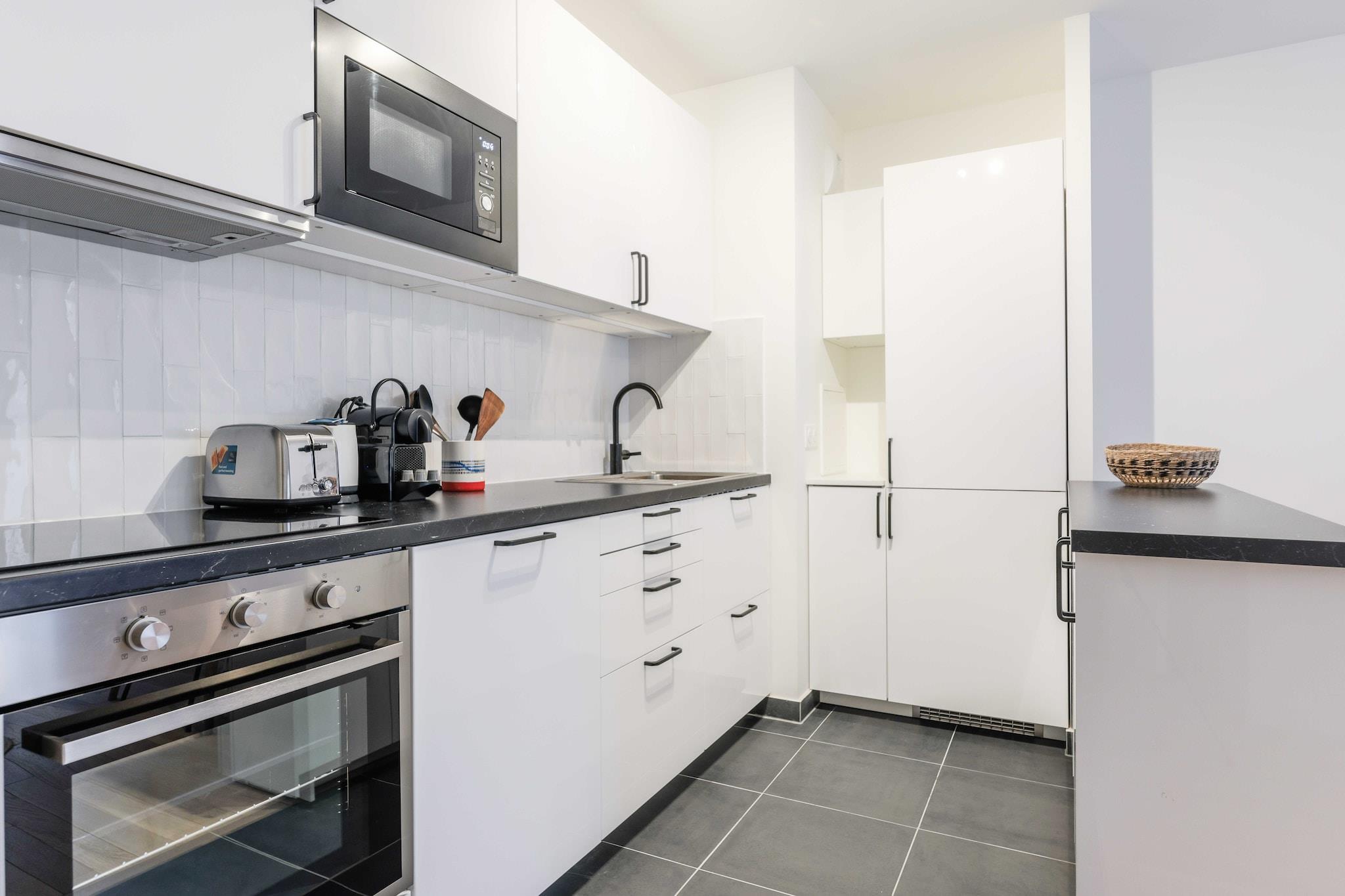 På 5. etage: (Stue(, enkeltseng, Fjernsyn, spisebord), Køkken(kakkelovn, elkedel, brødrister, kaffemaskine, ovn, mikrobølgeovn, opvaskemaskine , køleskab, , ), soveværelse(, dobbeltseng), soveværelse(, dobbeltseng), badeværelse(badekar, håndvask, vaskemaskine, føntørrer, Håndklæder/sengelinned (inkl.), ), toilet(toilet)) , , Førstehjælp, Legeområde, balkon eller terrasse, varme, strygejern, , Cleaning Disinfection, Downtown, Enhanced cleaning practices, High touch surfaces disinfected, Long term stays allowed, Room-darkening shades, Town