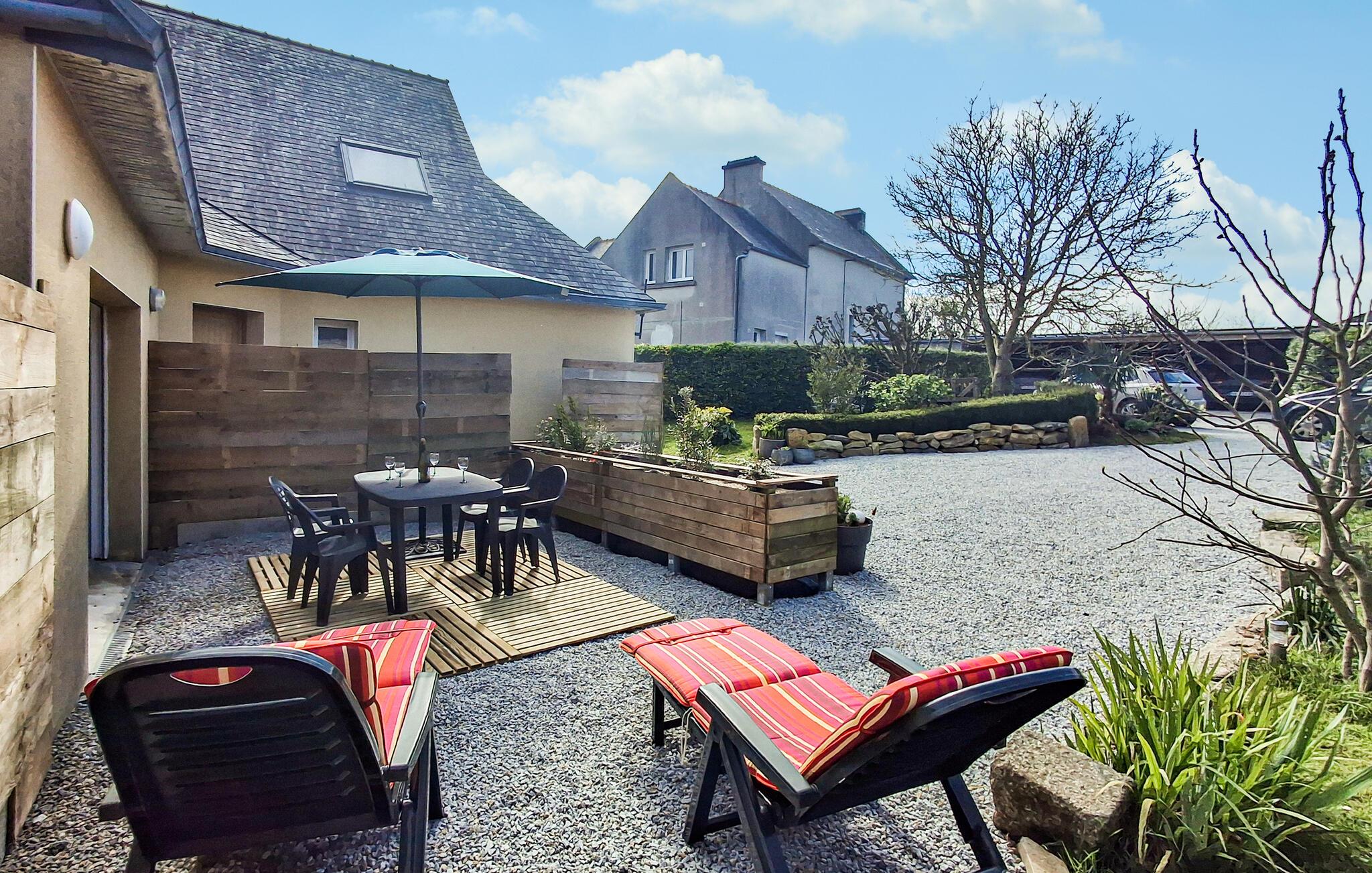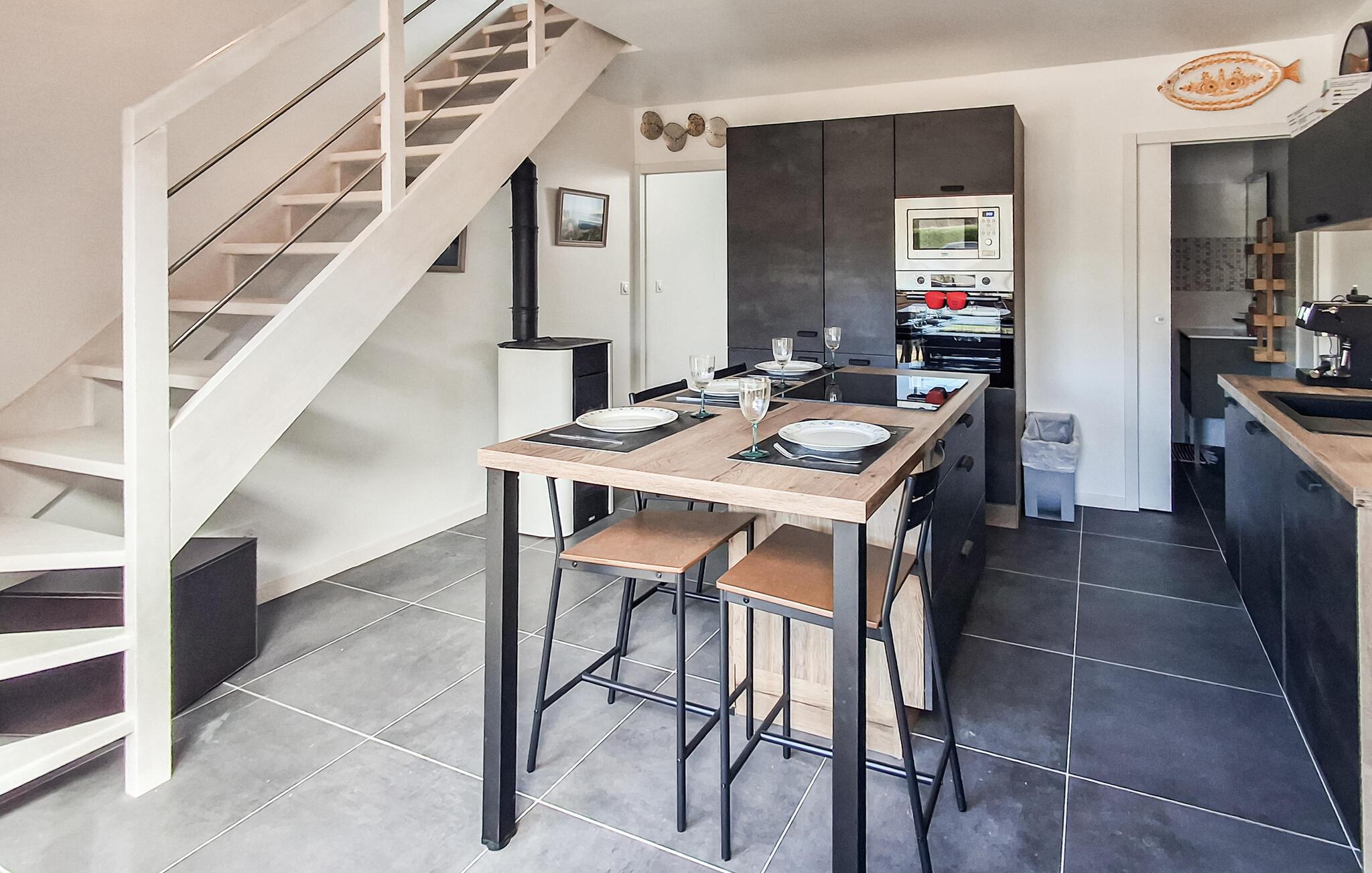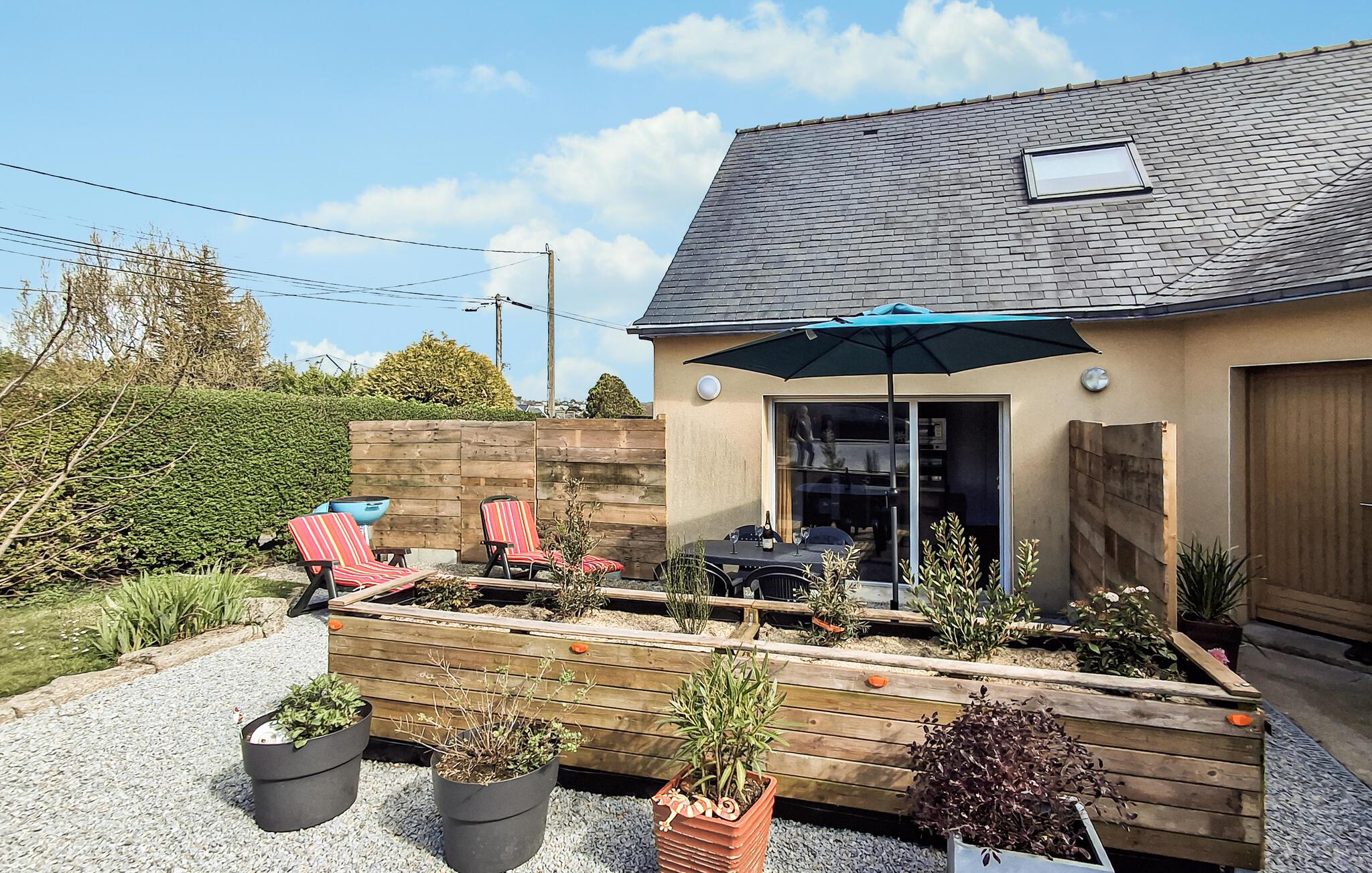 Dette smagfulde feriehus ligger kun en kort gåtur fra de smukke badeområder i Aber Benoît og lover en stille og alligevel begivenhedsrig pause med venner eller familie. Tilbered lækre retter i det moderne køkken og tag plads ved det stilfulde spisebord. Efter en lang dag kan I finde jer tilpas i den hyggelige stue og nyde et brætspil eller en god læsning.