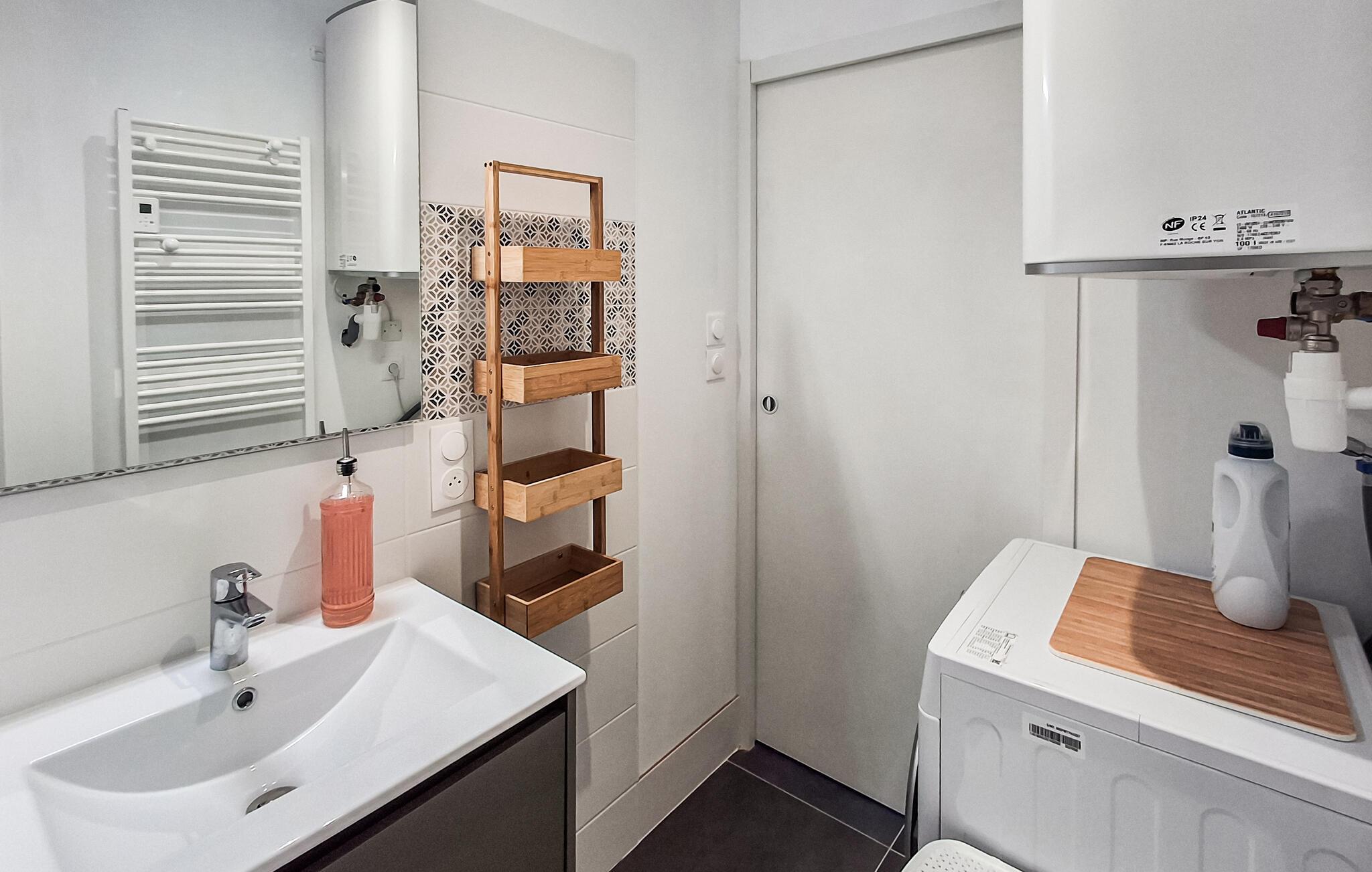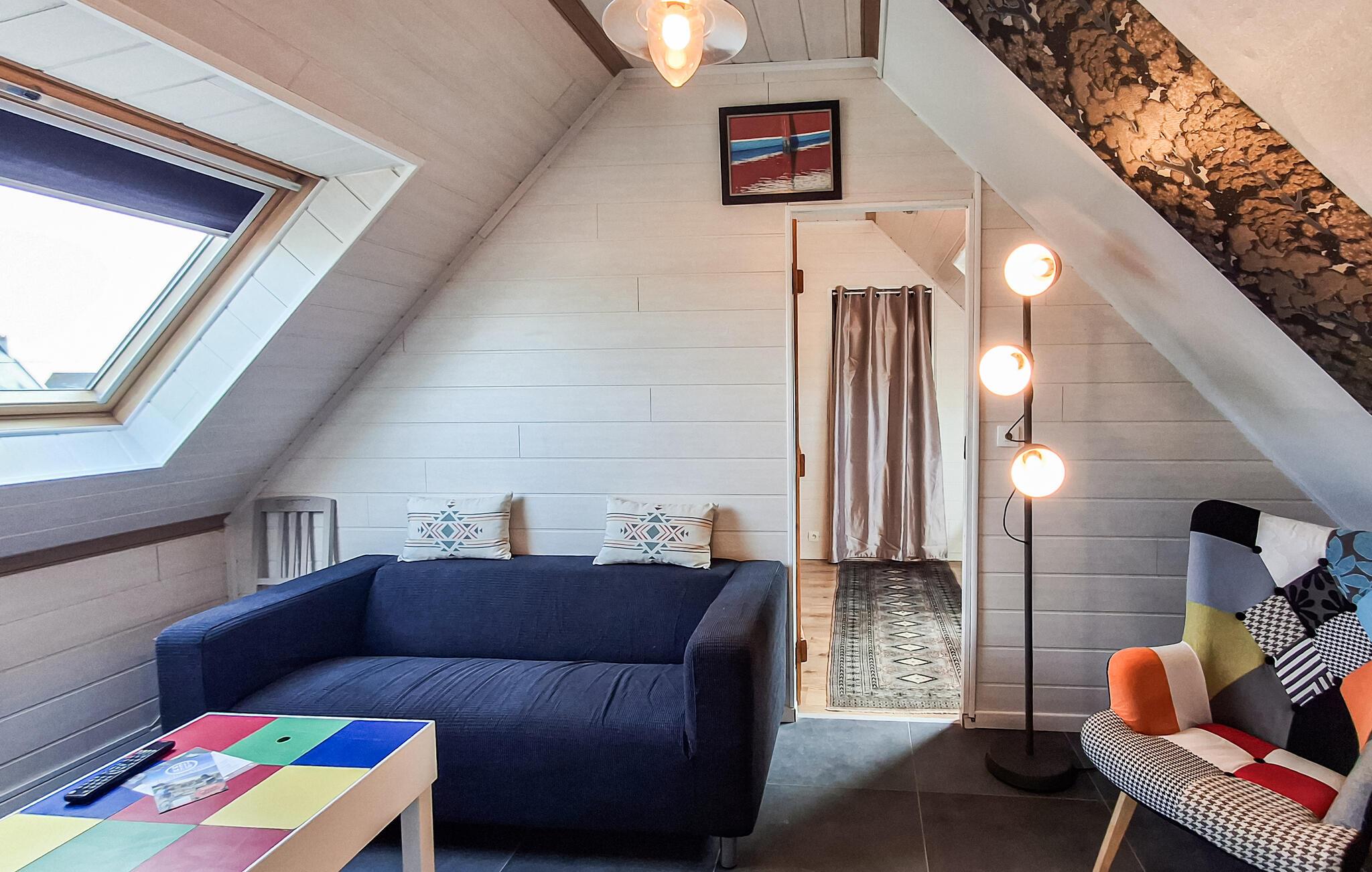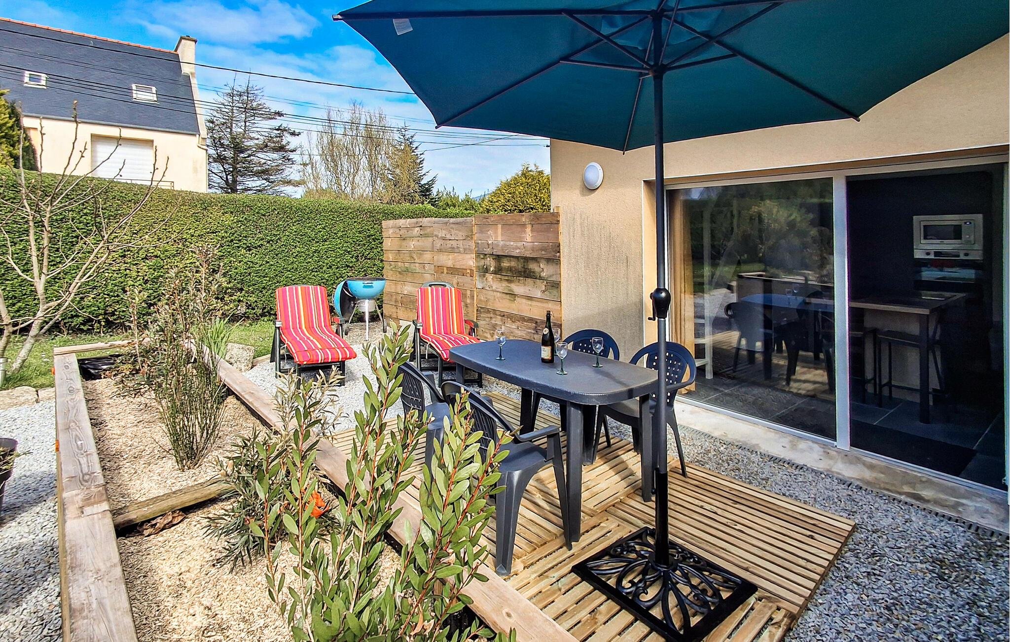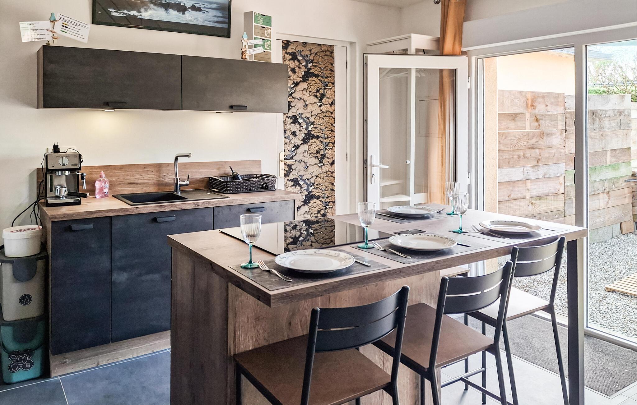 Dette smagfulde feriehus ligger kun en kort gåtur fra de smukke badeområder i Aber Benoît og lover en stille og alligevel begivenhedsrig pause med venner eller familie. Tilbered lækre retter i det moderne køkken og tag plads ved det stilfulde spisebord. Efter en lang dag kan I finde jer tilpas i den hyggelige stue og nyde et brætspil eller en god læsning.