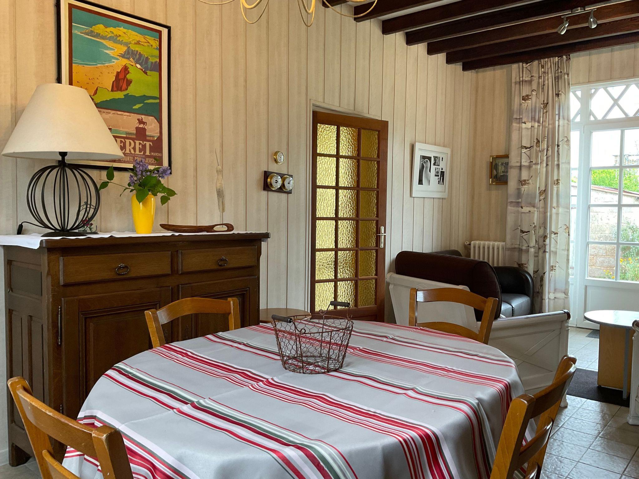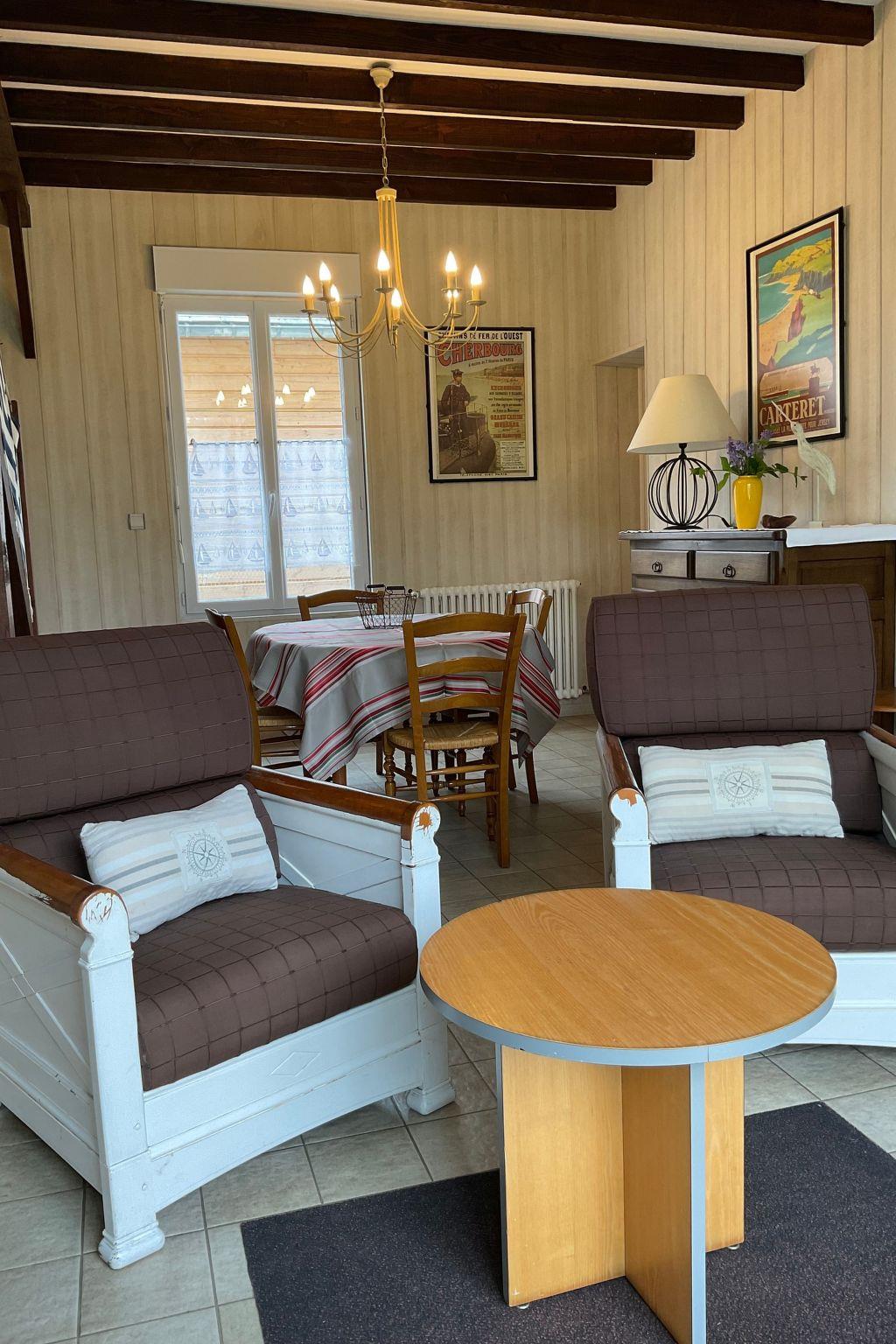 Typical 1920s seaside villa, completely detached, with enclosed garden and parking, in a private cul-de-sac 30 metres from the sandy beach. House comprising on the ground floor:Fitted kitchen, equipped with oven, 3 gas and 1 electric hob, microwave oven, dishwasher, fridge with separate freezer compartment, electric kettle and coffee maker, toaster. Dining room with large family table.Lounge with TV and two sofas.Shower room with separate WC. Washing machine.Large double bedroom with 150 cm bed, chest of drawers.Upstairs: One double bedroom with two 90cm beds, chest of drawers and wardrobe, one single bedroom with a 140cm bed and chest of drawers.Gas central heating. Free Wifi.Garden furniture with parasol. Barbecue, beach hut with toilet, sink, ironing board and iron.Environment: Restaurant 20 m away, supermarket, shops, regional market 1 km away. Bread shop nearby.Tourist attractions: Nearby: Abbaye de la Lucerne, Mont Saint Michel bay crossings on foot, links to the Channel Islands from Granville, Villedieu-les-Poêles/copper city, Avranches with its Mont Saint Michel Scriptorial Museum and its plant garden.