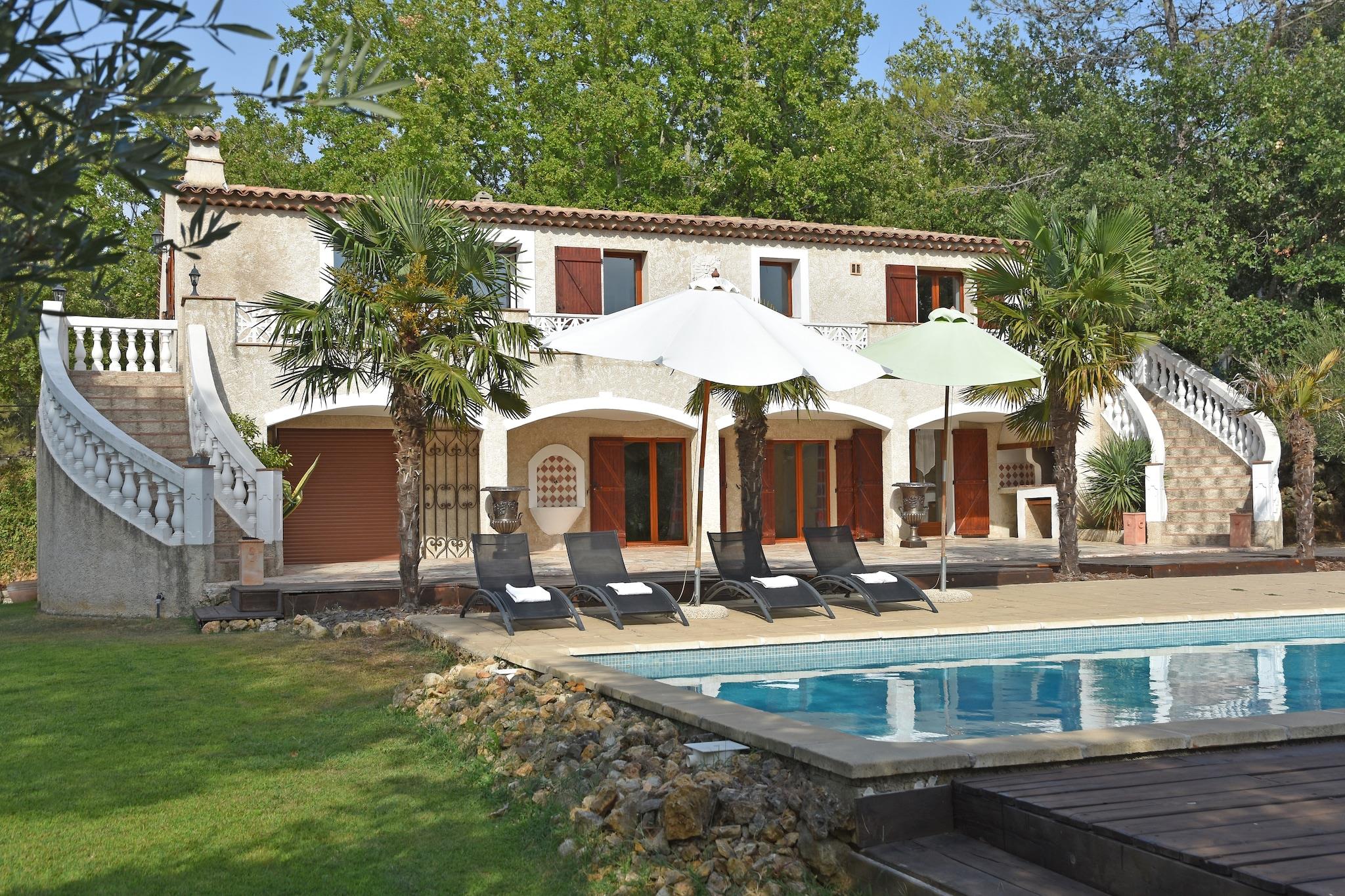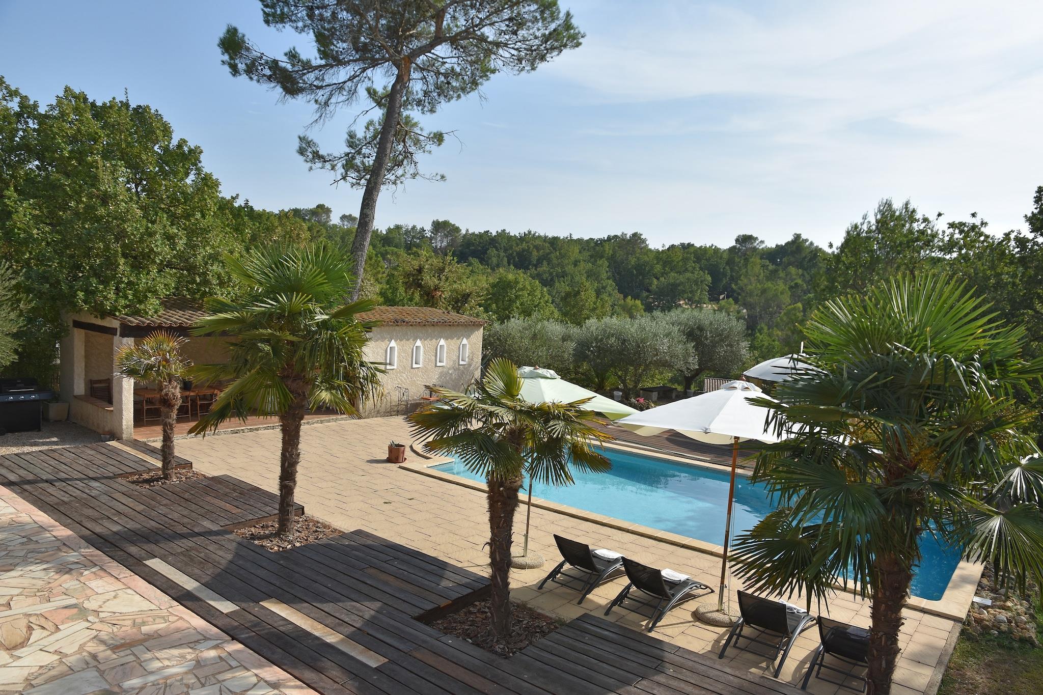 Dette 220 kvadratmeter store provencalske hus har masser af charme og ligger i Canton of Fayence, 30 km fra Cannes og Grasse og 25 km fra strandene Fréjus og Saint-Raphaël. Lidt længere ligger La Cigale de Provence, i det skovagtige hjerte af Var, i et roligt område med udsigt over skoven. Den store skovhave har en stor pool og et poolhus med udendørs køkken og spiseplads. Desuden har du en gasgrill, otte stole og havemøbler til din rådighed. På ejendommen er der parkering til rådighed for ca. fem biler. For golfelskere er dette et fantastisk feriemål. På kun 4 km finder du en af verdens mest berømte golfklubber: Four Seasons Resort \ Domaine
