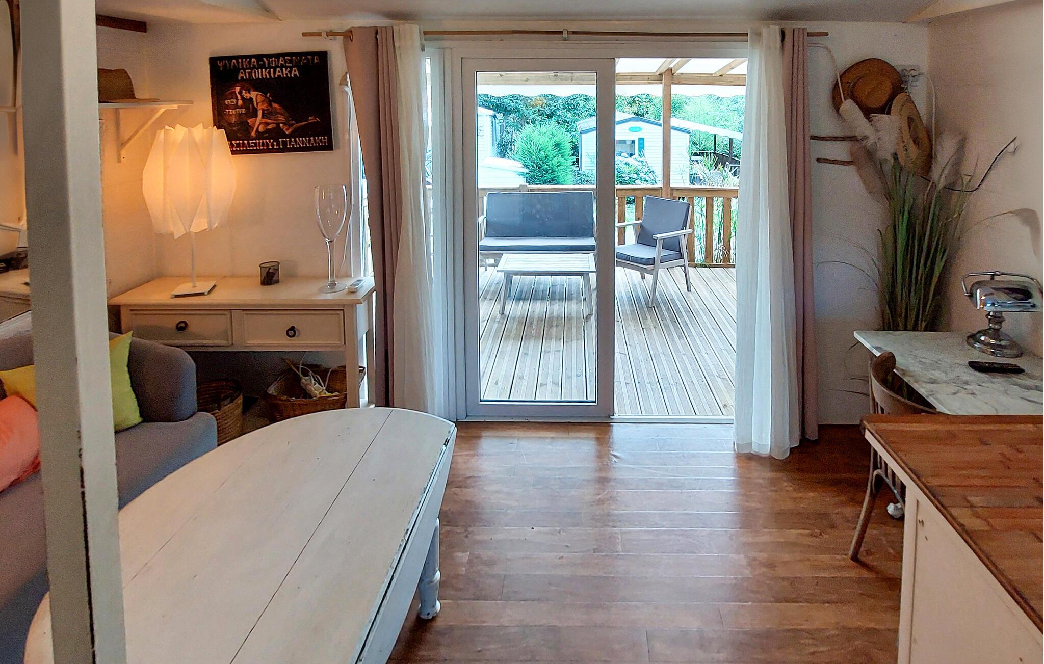 Overrask jeres familie med en oplevelsesrig ferie i dette charmerende feriehus med adgang til pool. Velkommen til dette hyggelige mobilhome, hvor I kan nyde en solrig ferie med et udvalg af fritidsaktiviteter. Fremstil jeres yndlingsretter, planlæg jeres aktiviteter over harmoniske måltider, og afrund en aktiv dag med en sjov spilleaften. Server en lækker morgenmad på jeres rummelige, sydvendte veranda. Forfrisk jer i den store pool, og lad jeres børn få nye venner på fodboldbanen eller trampolinen. Spil bordtennis, petanque eller volleyball, og server kølige drinks i skyggen af jeres lille, grønne naturgrund. Udforsk den charmerende gamle bydel i Dax, og forkæl jer selv med en dag med wellness i dens termiske bade. Cykl langs floderne Adour og Midouze, vandr gennem den idylliske naturpark Landes de Gascogne, forkæl jeres børn med sjov i forlystelsesparken Aqualand, eller udforsk de kilometervis af sandstrande langs Atlanterhavskysten på en dagstur.