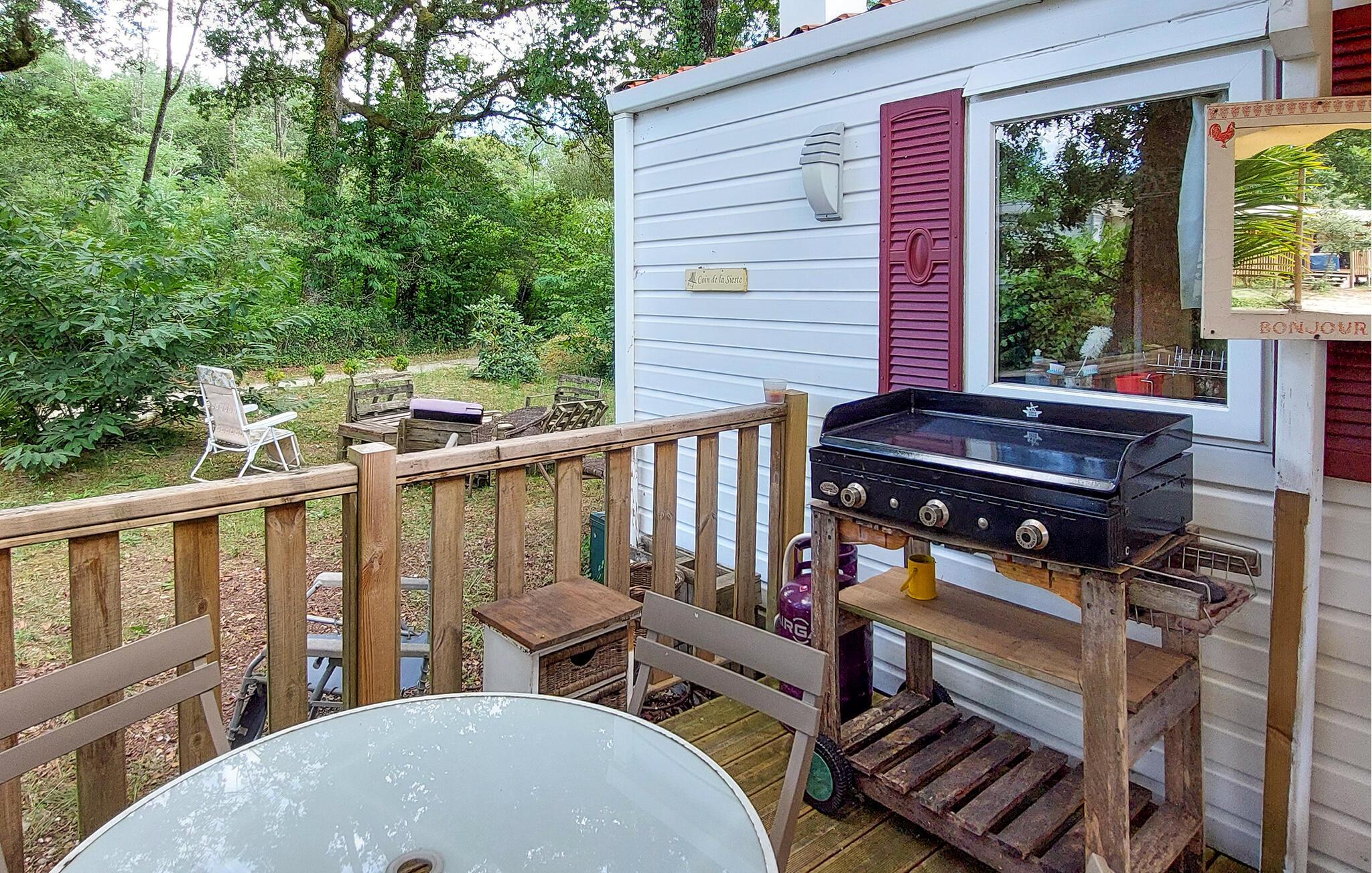 Nyd oplevelsesrige dage i dette hyggelige feriehus med adgang til pool. Velkommen til dette charmerende mobilhome, beliggende i skyggefulde, afsondrede naturlige omgivelser. Fremstil jeres yndlingsretter, planlæg jeres aktiviteter over harmoniske måltider, og afslut en aktiv dag med en sjov spilleaften. Nyd en god morgenmad på jeres rummelige veranda om morgenen og snak over et glas vin om aftenen. Benyt jer af de mange fritidsaktiviteter: Forfrisk jer i den store pool, lad jeres børn få nye venner på fodboldbanen eller trampolinen, og spil bordtennis, petanque eller volleyball. Udforsk den nærliggende kurby Dax og forkæl jer selv med en dag med wellness i dens termiske bade. Cykl langs floderne Adour og Midouze, vandr gennem den idylliske naturpark Landes de Gascogne, forkæl jeres børn med sjov i forlystelsesparken Aqualand, eller oplev de kilometerlange sandstrande langs Atlanterhavskysten på en dagstur.