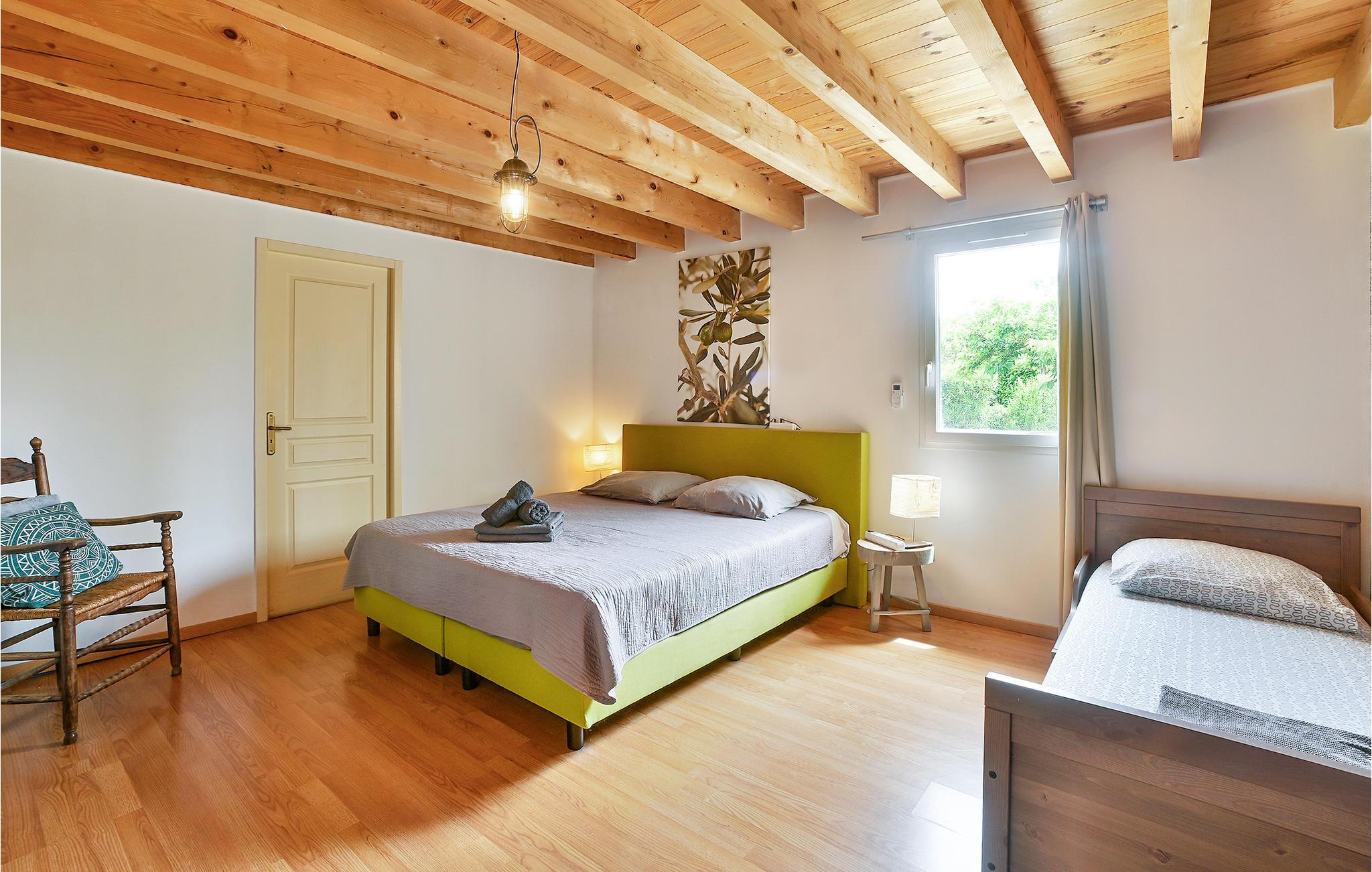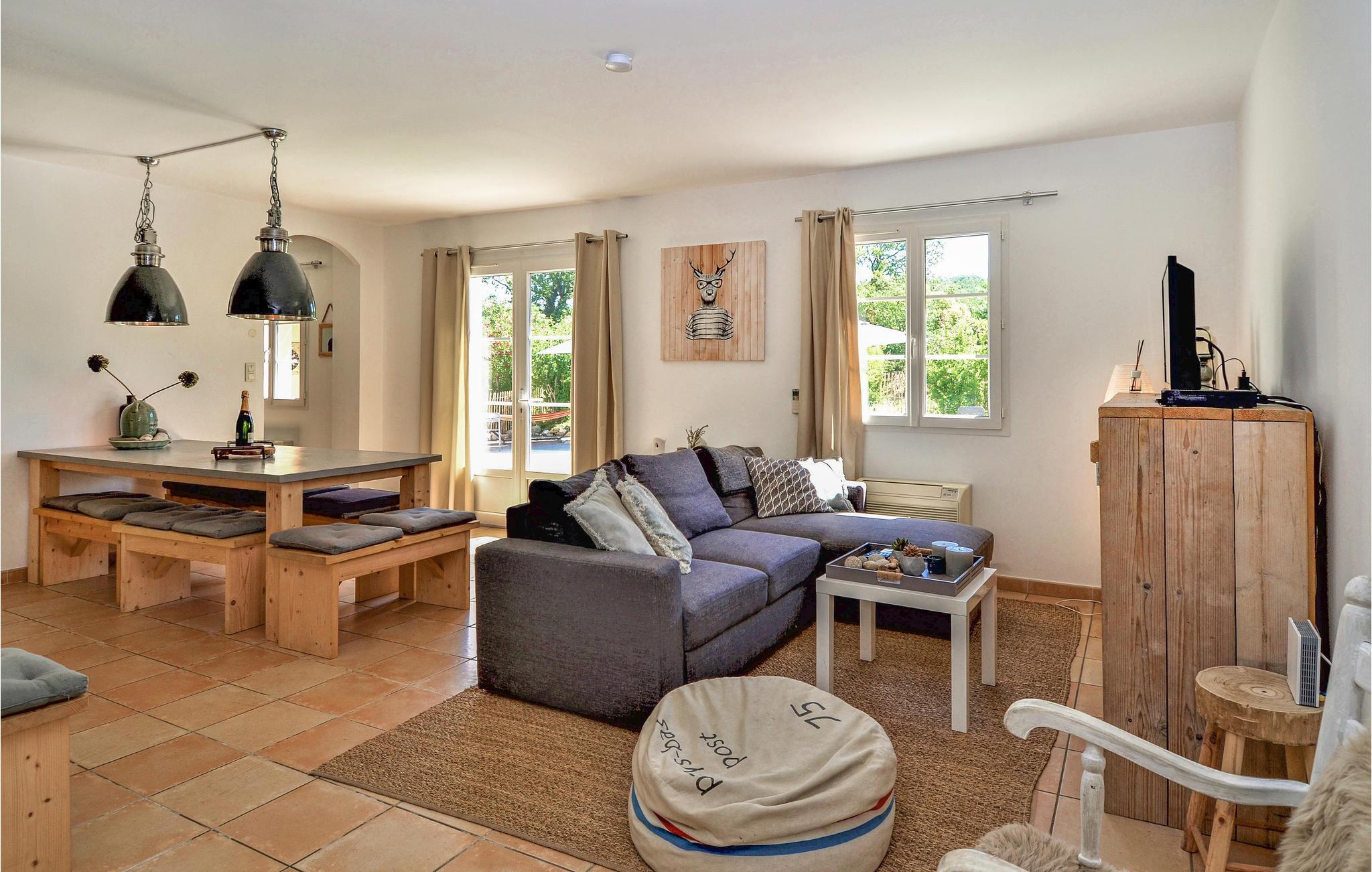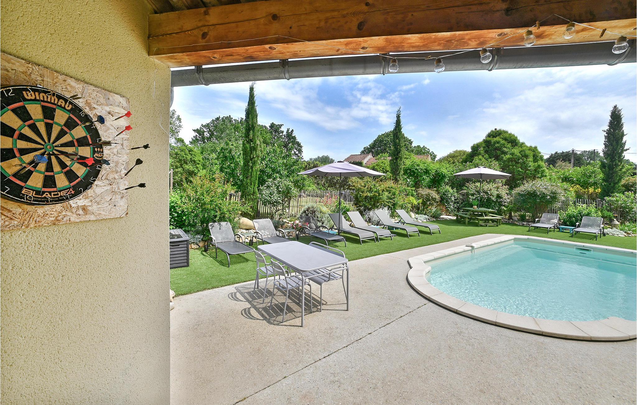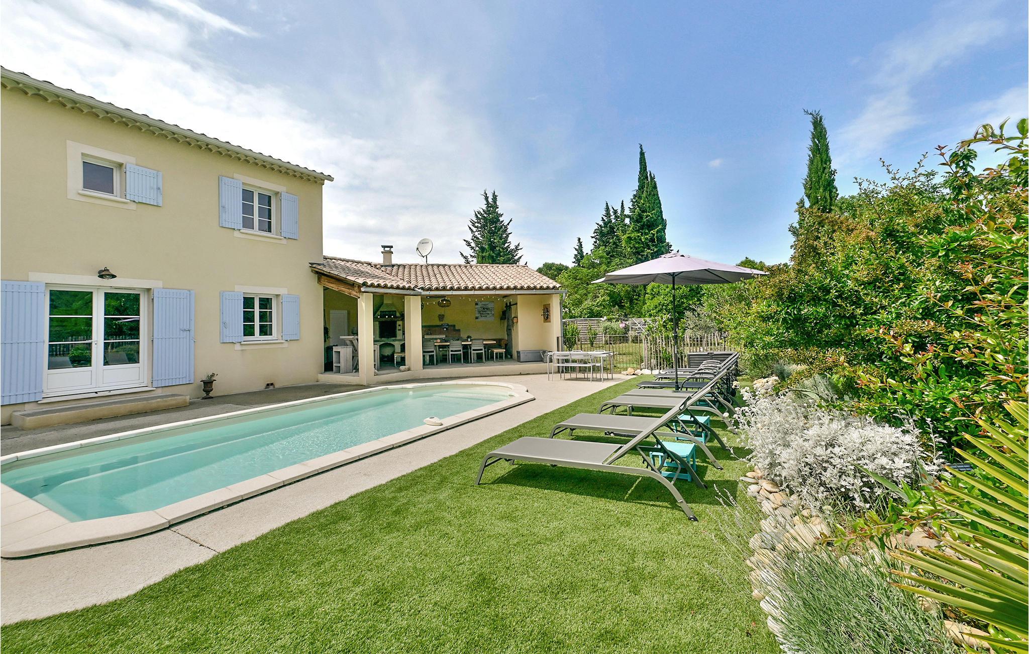 Dette smukke, moderne, sydvendte hus har en utrolig charme. Ejendommen er beliggende på landet i den smukke landsby Saint-Paulet-de-Caisson, et stenkast fra Ardèche og Vaucluse. I vil straks blive overrasket over den grønne have med spil og gynger til børnene samt det veludstyrede poolhus (grill, gaskomfur, håndvask, bruser, toilet) og den private pool. En meget komfortabel sovesofa venter på jer i stuen.