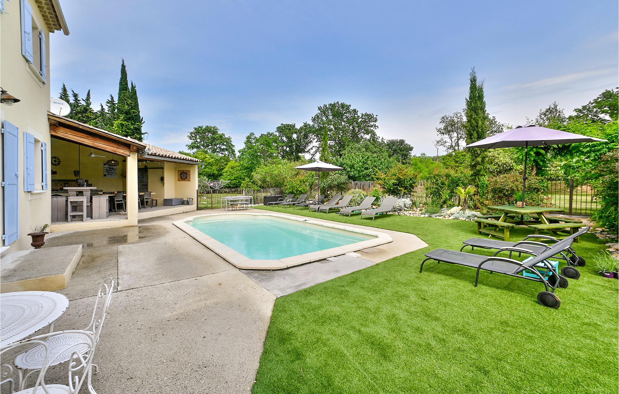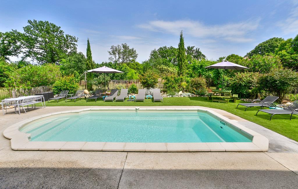 Kæmpe ferielejlighed med aircondition, privat pool og stor lukket have, ved Gard i udkanten af Provence.