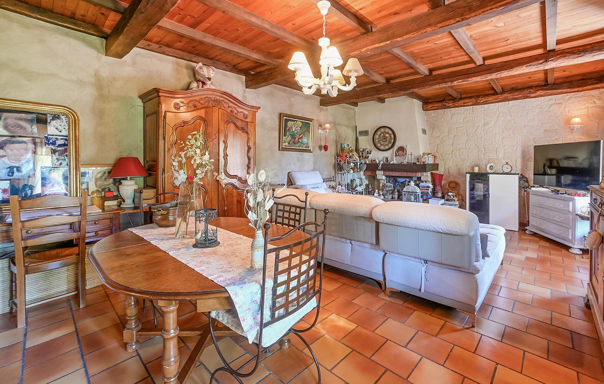 Velkommen til denne attraktive lejlighed, der ligger i absolut skønne omgivelser, og hvor I får de bedste rammer for en fantastisk ferie med familien. Lejligheden er ganske rummelig, og indretningen fremtræder rustikt og hyggeligt med gode træmøbler, tunge trælofter og fine faciliter, så I kan sænke skuldrene og slappe af med det samme, I ankommer. Efter en begivenhedsrig feriedag kan I dække op til en lækker aftensmad ved spisebordet, hive brætspillene frem eller hygge jer til langt ud på aftenen i det behagelige siddeområde.
