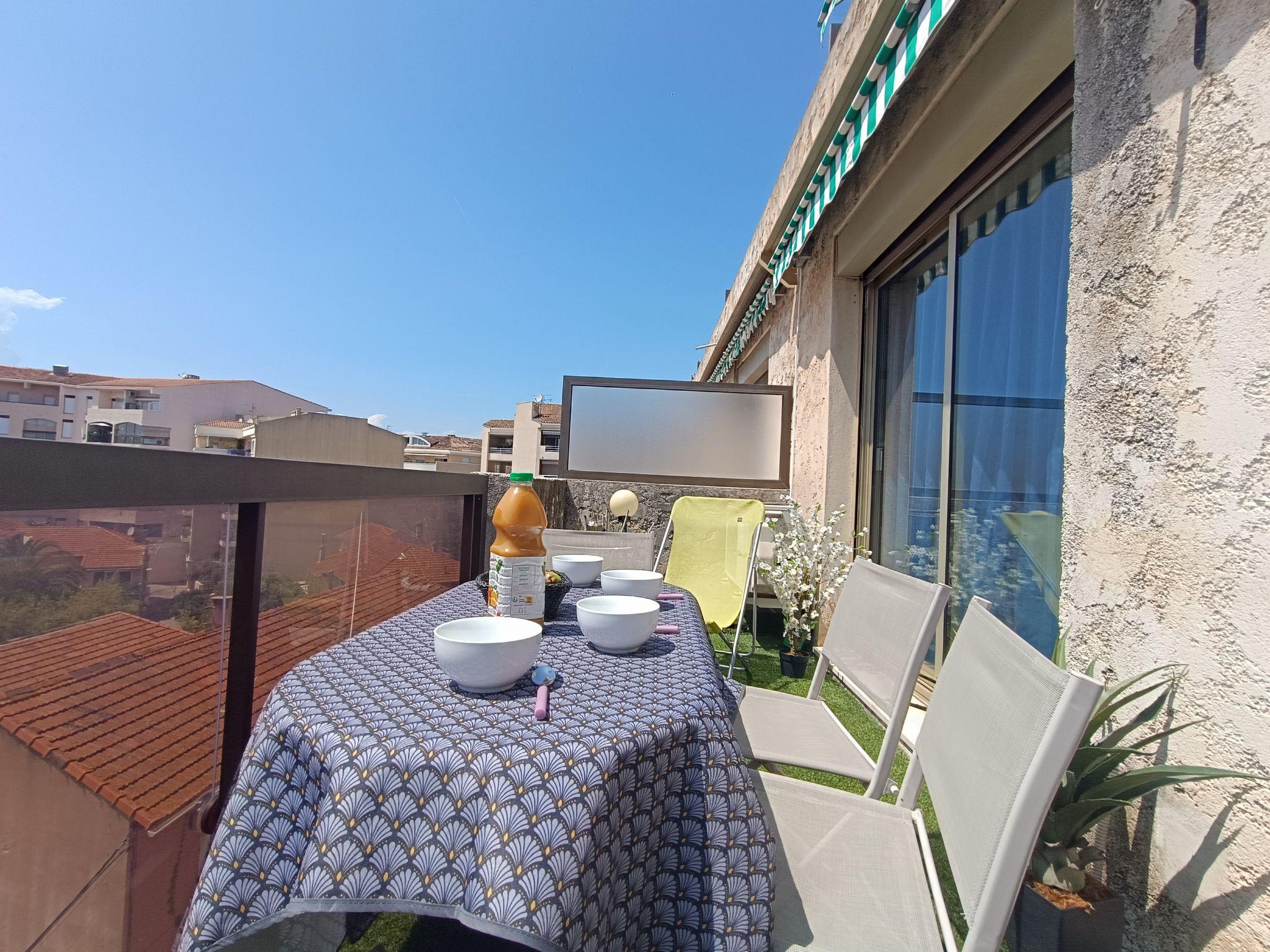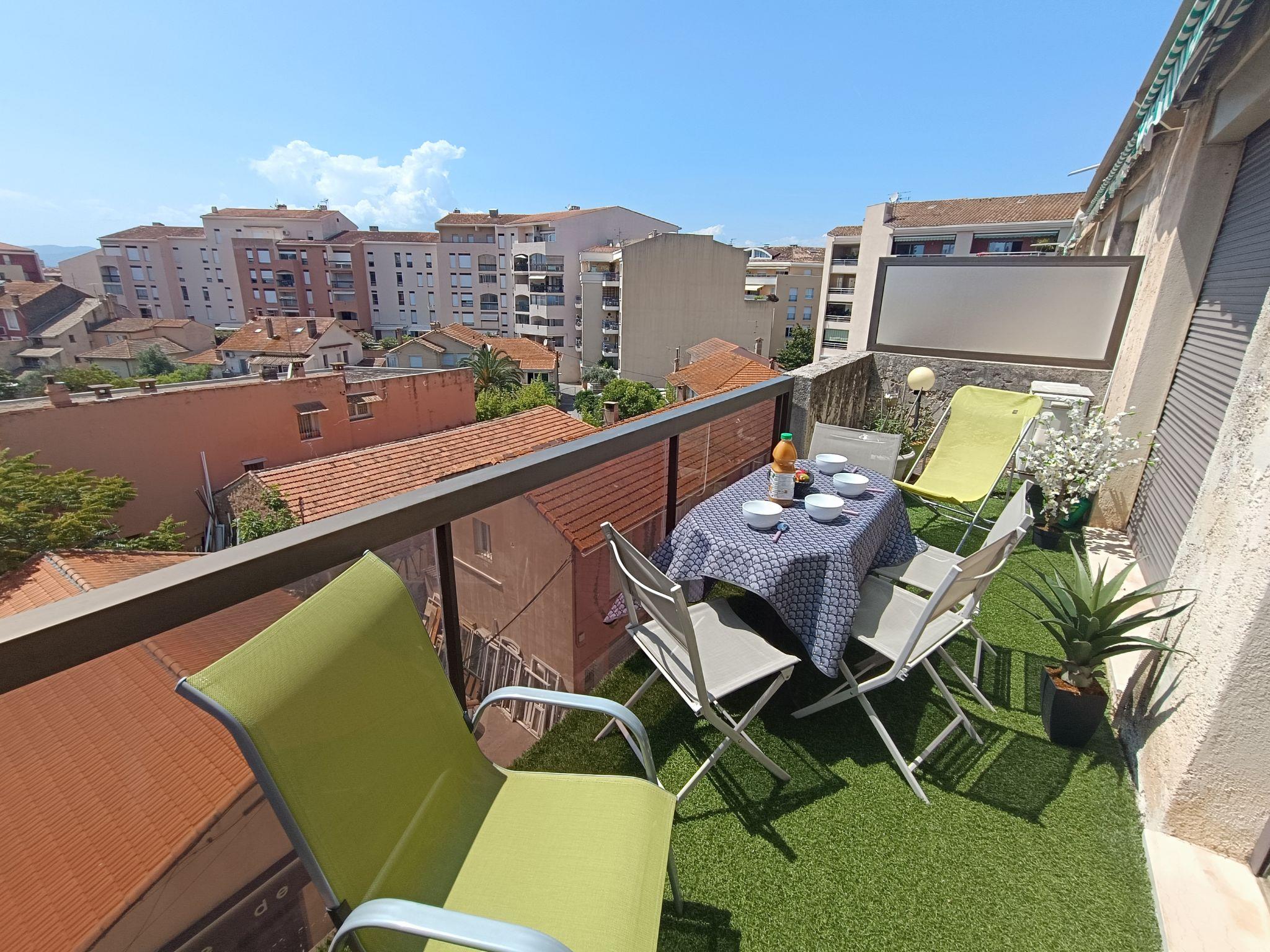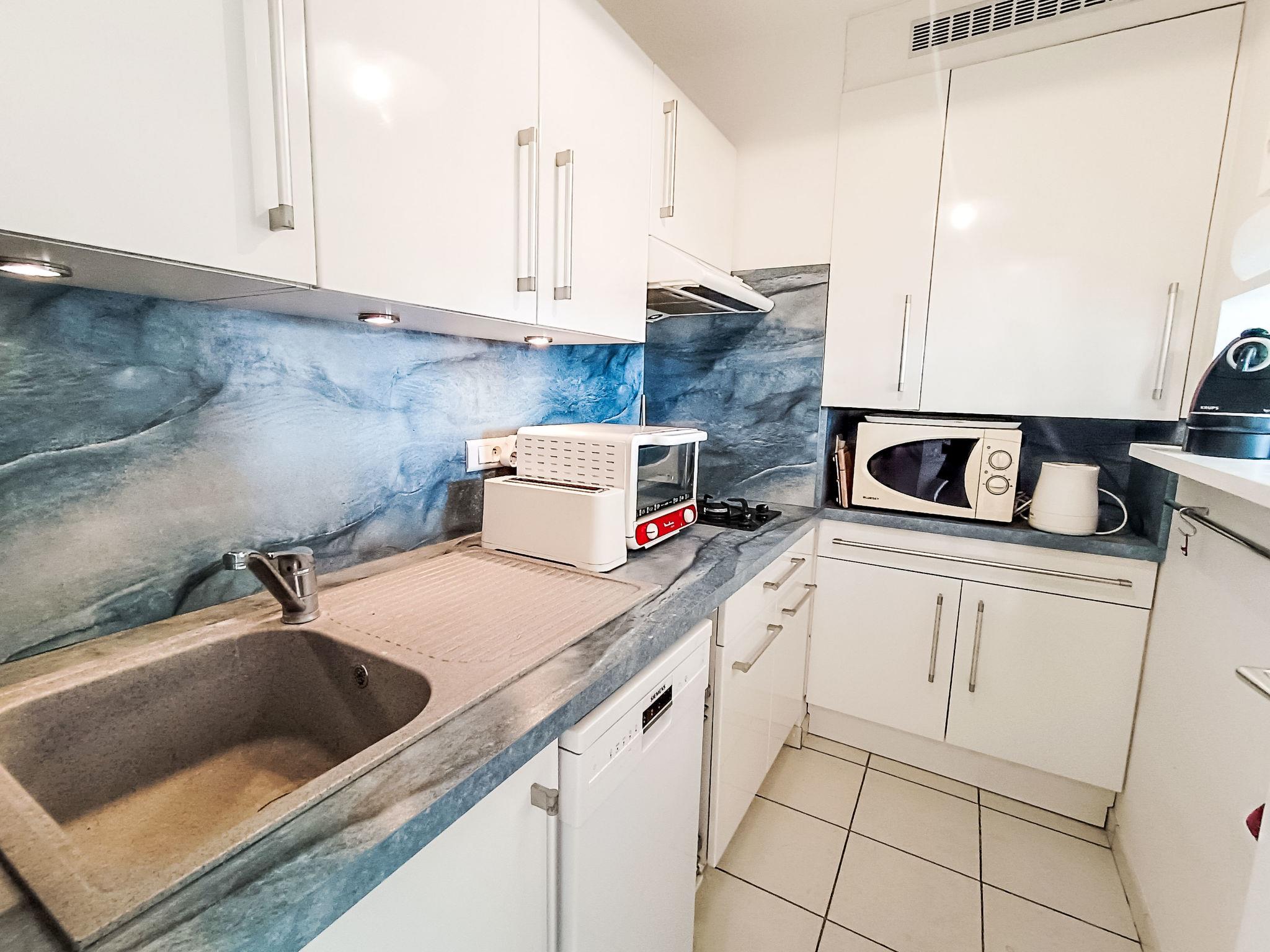 2-room apartment 33 m2 on 4th floor. Living/dining room with 1 double sofabed (140 cm, length 190 cm), TV (flat screen), electric heating and air conditioning. Exit to the terrace. 1 room with 1 french bed (1 x 140 cm, length 190 cm). Small, open kitchen (2 hot plates, dishwasher, kettle, microwave, freezer, electric coffee machine, Capsules for coffee machine (Nespresso) extra). Shower, sep. WC. Balcony 9 m2, south facing position and, east facing position. Terrace furniture. Facilities: washing machine, hair dryer. Internet (WiFi, extra). Please note: non-smokers only. Smoke alarm. Offer by a private individual according to Art. 155, IV of CGI.