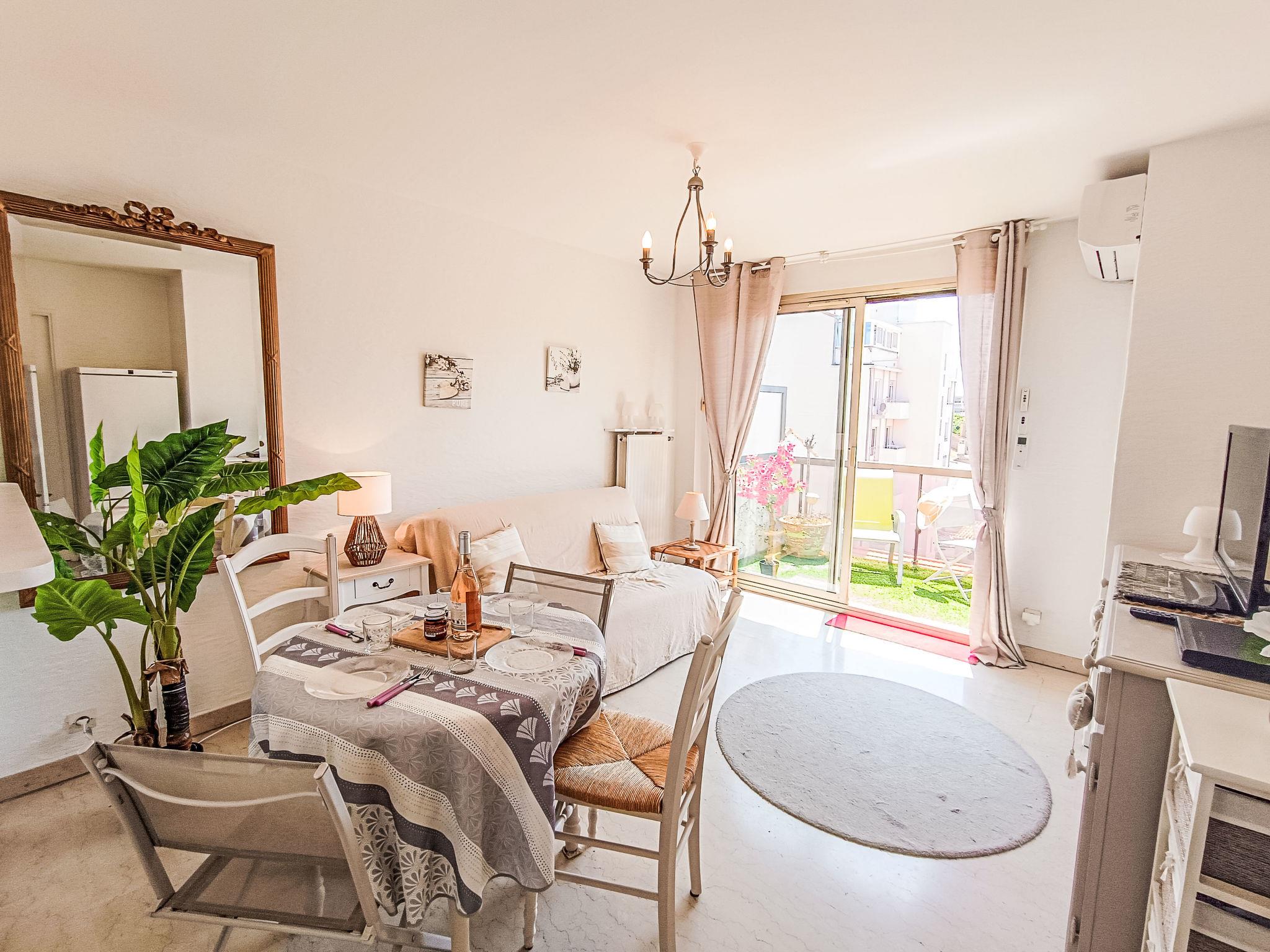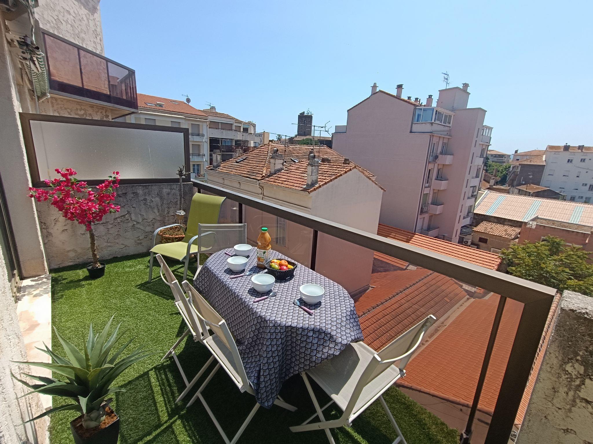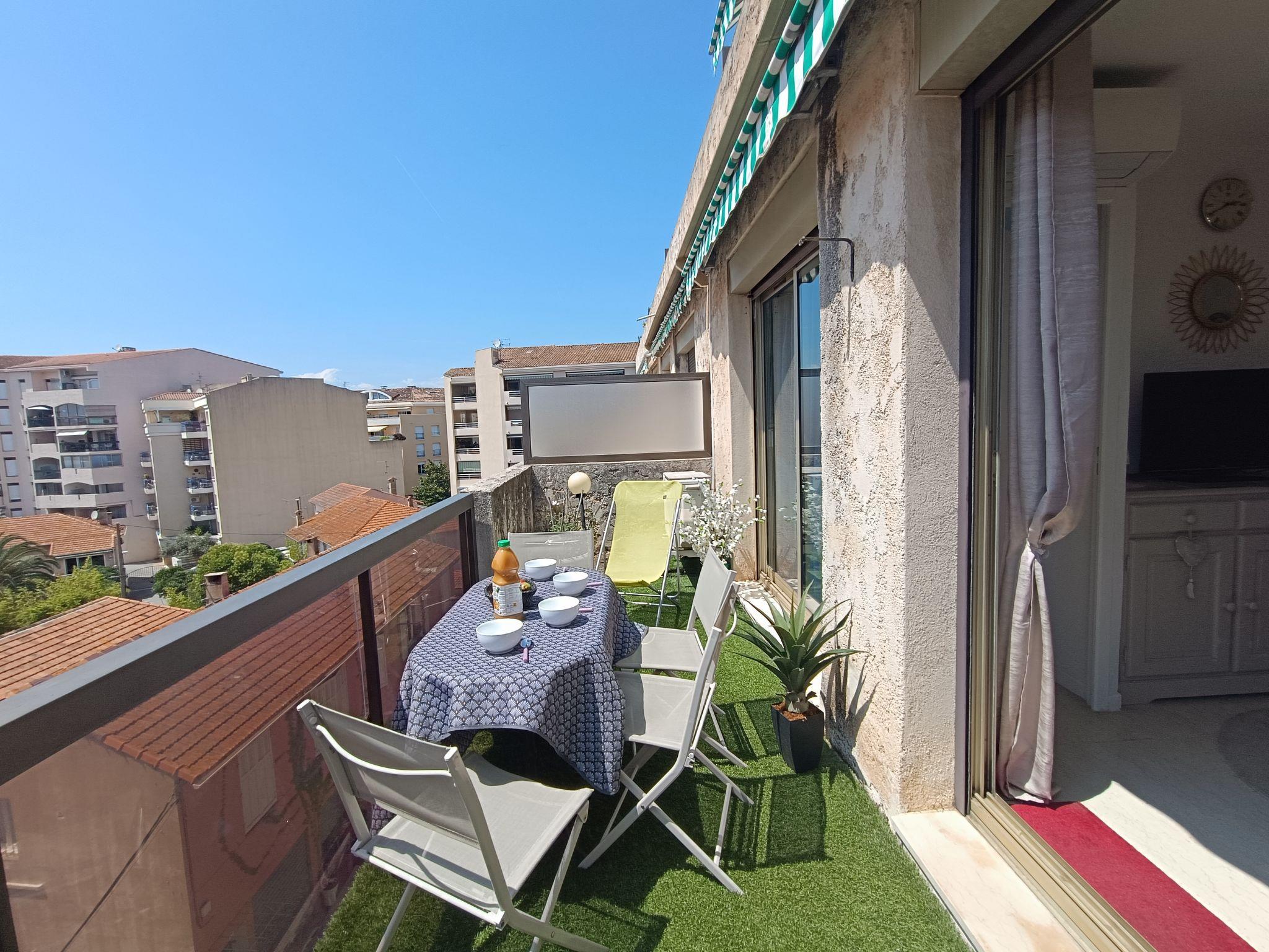 2-room apartment 33 m2 on 4th floor. Living/dining room with 1 double sofabed (140 cm, length 190 cm), TV (flat screen), electric heating and air conditioning. Exit to the terrace. 1 room with 1 french bed (1 x 140 cm, length 190 cm). Small, open kitchen (2 hot plates, dishwasher, kettle, microwave, freezer, electric coffee machine, Capsules for coffee machine (Nespresso) extra). Shower, sep. WC. Balcony 9 m2, south facing position and, east facing position. Terrace furniture. Facilities: washing machine, hair dryer. Internet (WiFi, extra). Please note: non-smokers only. Smoke alarm. Offer by a private individual according to Art. 155, IV of CGI.