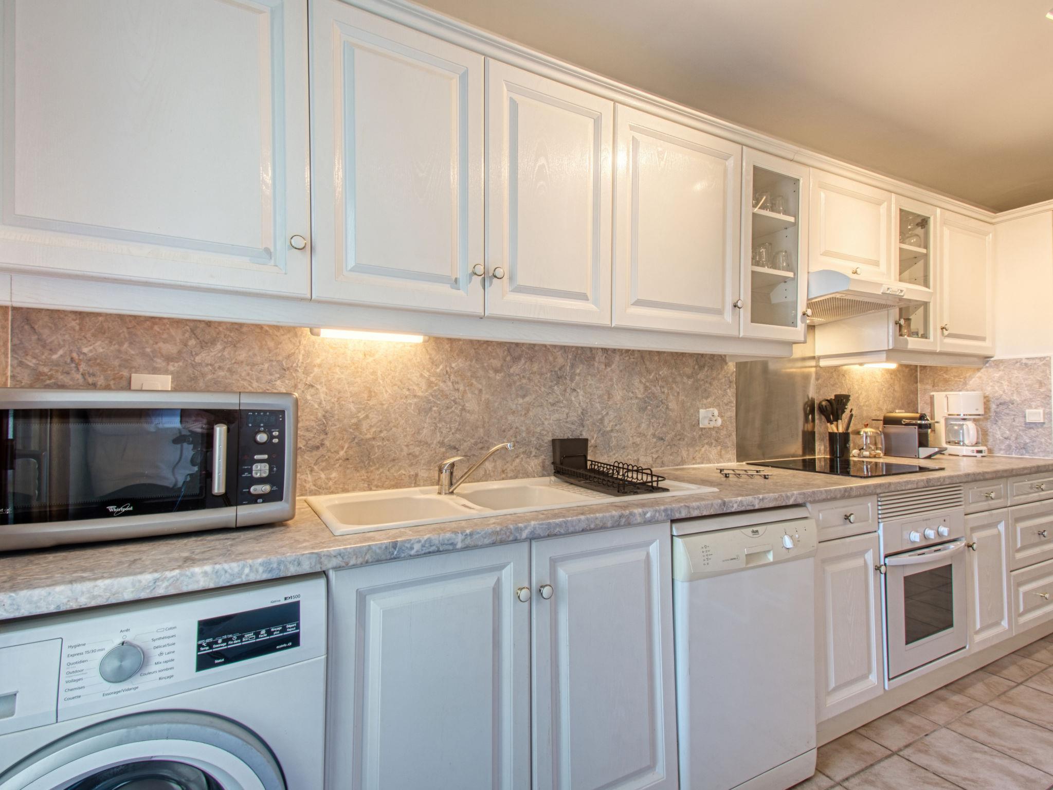 3-room apartment 75 m2 on 2nd floor. Renovated in 2023: living/dining room with 1 double sofabed (140 cm, length 195 cm), TV, flat screen and air conditioning. Exit to the balcony, south facing position. 1 room with 1 french bed (1 x 160 cm, length 200 cm), air conditioning. 1 room with 2 beds (90 cm, length 200 cm), fan. Kitchen (3 hot plates, oven, dishwasher, toaster, kettle, microwave, freezer, electric coffee machine, Capsules for coffee machine (Nespresso) extra). Shower, sep. WC. Electric heating. Balcony 6 m2, south facing position and, east facing position. Balcony furniture. View of the garden. Facilities: washing machine, iron. Internet (WiFi, extra). Parking space n 294. Please note: non-smokers only. TV only FR. Smoke alarm. Offer by a private individual according to Art. 155, IV of CGI.