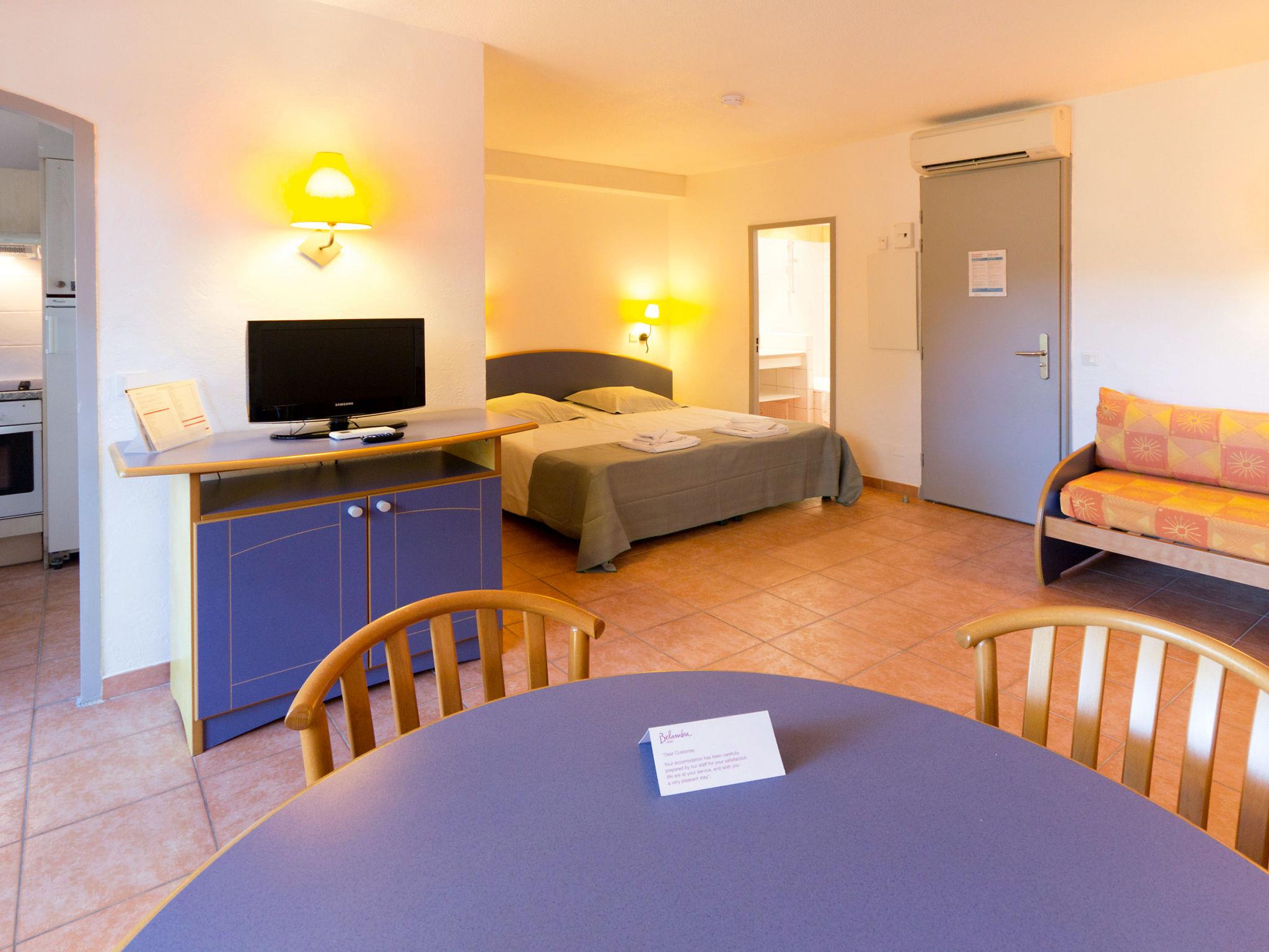 "Les Chênes Verts", 1-room apartment 30 m2. Practical furnishings: living/sleeping room with 2 beds, dining table and satellite TV. Small, open kitchen (dishwasher, 4 ceramic glass hob hotplates, microwave, freezer, electric coffee machine). Bath/WC or shower/WC. Heating, air-conditioning. Balcony or terrace. Balcony furniture. Facilities: safe. Internet (WiFi, free). Please note: non-smokers only. Maximum 1 pet/ dog allowed. Offer by a commercial proprietor according to Art. 155, IV, CGI R83054292002
