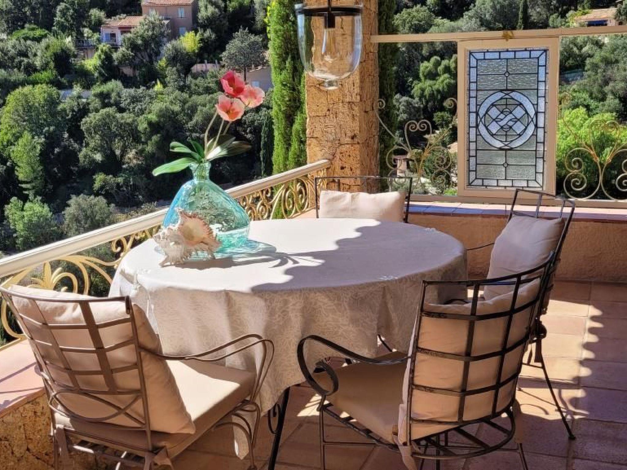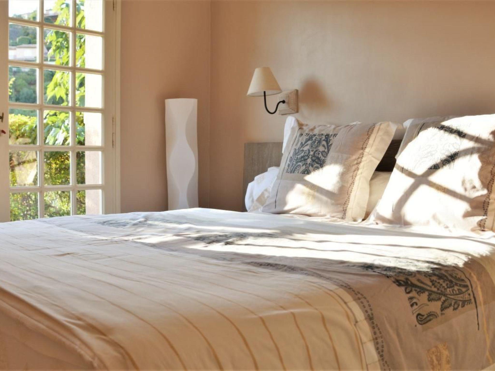 The bright villa offers a large dining room with sliding glass doors to the covered balcony with marvelous sea views. The open living room allows direct access to the upper terrace with a large table, barbecue and sun loungers invites to rest in the Mediterranean vegetation with orange and lemon trees. From here you can also listen to the concert of the cicadas with a glass of rosé in hand and forget the time passing by watching the sea and the view on St. Tropez. You will feel comfortable and safe in this wonderful place.