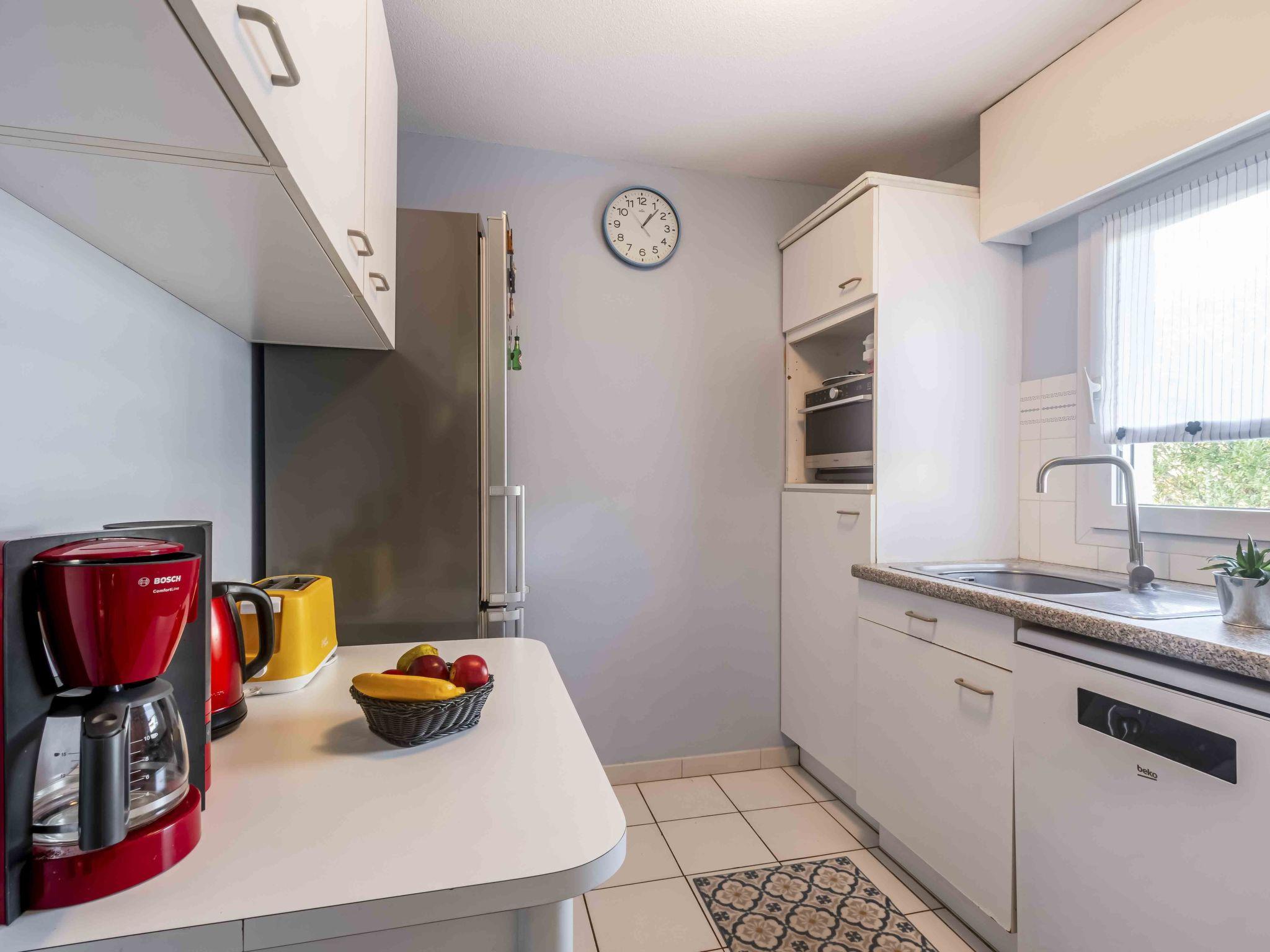 3-room apartment 70 m2 on 2nd floor. Living/dining room with TV, flat screen and air conditioning. Exit to the balcony, south facing position. 1 room with 1 french bed (1 x 160 cm, length 200 cm), TV, flat screen and air conditioning. 1 room with 2 double beds (2 x 90 cm, length 200 cm), air conditioning. Kitchen (4 hot plates, oven, dishwasher, toaster, kettle, microwave, freezer, electric coffee machine, Capsules for coffee machine (Nespresso) extra). Shower, bidet, sep. WC. Electric heating. Terrace 10 m2. Balcony furniture. View of the swimming pool. Facilities: iron. Internet (WiFi, free). Garage space n 12/13, height 205 cm, width 220 cm. Please note: non-smokers only. TV only FR. Smoke alarm. Offer by a private individual according to Art. 155, IV of CGI. XX