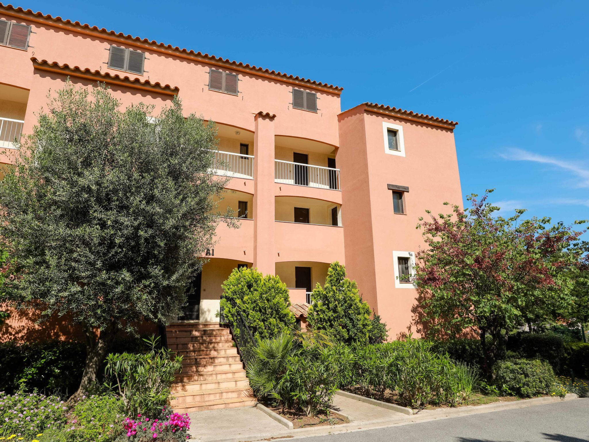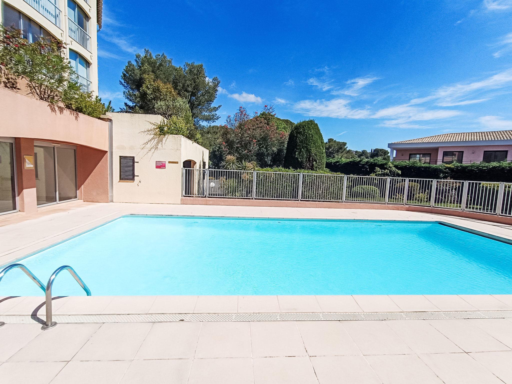St Raphael Dramont: Apartment block "Résidence Les Sangliers", 3 storeys. 600 m from the sea, 600 m from the beach. For shared use: swimming pool angular fenced (seasonal availability: 01.Jun. - 15.Sep.). Private: table tennis. Shop 200 m, grocery 150 m, supermarket 5 km, bakery 50 m, bus stop 300 m, railway station "Saint-Raphaël Valescure" 10 km, sandy beach "plage du debarquement", diving center 600 m. Sports harbour 600 m. Nearby attractions: St Tropez 45 km, Nice 75 km, Fréjus 11 km. Hiking paths: L'Estérel 6 km. Please note: car recommended. Residence with electric gates. The keys‘ handover takes place by the agency INTERHOME in Port Fréjus. Railway line closeby.