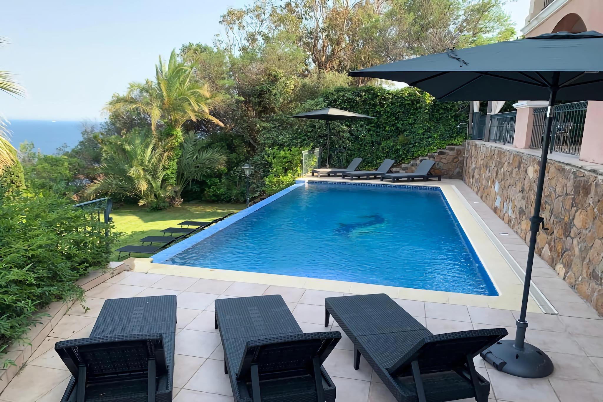 Middelhavsluksus med familiekomfort Beliggende i hjertet af den franske riviera, denne rummelige 5-værelses villa i Saint-Raphaël tilbyder en betagende panoramaudsigt over Middelhavet og de slående røde klipper i Esterel-bjergene. Perfekt til familier og inkluderer en indhegnet privat pool med et lavvandet område til børn, en høj stol og børnesenge. Det stilfulde interiør har aircondition, og opholds-/spiseområdet åbner til en solrig terrasse og have - ideel til dovne frokoster eller solnedgangsdrinks. Strand, natur og kæledyrsvenlige eventyr Kun 700 m fra Anthéors gyldne kyster kan du og dine kæledyr nyde vandreture ved havet, udendørs caféer og blide svømmeture. Udforsk Esterel-bjergenes naturskønne vandrestier eller cykl gennem fyrretræer med din hund ved din side. Med Cap Esterels golfbane 4 km væk, og bådture fra nærliggende Agay til Saint-Tropez, er eventyr aldrig langt. Villaen er også kun 300 m fra togstationen, hvilket gør dagsture til Cannes eller uden for en leg. Nyd det lokale liv og kystmad Anthéors charmerende landsbystemning kommer til live med hyggelige spisesteder og en afslappet strandbystemning. Uanset om du forkæler dig med provencalsk fisk og skaldyr, kigger på lokale markeder eller griller din egen fest på villaens gasgrill, bliver hvert måltid et minde. Kæledyr er velkomne, så tag dem med til din Riviera-flugt. Book nu for at nyde denne sjældne blanding af elegance, natur og total afslapning.