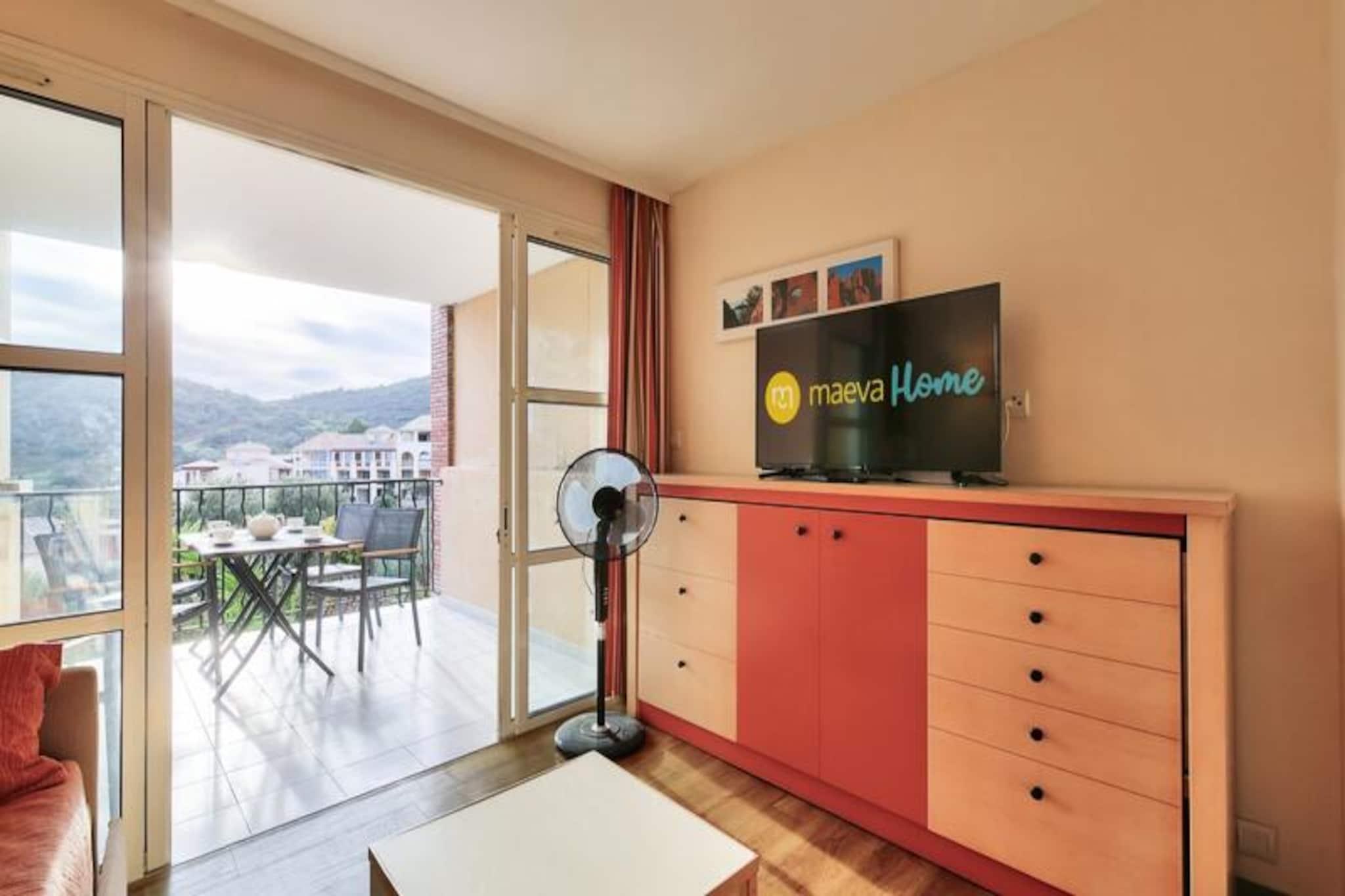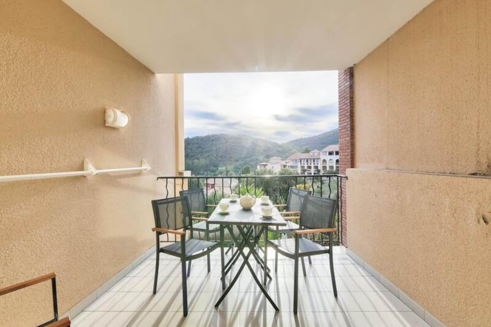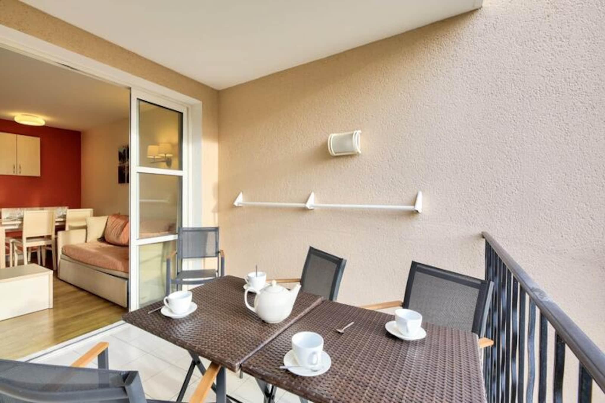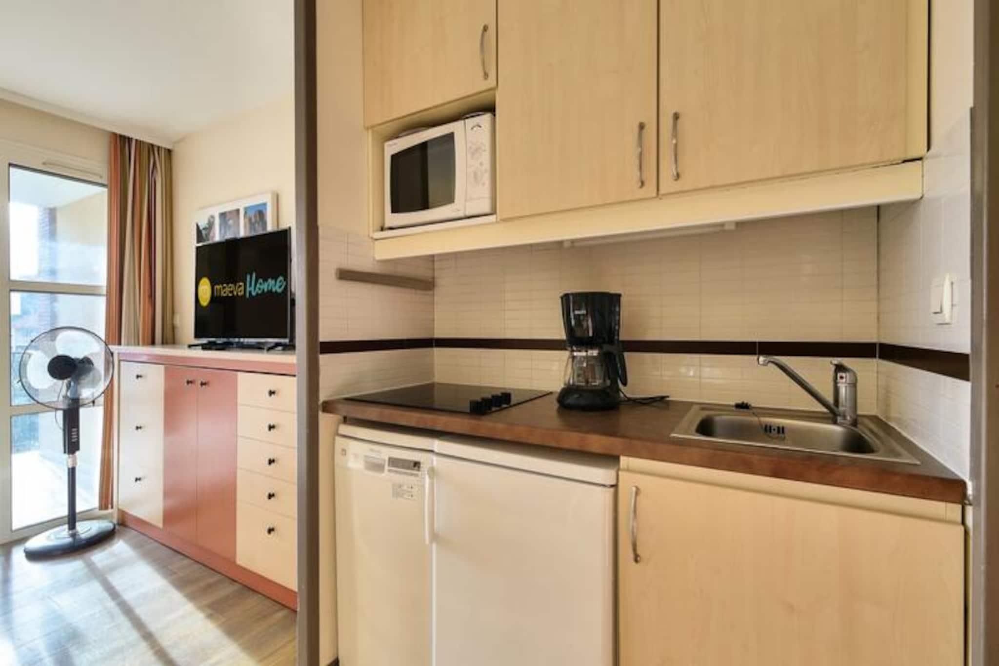 This charming 28 m² apartment accommodates up to 4 people and features a living room with a sofa bed, trundle bed, and a double bedroom. The unit is air-conditioned, pet-friendly (with additional charges), and includes a dedicated outdoor parking space. Wi-Fi access is available for an extra fee, and a mandatory cleaning service is provided at the end of your stay. Additional services, like hot tubs, are available at the Esterel Forme Center within the village for a surcharge. Located just 500 meters from the sea, this apartment is set within a lively village offering bars, shops, and restaurants. Guests can easily access nearby attractions, including the beautiful beaches of Agay Bay and Dramont Beach, just a short train ride away. For families, there is a children's club and a teen club offering age-appropriate activities, making it ideal for a family vacation. The area also boasts a rich variety of leisure activities, including water sports and hiking in the Estérel Massif. The apartment includes a fully equipped American-style kitchen with a dining table, perfect for preparing meals. The bathroom has a bathtub with an electric towel dryer, and there is a separate toilet for added convenience. Enjoy the peaceful views of the forest from the covered terrace, an ideal spot to relax after a day of exploring the village or the surrounding region.