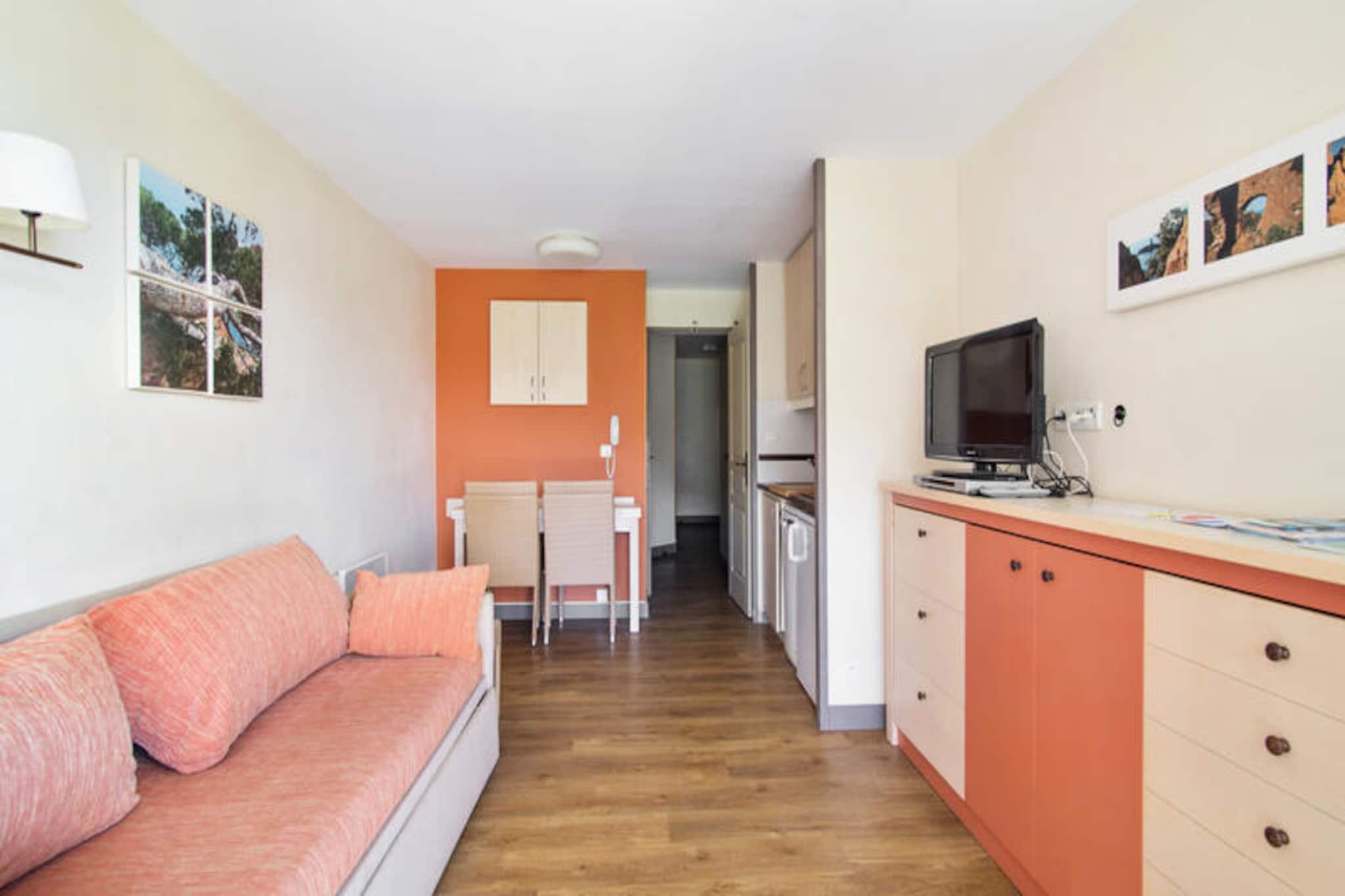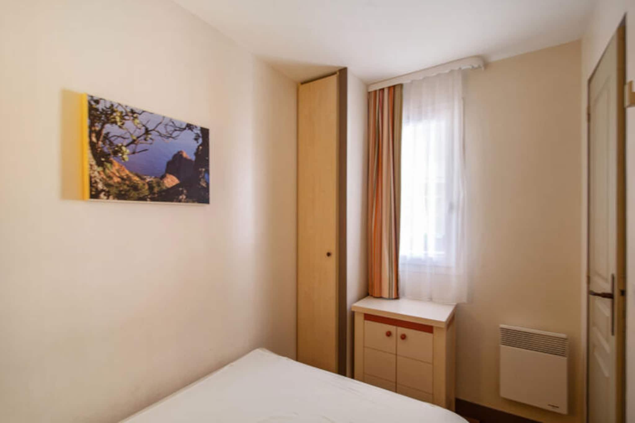 Denne lejlighed på 28 m² tilbyder komfortabel indkvartering med en stue med en sovesofa, en udtræksseng og en sammenklappelig seng, egnet til op til 5 gæster. Soveværelset har en dobbeltseng, og lejligheden er kæledyrsvenlig, hvilket giver et fredeligt tilflugtssted. Nyd den møblerede overdækkede terrasse med udsigt over havet og golfbanen, og drag fordel af moderne faciliteter såsom pengeskab, tv, dvd-afspiller og reserveret parkeringsplads. Denne lejlighed ligger 1 km fra Agay-bugten og Dramont-stranden og er ideelt beliggende for strandgæster. Området byder på en række nærliggende attraktioner, herunder caféer, butikker og lokale markeder. Boligen tilbyder også en børneklub og en teenageklub med adskillige aktiviteter til rådighed. The Little Train, der kører fra 08.04 til 30.09, tilbyder nem adgang til strandene, hvilket gør dit ophold mere bekvemt. Lejligheden har et veludstyret køkkenområde, åbent til stuen, ideel til at tilberede måltider. Badeværelset har badekar og toilet, hvilket sikrer komfort og bekvemmelighed. Yderligere funktioner inkluderer opbevaringsplads med mulighed for slutrengøring, og boligen har ladestationer til elbiler, hvilket gør det til et godt valg for gæster med sådanne behov.