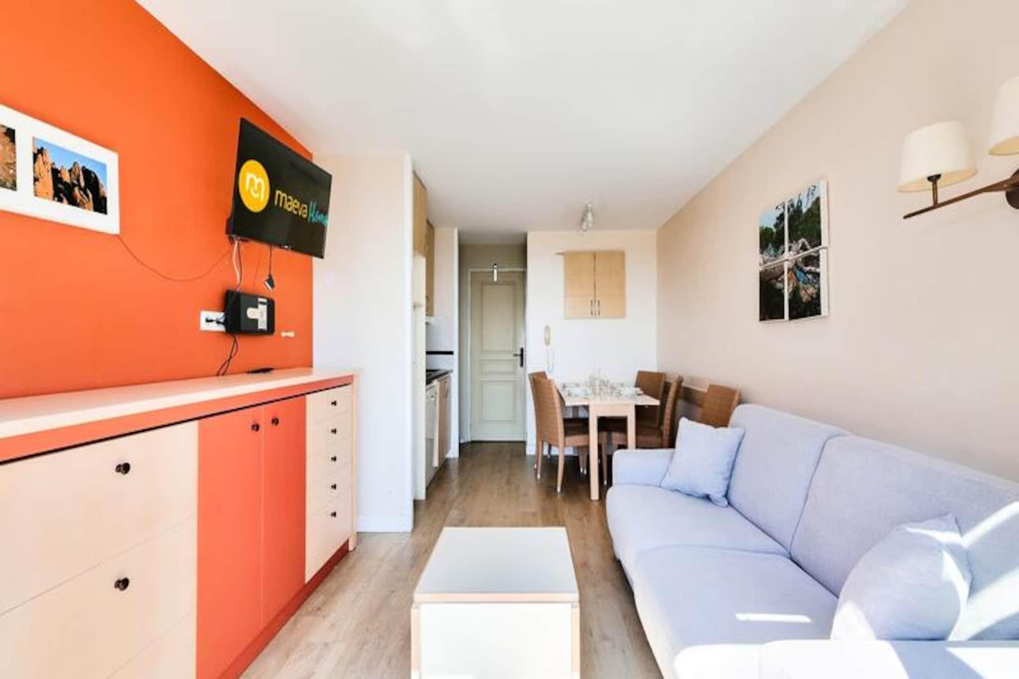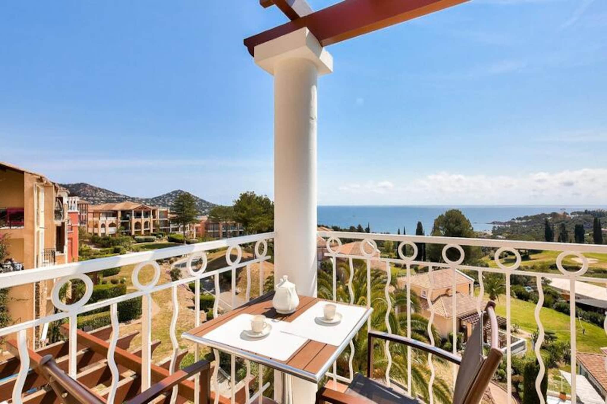 Denne 38 m² duplex-lejlighed tilbyder et komfortabelt ophold med en stue med en sovesofa med en udtræksseng til 2 personer og et kabineområde med 2 enkeltkøjesenge. Lejligheden indeholder også et separat soveværelse med dobbeltseng. For ekstra bekvemmelighed er der 2 badeværelser, et med bruser og toilet, og et andet med badekar og toilet. Lejligheden er kæledyrsvenlig efter forespørgsel og er udstyret med moderne bekvemmeligheder såsom Wi-Fi, fjernsyn, opvaskemaskine, Senseo kaffemaskine og babyudstyr, herunder en rejseseng, høj stol, klapvogn og pusleunderlag. Lejligheden ligger 1 km fra den smukke Agay-bugt og Dramont-stranden og giver nem adgang til nærliggende attraktioner, butikker, caféer og restauranter. Gæsterne kan også nyde tjenesten Lille tog, der forbinder ejendommen med stranden, og tilbyder en sjov og bekvem måde at udforske området på. Uanset om du slapper af på stranden eller nyder landsbyatmosfæren, sikrer beliggenheden et mindeværdigt ophold. Lejligheden har et fuldt udstyret køkkenområde åbent til stuen, så gæsterne kan tilberede deres egne måltider. En hjørneterrasse med havudsigt og en ekstra terrasse ved siden af ??soveværelset giver rigelig plads til udendørs afslapning. Lejligheden inkluderer også en privat parkeringsplads i landsbyen, hvilket tilføjer ekstra bekvemmelighed for gæster med et køretøj.