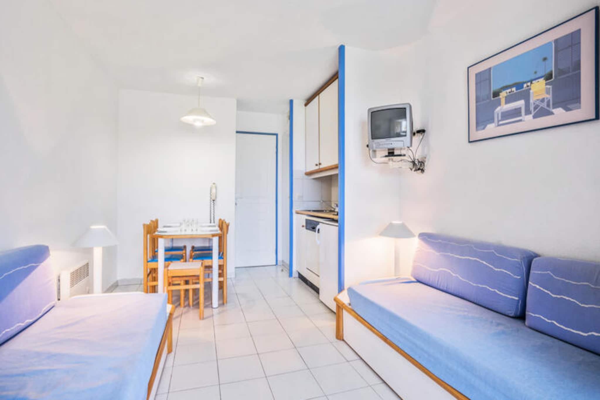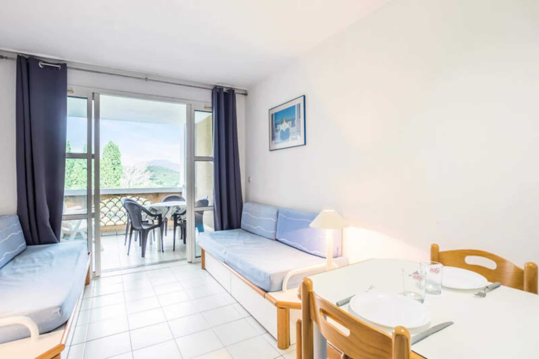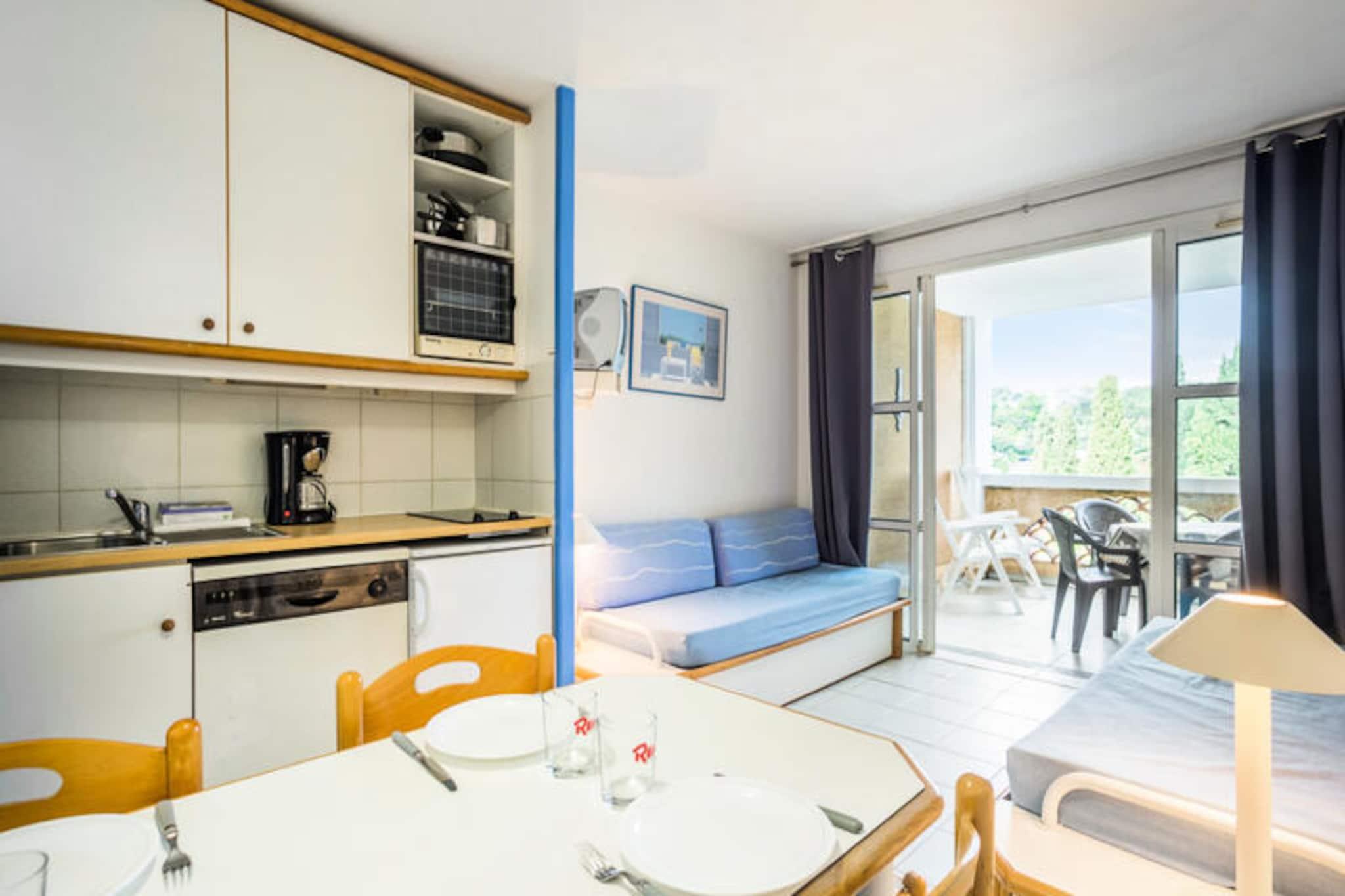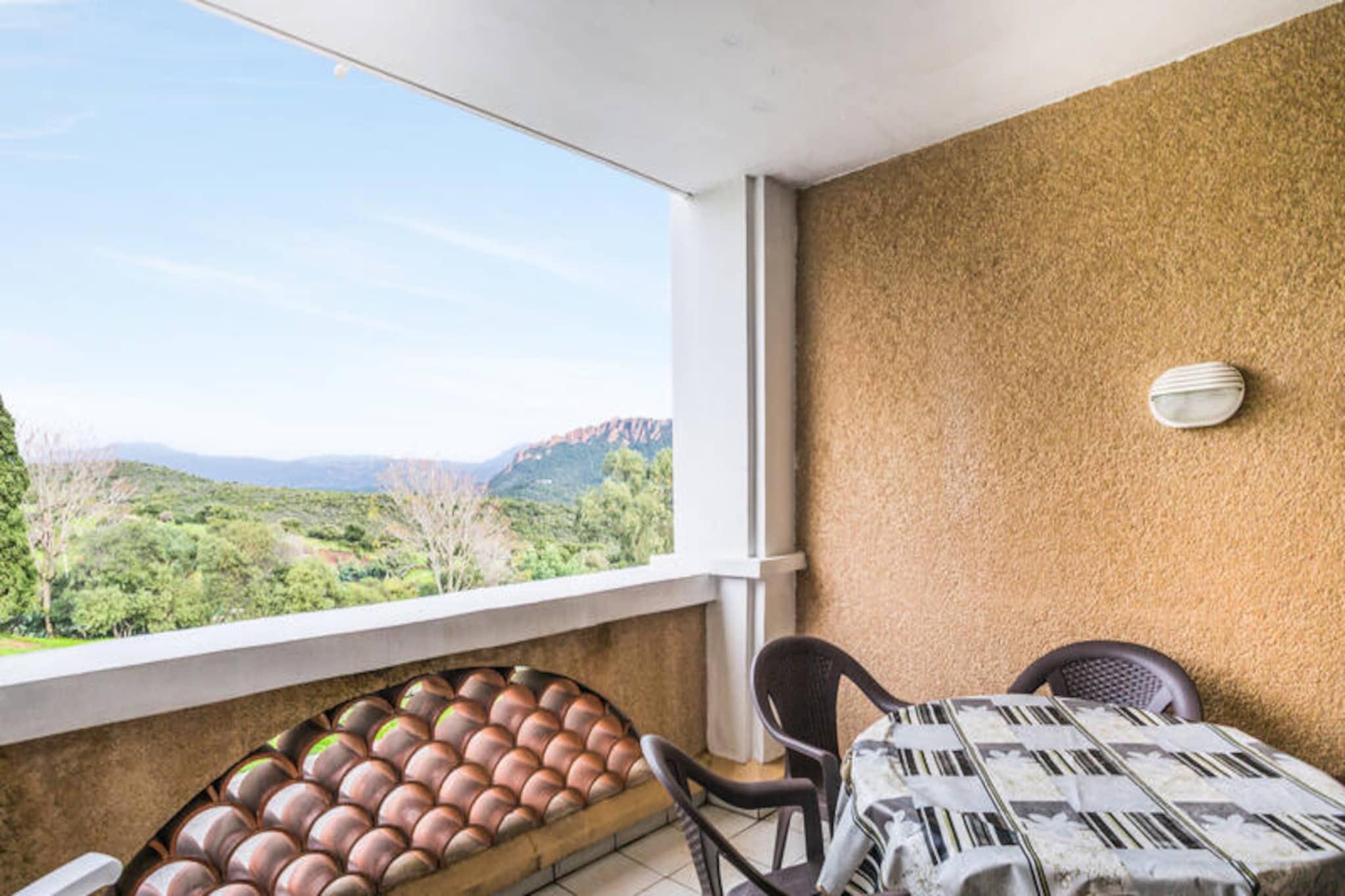 Denne hyggelige ferielejlighed på 23 m² tilbyder et komfortabelt og praktisk opholdsrum til et budgetvenligt ophold. Det har en stue med to sovesofaer (en med to senge og den anden med en), og et kabineområde med to enkeltkøjesenge. Lejligheden har også pengeskab, tv og adgang til fælles swimmingpool. Kæledyr er tilladt efter forudgående forespørgsel, og boligen er sikker og velholdt, hvilket gør den til en perfekt mulighed for familier eller små grupper. Ejendommen ligger kun 1 km fra stranden, med nem adgang via det lille tog, der kører sæsonmæssigt, og forbinder gæsterne til Agay Bay og Dramont Beach. I nærheden finder du forskellige caféer, butikker og markeder inden for gåafstand, som tilbyder alt det nødvendige for et afslappende ophold. Derudover er der aktiviteter for alle aldre, herunder en børneklub og teenageraktiviteter, der giver underholdning hele dagen. Inde i lejligheden vil gæsterne finde et fuldt udstyret køkkenområde, der åbner ind i stuen, sammen med et spisebord og fem stole. Badeværelset har badekar og toilet, hvilket giver et behageligt sted at slappe af. Lejligheden har også en privat terrasse med udsigt over bjergene, udstyret med et bord, fem stole og en liggestol til at nyde udendørs.