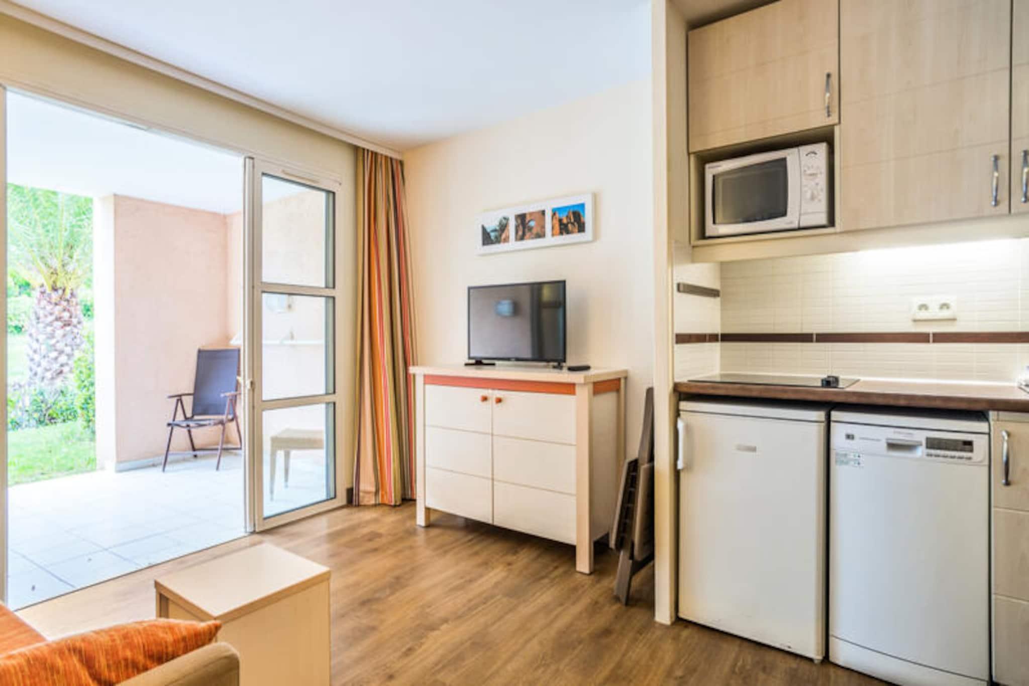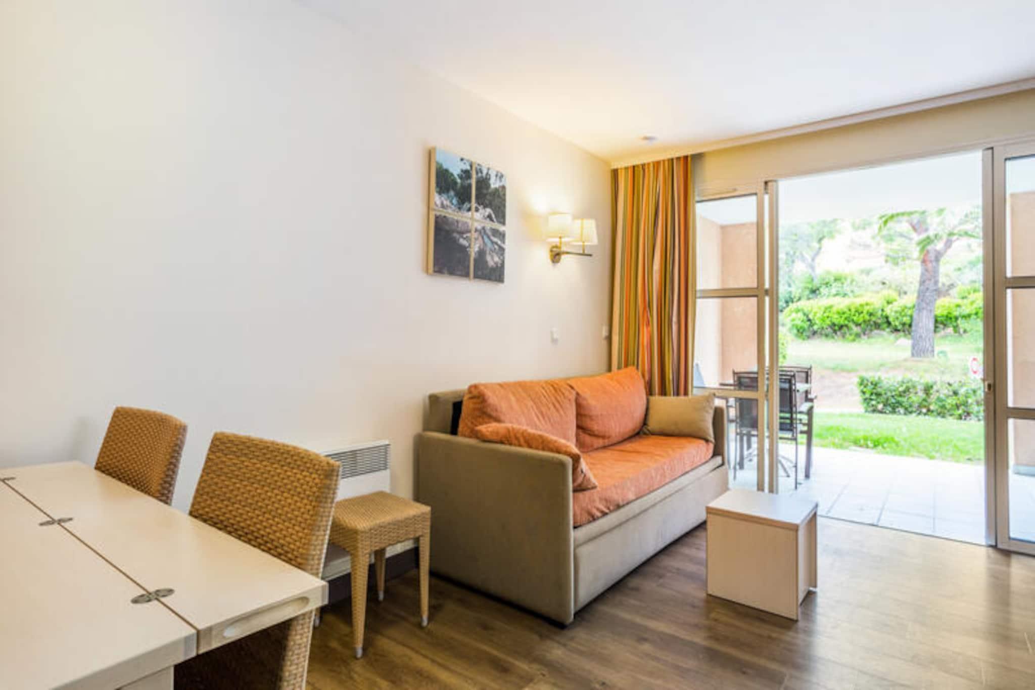 Denne charmerende 25m² store ferielejlighed, beliggende i haveplan, tilbyder et behageligt ophold med en sovesofa i stuen med plads til to og et hyggeligt kabineområde med en dobbeltseng. Ejendommen er kæledyrsvenlig og tillader kæledyr mod et ekstra gebyr. For ekstra bekvemmelighed er Wi-Fi tilgængelig mod et tillæg, og der tilbydes parkering. Lejligheden er ideel til par eller små familier på udkig efter en afslappet ferie. Denne ferielejlighed ligger kun 1 km fra den nærmeste strand og tilbyder nem adgang til lokale caféer, restauranter og butikker. Landsbyen er designet som en lille by med grønne områder og barer til afslappede udflugter. Derudover giver Little Train-tjenesten en hurtig tur til den nærliggende Agay Bay og Dramont-stranden, hvilket gør den perfekt til strandelskere. Familier vil også nyde børne- og teenageklubberne, der tilbyder temaaktiviteter som hemmelig agent og cirkustræning. Lejligheden indeholder køkken og stue i åbent plan med bord og stole til spisning. Badeværelset er udstyret med badekar og toilet. For dem, der ønsker at slappe af, er der spabade tilgængelige på Esterel Forme Centre i landsbyen mod et ekstra gebyr. En terrasse tilføjer udendørs plads, perfekt til afslapning.