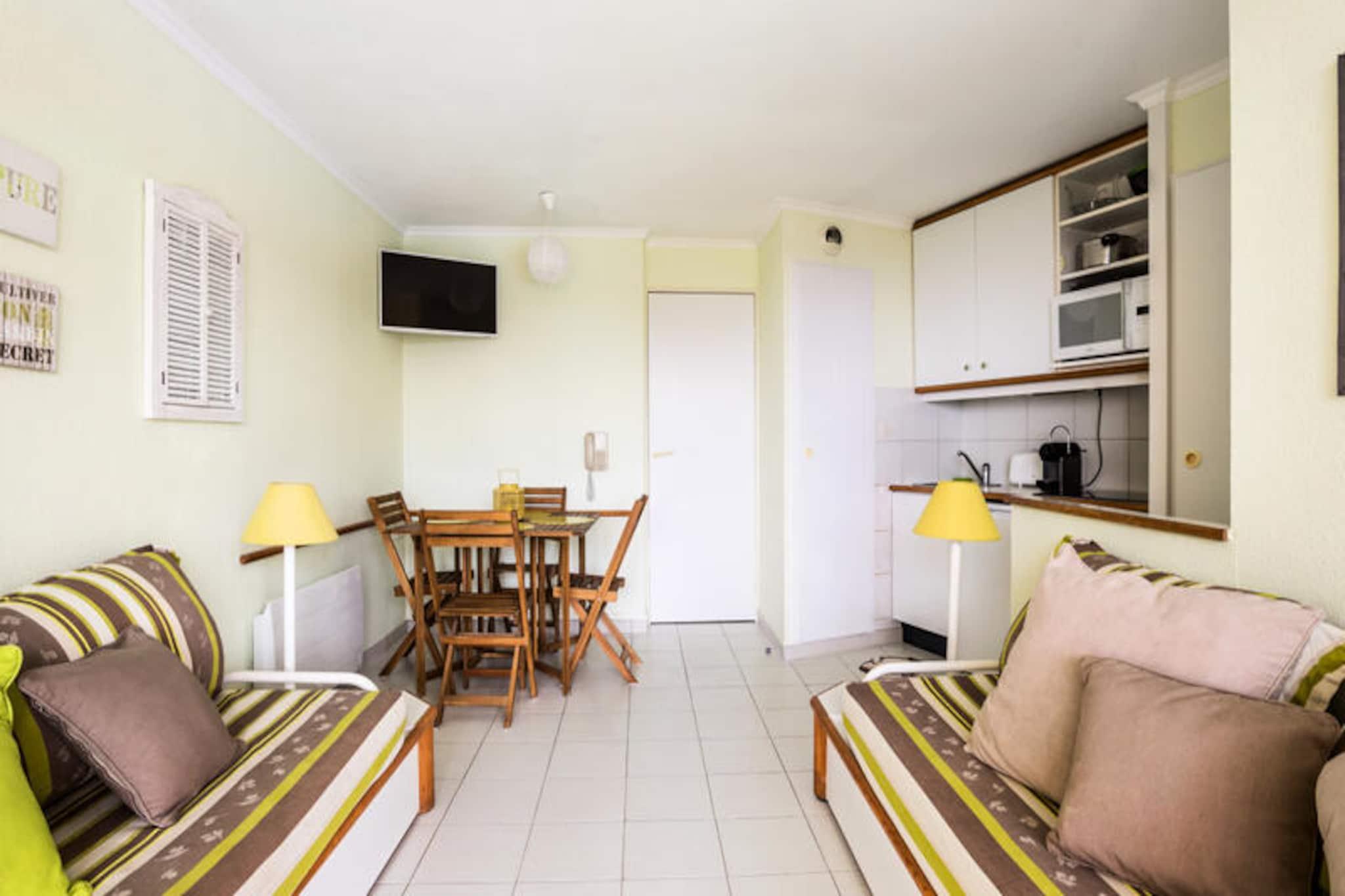 Denne hyggelige lejlighed på 30 m² i stueetagen tilbyder et komfortabelt ophold med en stue med tre sovesofaer og en spiseplads med et bord og fire stole. Soveværelset har en dobbeltseng, og der er et badeværelse med badekar samt et separat toilet. Kæledyr er velkomne mod et tillægsgebyr, og trådløs internetadgang er tilgængelig mod et tillæg. Gæsterne kan nyde den fælles swimmingpool og drage fordel af en parkeringsplads under deres ophold. Denne lejlighed ligger 1 km fra stranden og tilbyder nem adgang til Agay Bay og Dramont-stranden, der betjenes af det lille tog i højsæsonen. Det omkringliggende område er fyldt med barer, restauranter og butikker, perfekt til spisning eller shopping. Familier vil sætte pris på børneklubben med aktiviteter for de unge, samt det nærliggende Esterel Forme Center, der tilbyder spabade til afslapning. Lejligheden har et fuldt udstyret køkken, ideelt til at tilberede måltider. Ud over badeværelset med badekar har lejligheden et separat toilet for ekstra bekvemmelighed. Balkonen giver et fantastisk sted at slappe af og nyde udsigten over landsbyen, hvilket gør denne lejlighed til en god base for en fredelig ferie.