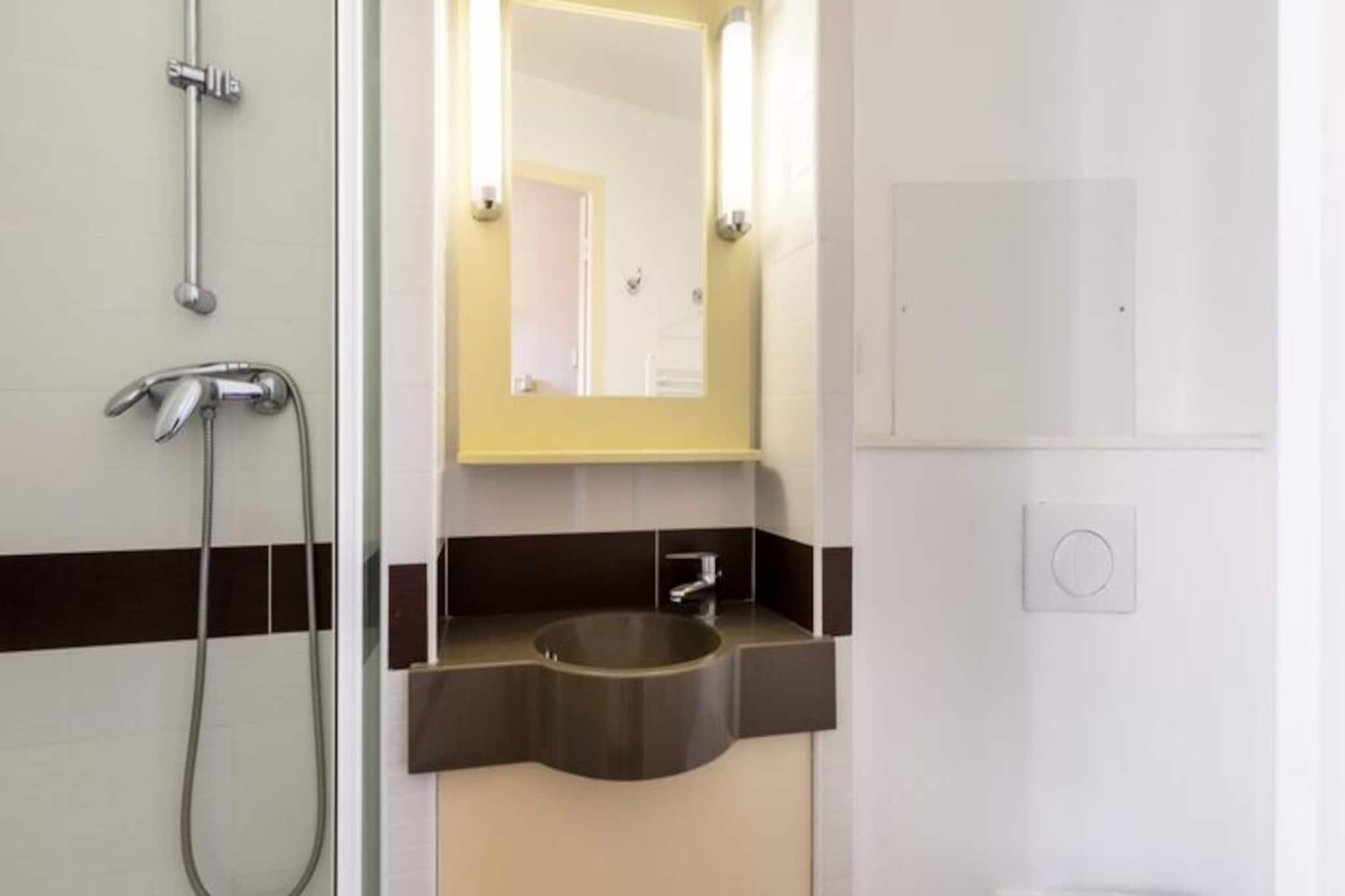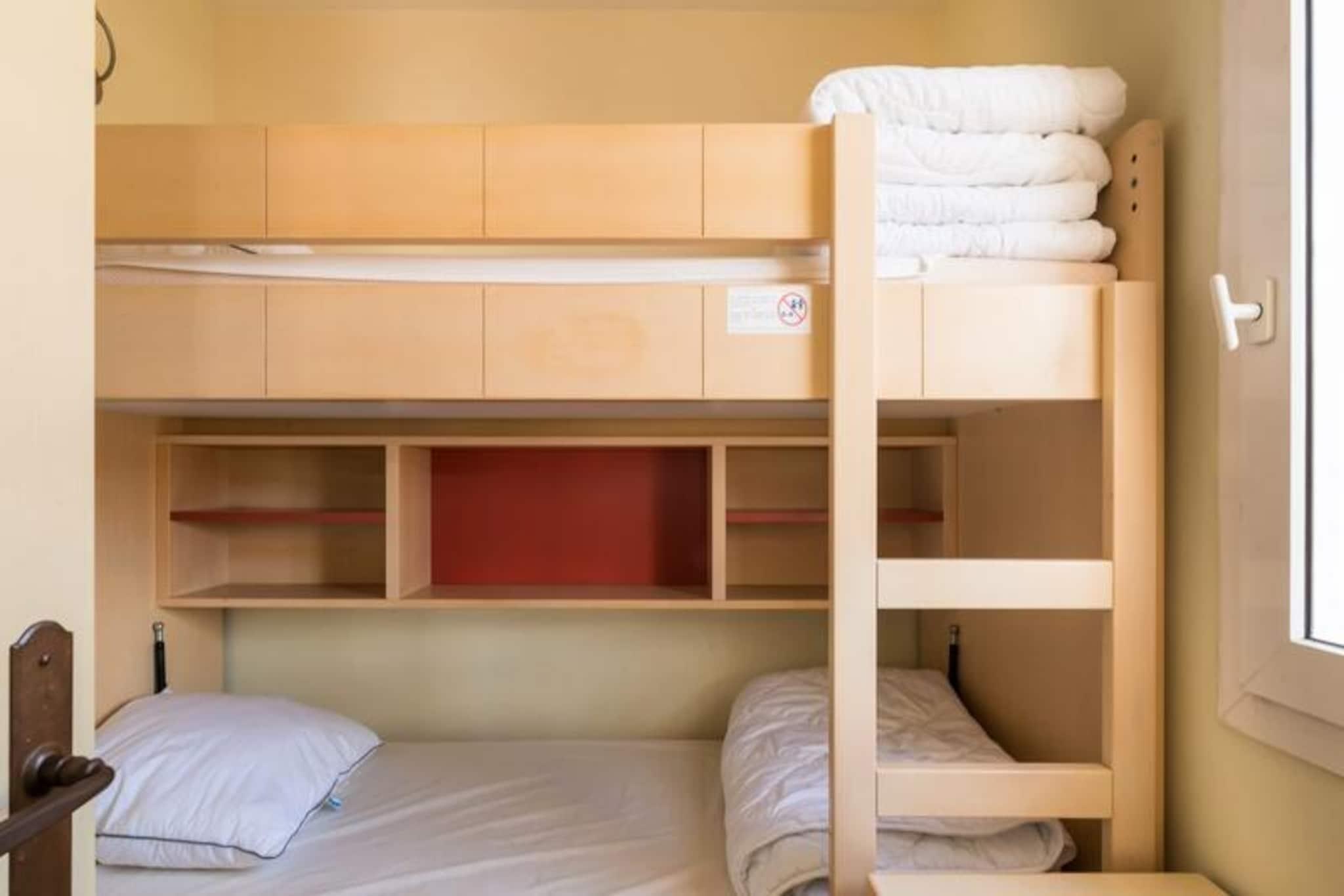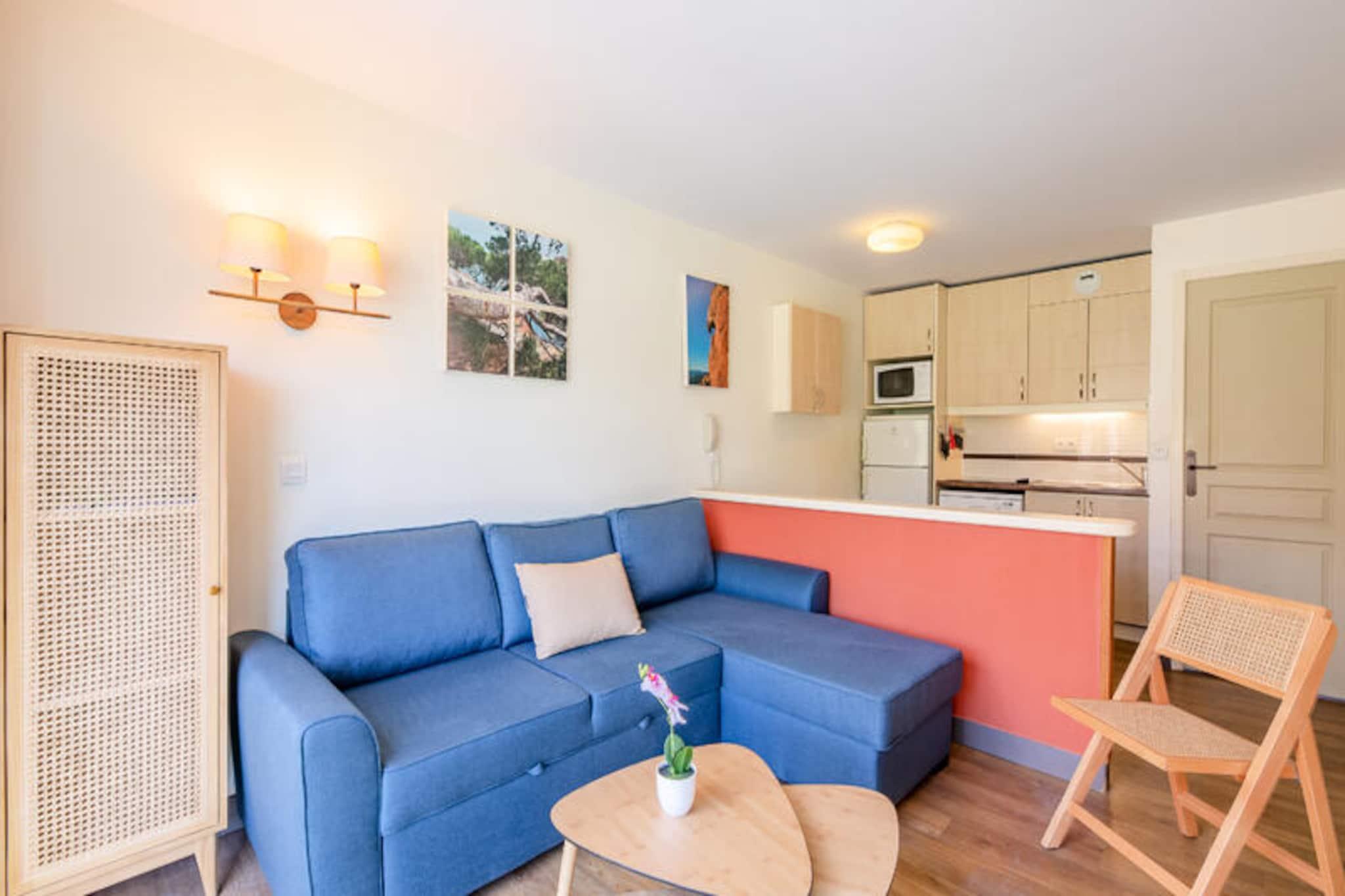 Dette feriehus på 36 m², beliggende på anden sal, giver et behageligt opholdsrum for familier eller små grupper. Lejligheden har en stue med en sovesofa til 2 personer, et soveværelse med en dobbeltseng og et kabineområde med en køjeseng. Ejendommen er kæledyrsvenlig, men det skal aftales på forhånd. Gæsterne har adgang til Wi-Fi mod et tillægsgebyr, og lejligheden har en overdækket parkeringsplads. For dem med elektriske køretøjer er ladestationer tilgængelige i landsbyen. Dette feriehus ligger kun 1 km fra Agay Bay og Dramont Beach og tilbyder nem adgang til Middelhavets smukke kystlinje. Ejendommen ligger i landsbylignende omgivelser og byder på en række barer, restauranter og butikker. Gæsterne kan også nyde landsbyens fritidsfaciliteter, såsom en børneklub, temakurser og en teenageklub. The Little Train transporterer bekvemt gæster til stranden, der kører fra april til september. Inde i lejligheden er det åbne køkken veludstyret til selvforplejning, med et spisebord til 5. De to badeværelser har bruser med toilet i det ene og badekar i det andet. Gæsterne kan nyde en privat balkonterrasse for at slappe af efter en dag med aktiviteter. Slutrengøring er obligatorisk, og der opkræves tillægsgebyrer for sengelinned og håndklæder.