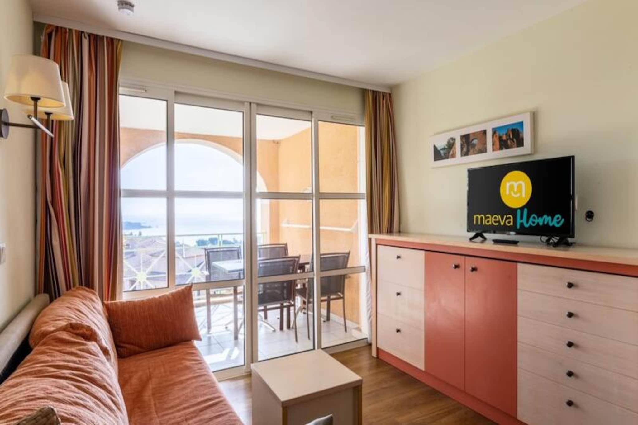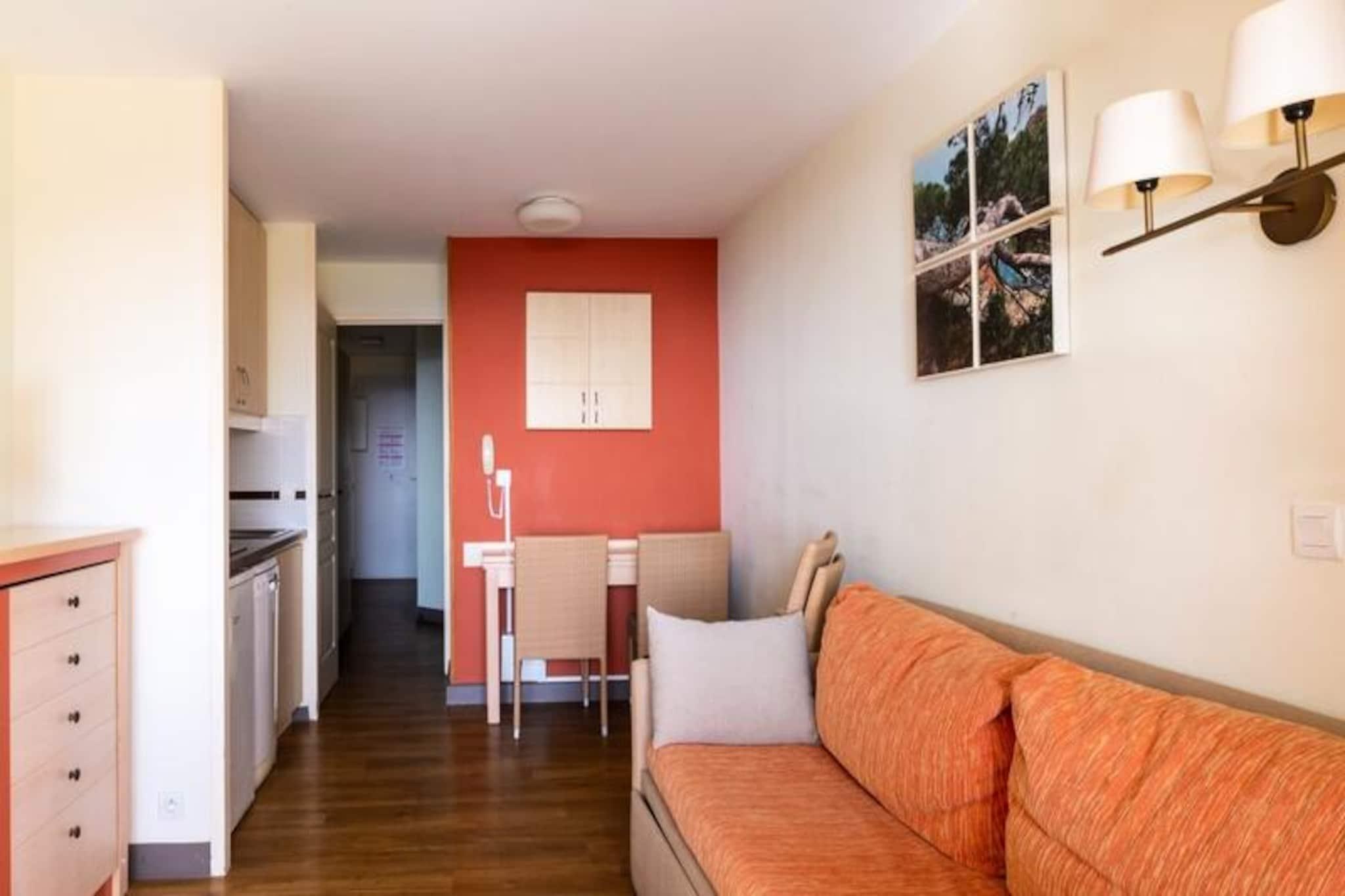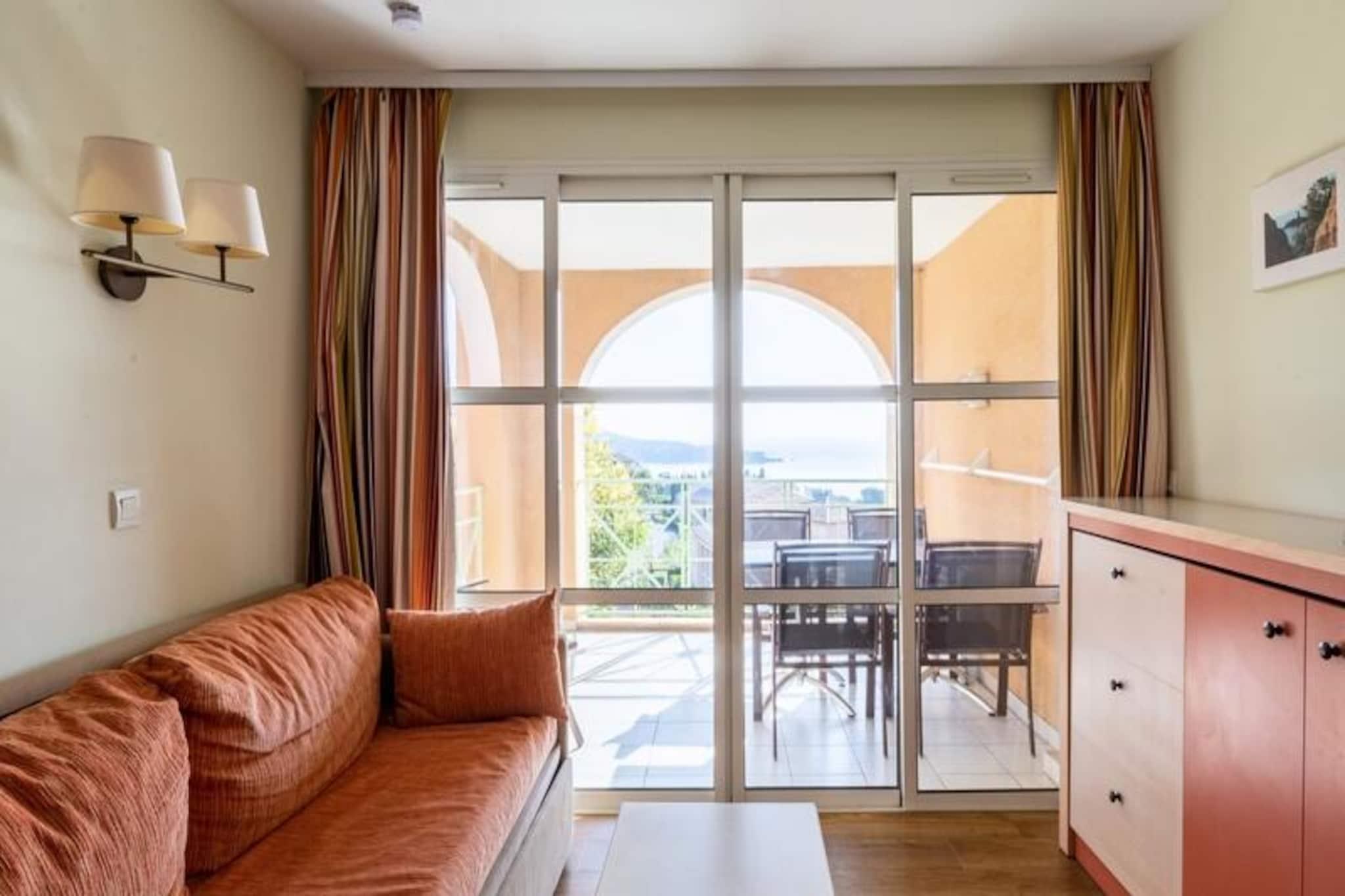 Denne 28 m² store ferielejlighed, beliggende på anden sal, byder på en rummelig stue med to enkeltsovesofaer, den ene med en udtræksseng, der kan rumme op til tre gæster. Soveværelset er indrettet med dobbeltseng, mens lejligheden også har separat toilet for nemheds skyld. Kæledyr er tilladt efter anmodning, og Wi-Fi er tilgængeligt mod et ekstra gebyr. Gæsterne kan også gøre brug af parkeringspladsen med ladestationer til elbiler placeret inden for ejendommen. Beliggende kun 1 km fra Agay Bay og Dramont Beach, er lejligheden ideelt placeret for strandelskere. Gæsterne kan udforske en livlig landsbyatmosfære med nærliggende barer, restauranter og butikker. Ejendommen har også en børneklub med temakurser såsom hemmelig agent, DJ og cirkus, hvilket gør den perfekt for familier. Et lille tog giver nem adgang til strandene, der kører fra april til september. Lejligheden indeholder et åbent køkken med spiseplads, komplet med et bord til fire og en skammel. Badeværelset har en kombination af badekar og bruser, og lejligheden har egen balkon. Yderligere tjenester, såsom sengelinned, håndklæder og slutrengøring, er tilgængelige mod et ekstra gebyr.